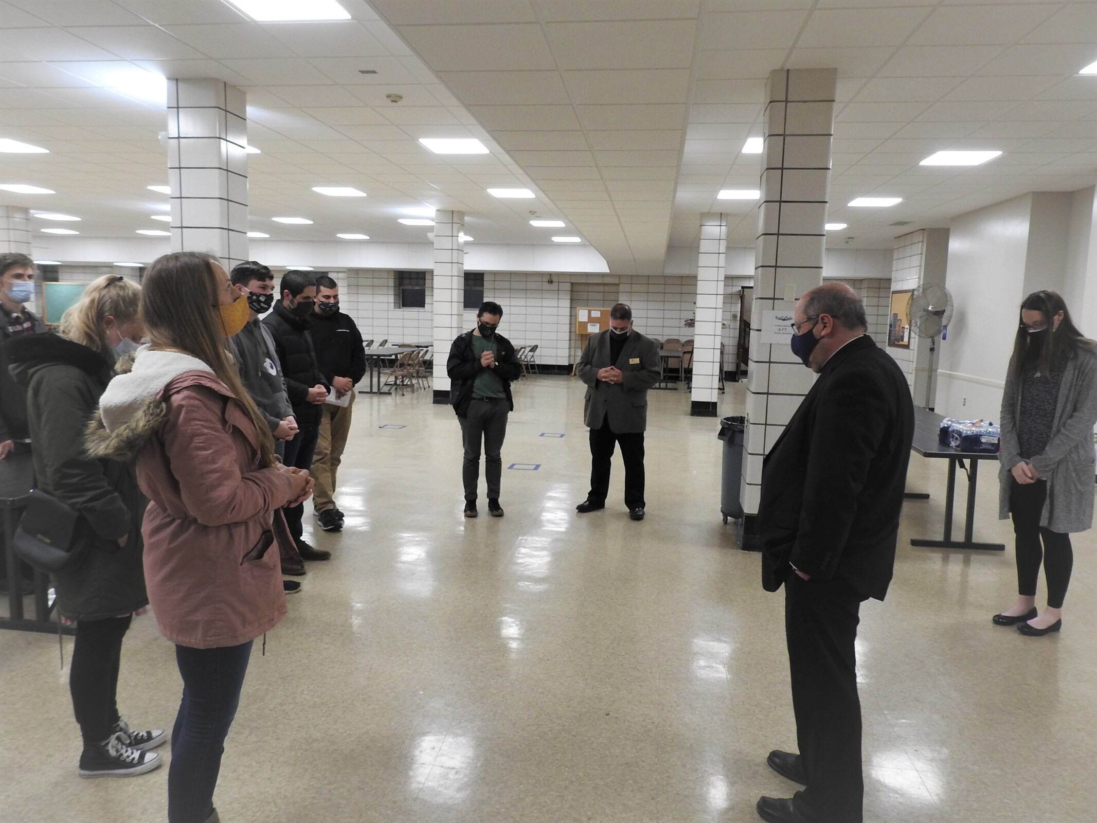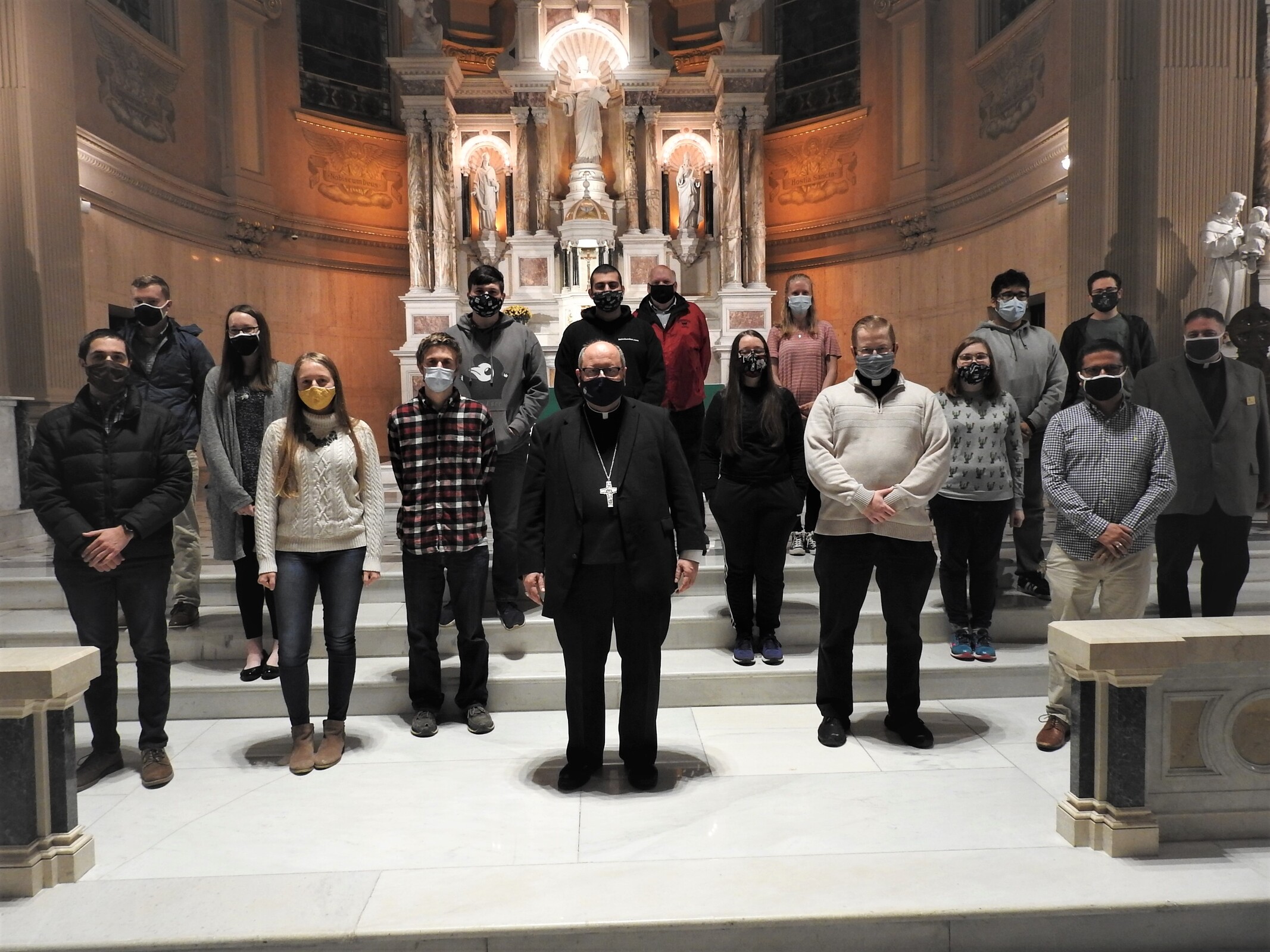 Early in his priestly ministry, Bishop Edward Malesic spent several years as a campus minister at three colleges in Pennsylvania, a time he recalls fondly. He was able to briefly revisit the experience during a visit on Oct. 28 with the RooCatholic Newman Campus Ministry group at the University of Akron.