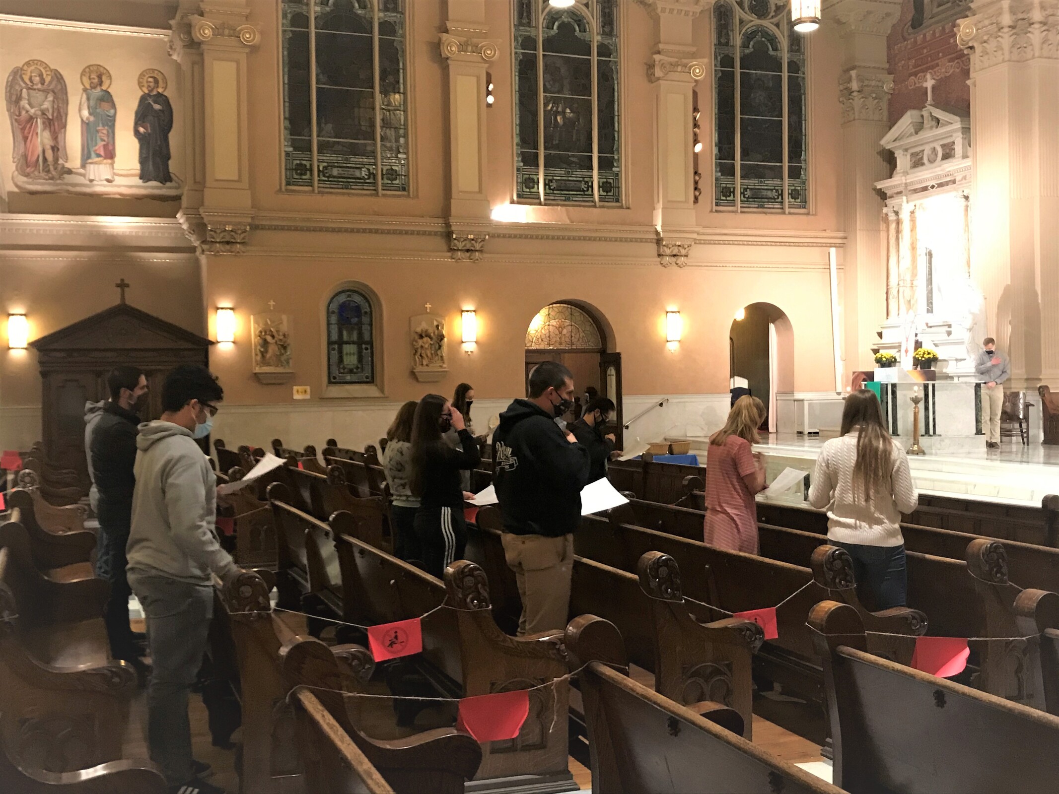 Afterward, they headed upstairs to the church for evening prayer, led by Bishop Malesic, and conversation. The session was livestreamed for those unable to attend in person.