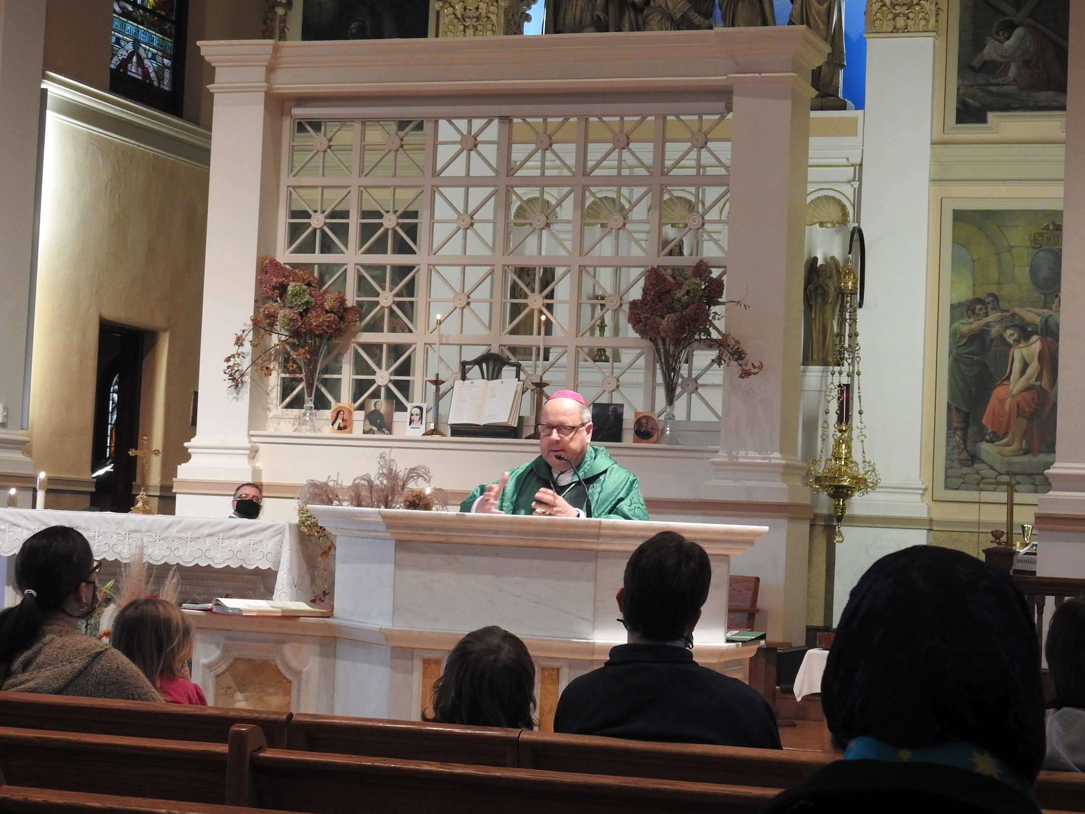 “I’m so happy to be here, visiting the outer areas of the diocese,” the bishop said. He told those gathered for Mass both in the church and on the livestream that the Wooster area reminds him of Lancaster County in Pennsylvania. Both are rural and similar in population.