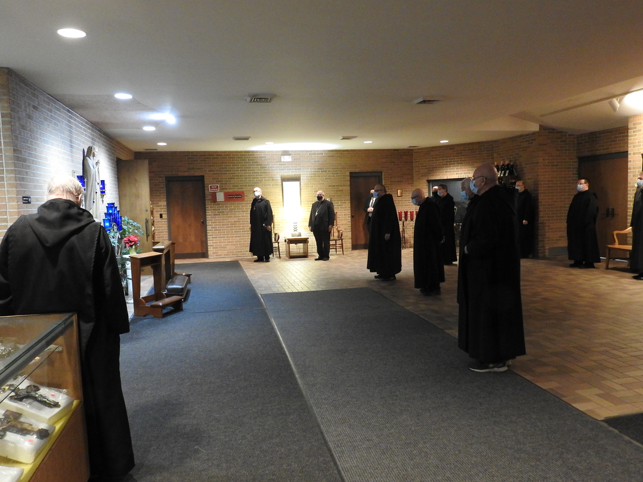 Led by Abbot Gary Hoover, OSB the monks welcomed Bishop Edward Malesic on Nov. 30 for evening prayer, an ethnic dinner that included stuffed cabbage, sausage and strudel, and conversation.