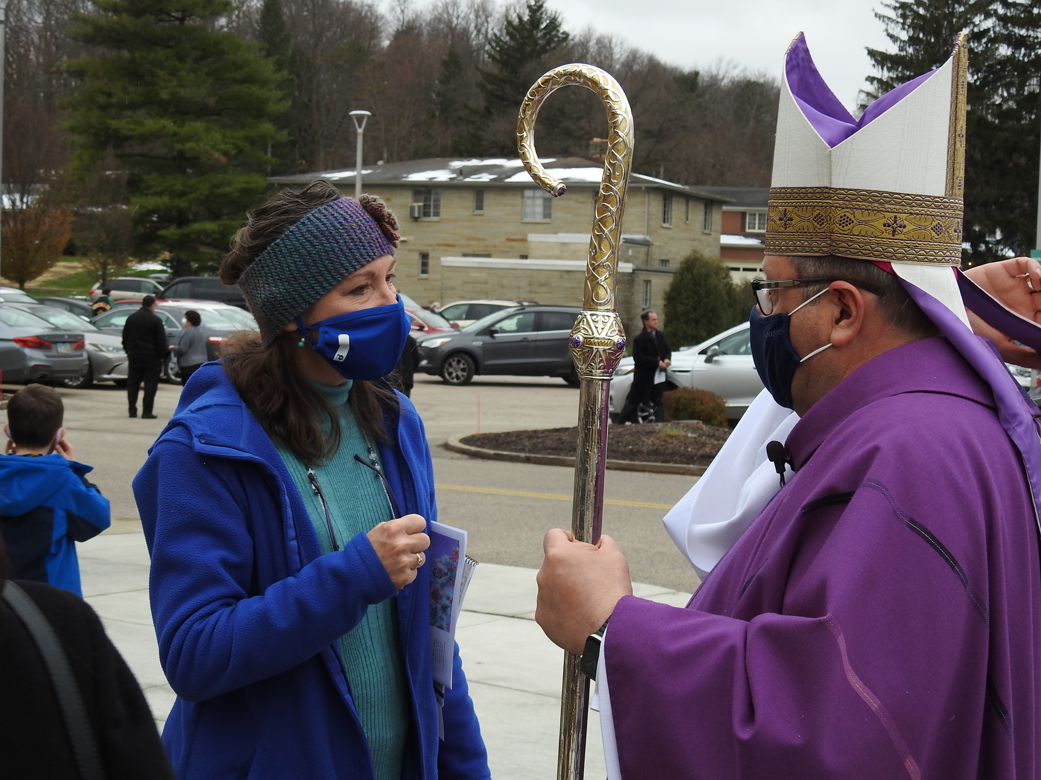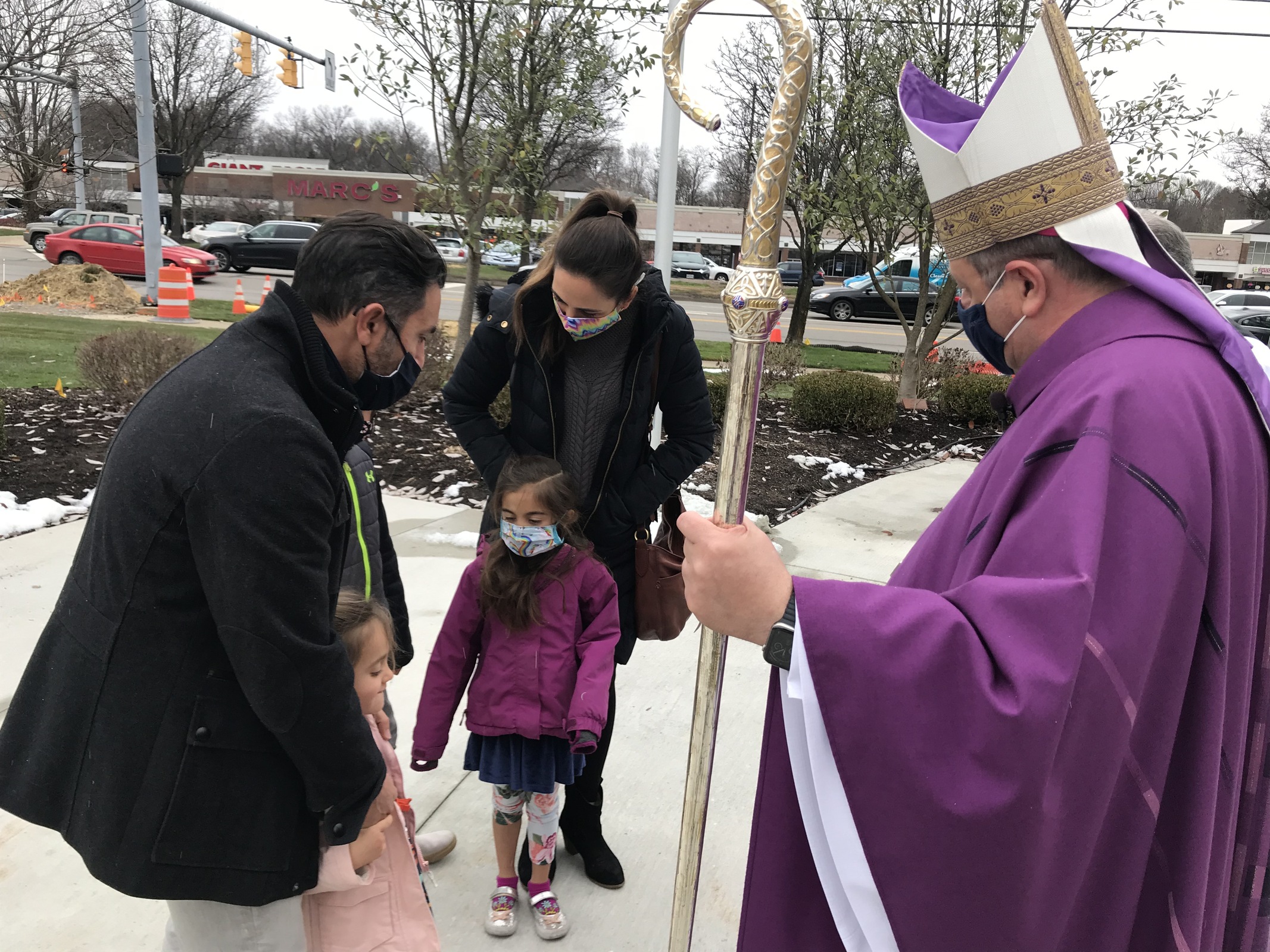After Mass, Bishop Malesic spent some time greeting the faithful – wearing face masks and socially distanced – outside the church.