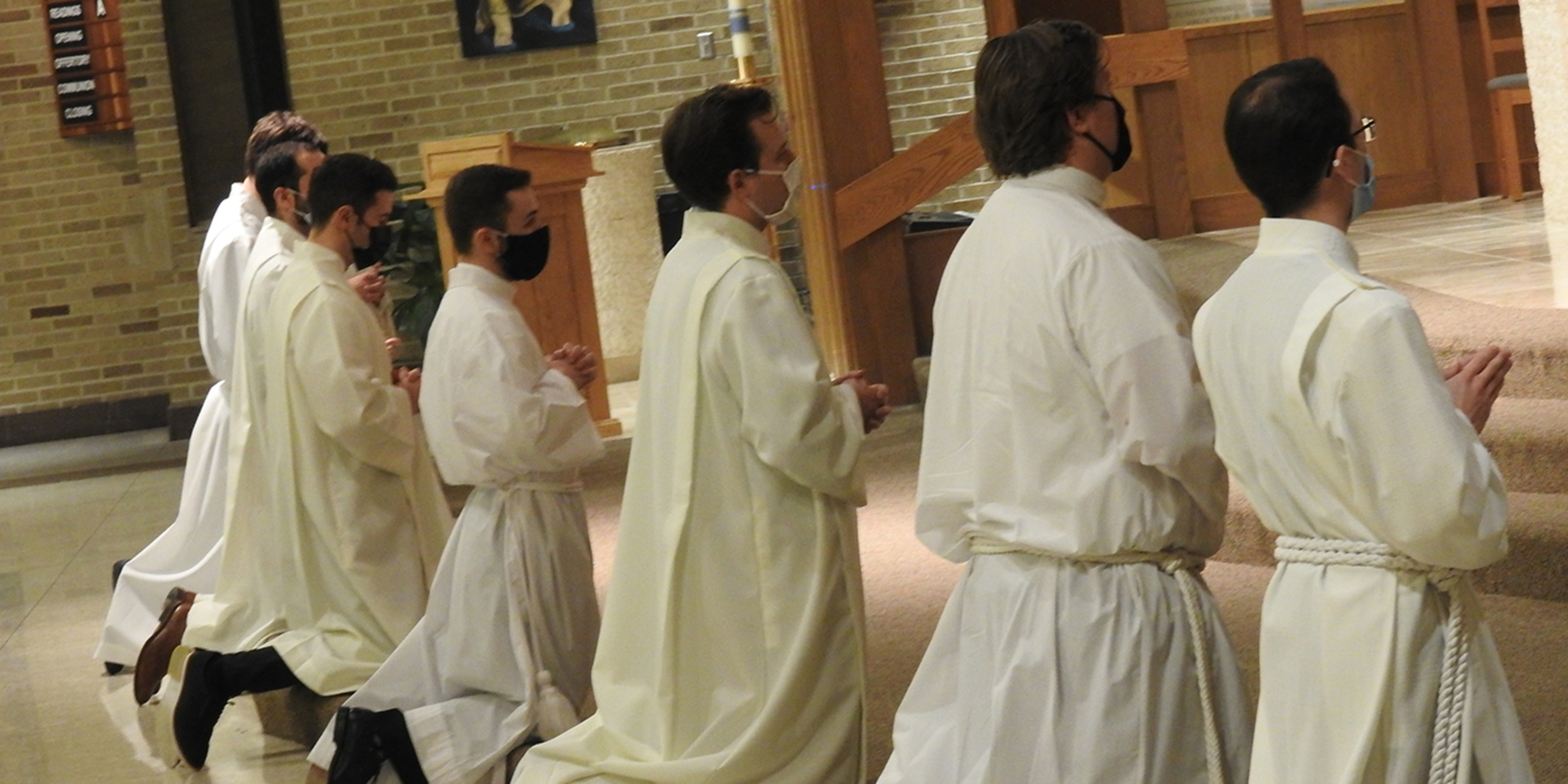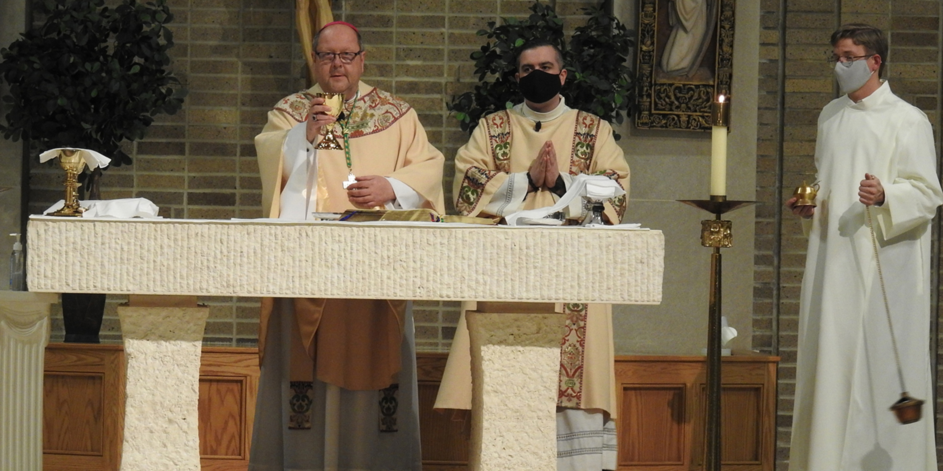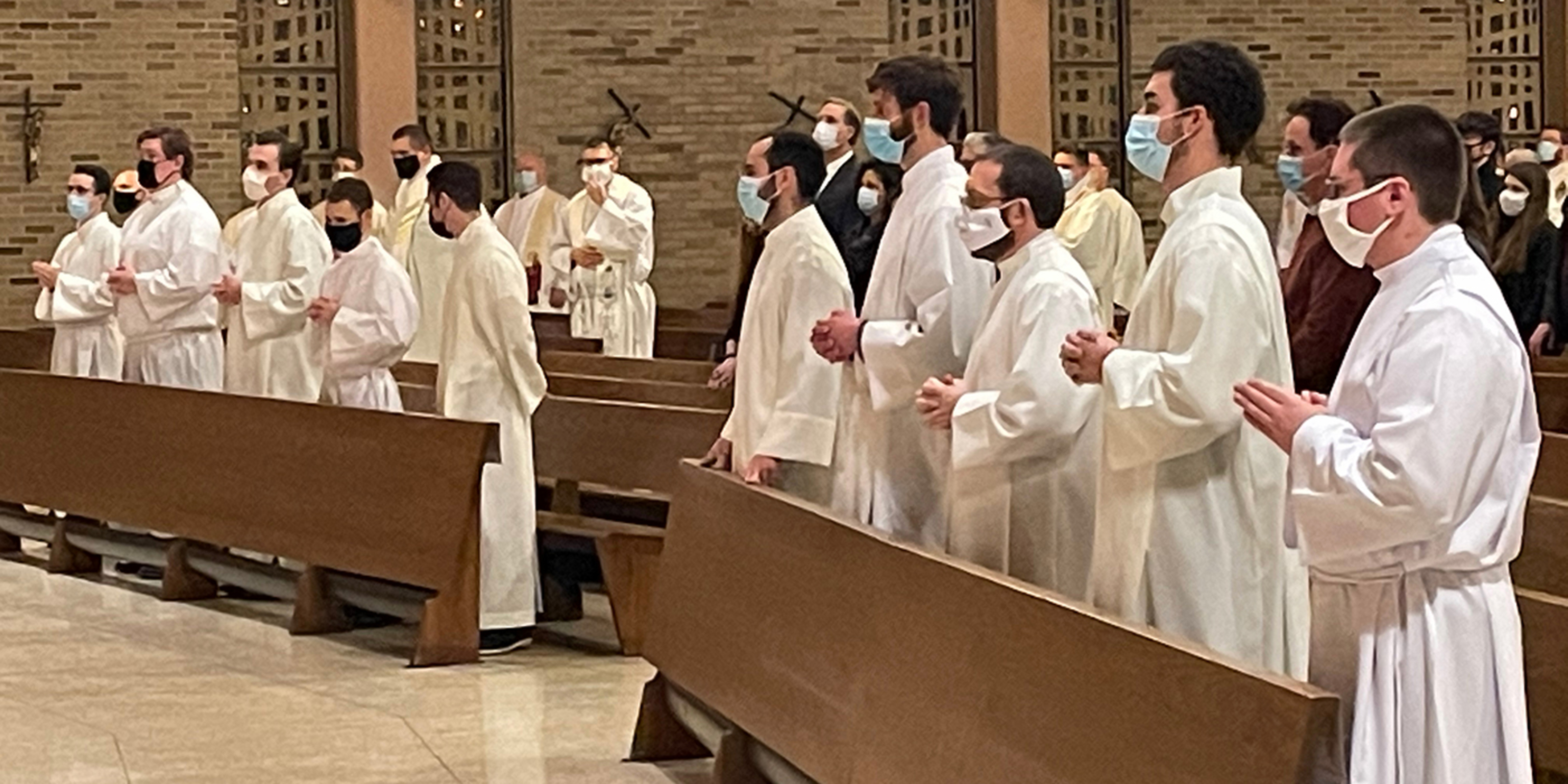 Bishop Edward Malesic instituted 10 men from Saint Mary Seminary who are in their first year of study and discernment for the priesthood into the ministry of acolyte during a Mass on Feb. 5 at SS. Robert and William Church in Euclid. Attendance at the liturgy was limited because of pandemic guidelines, but it was livestreamed on the diocesan website.