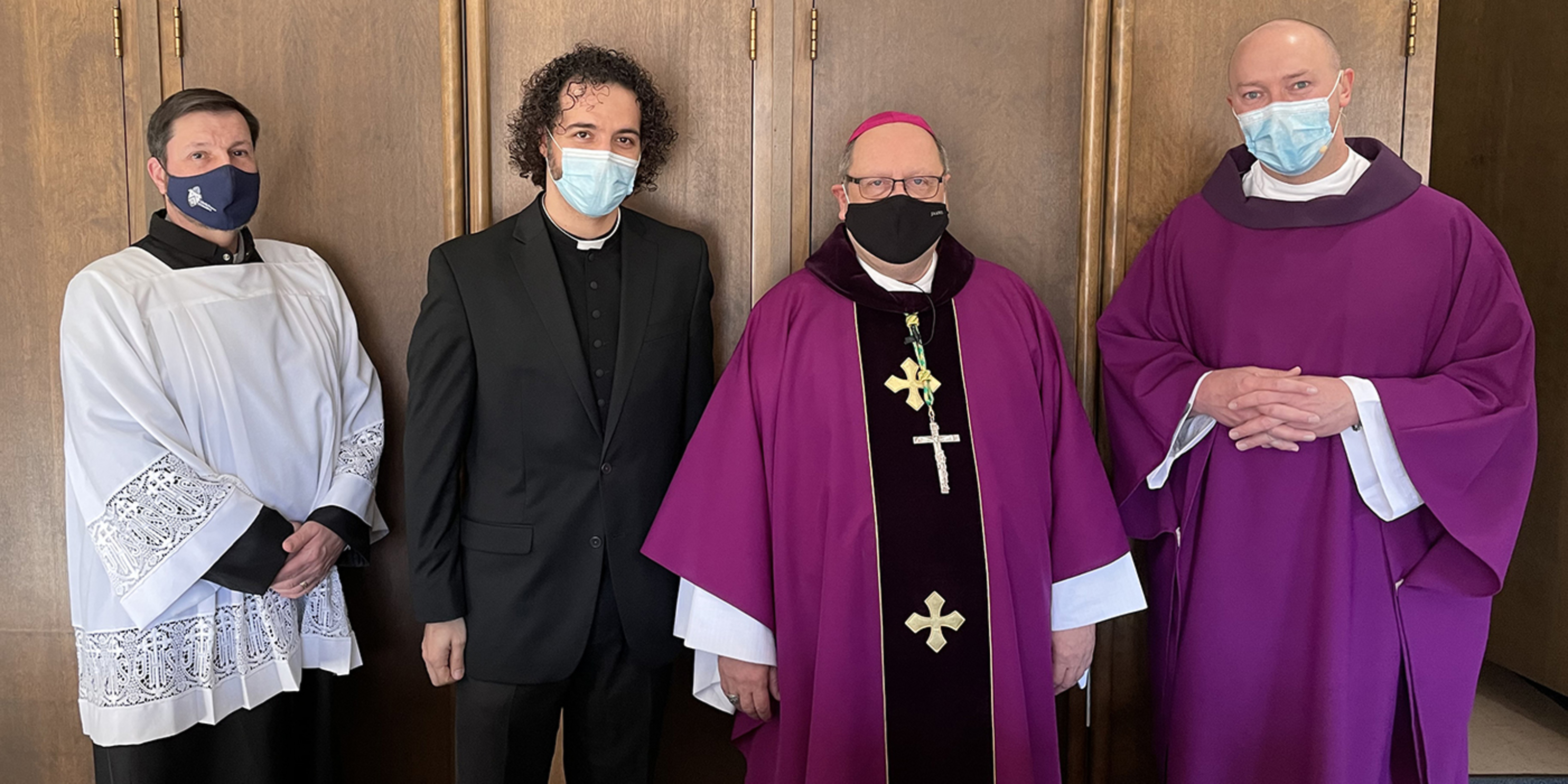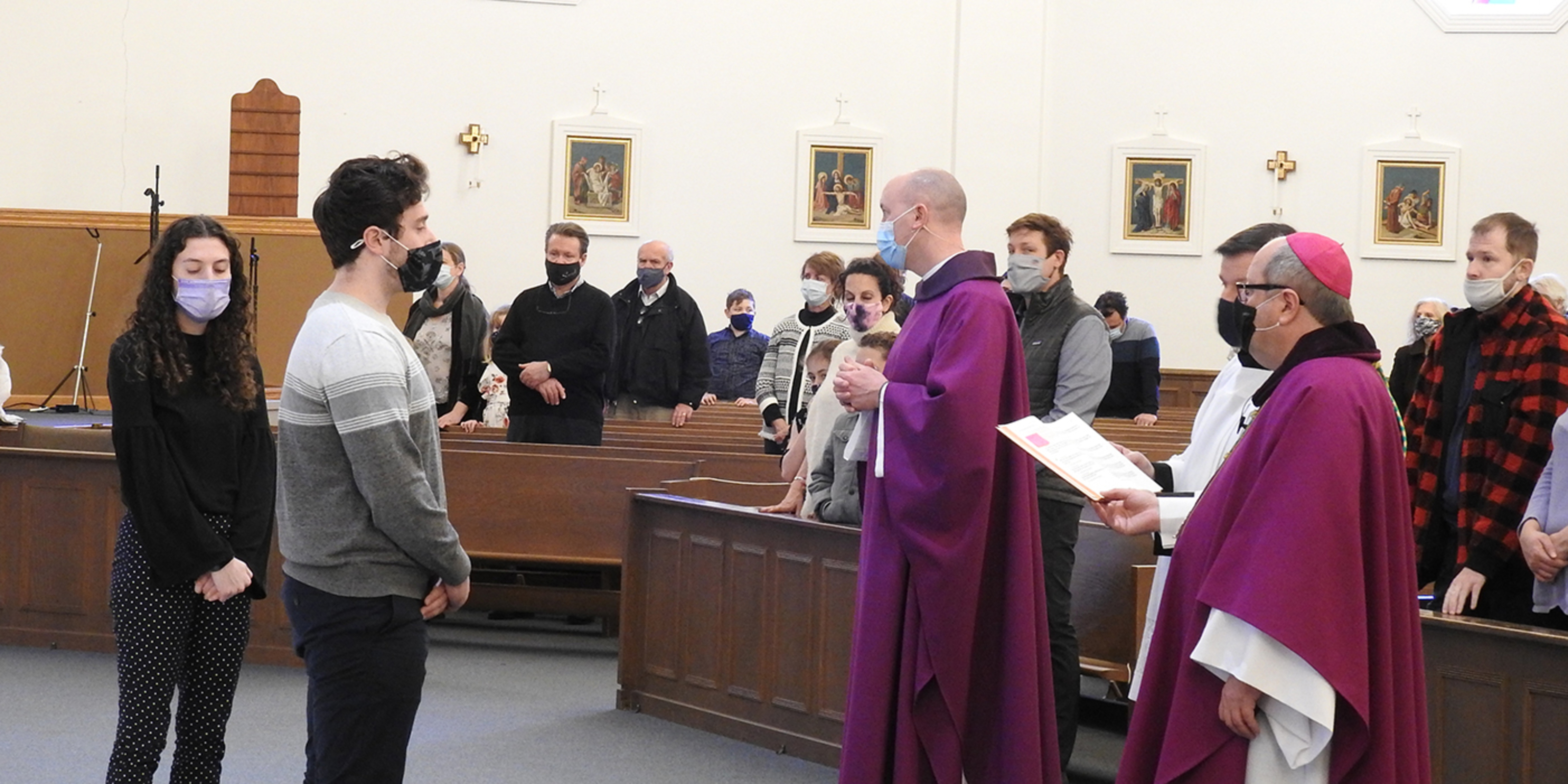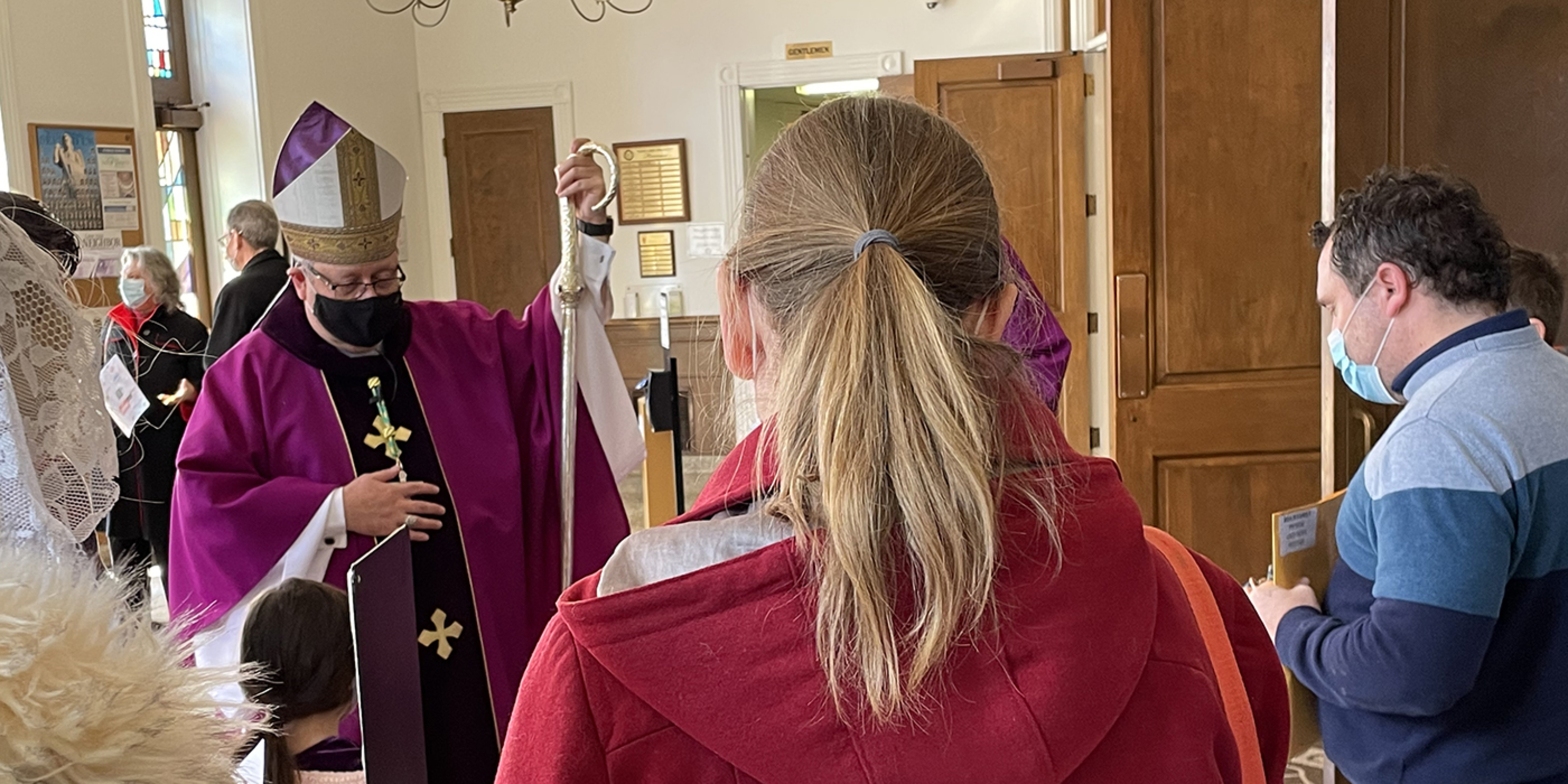 But instead of the pastor, Father Steve Flynn, or Father Peter Kovacina, the parochial vicar, processing in, they were surprised to see Bishop Edward Malesic joining Father Flynn to celebrate Mass for the Third Sunday of Lent.