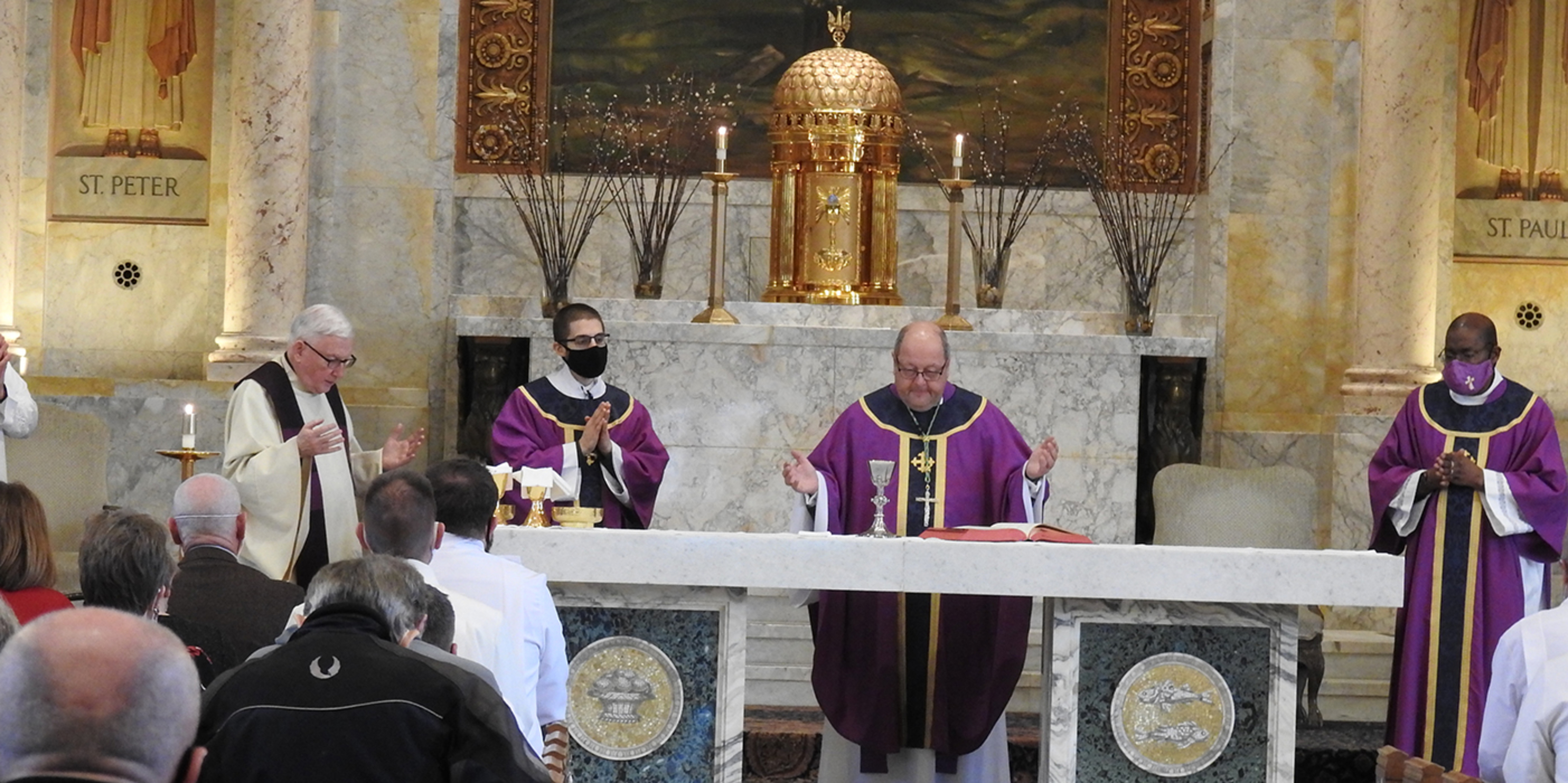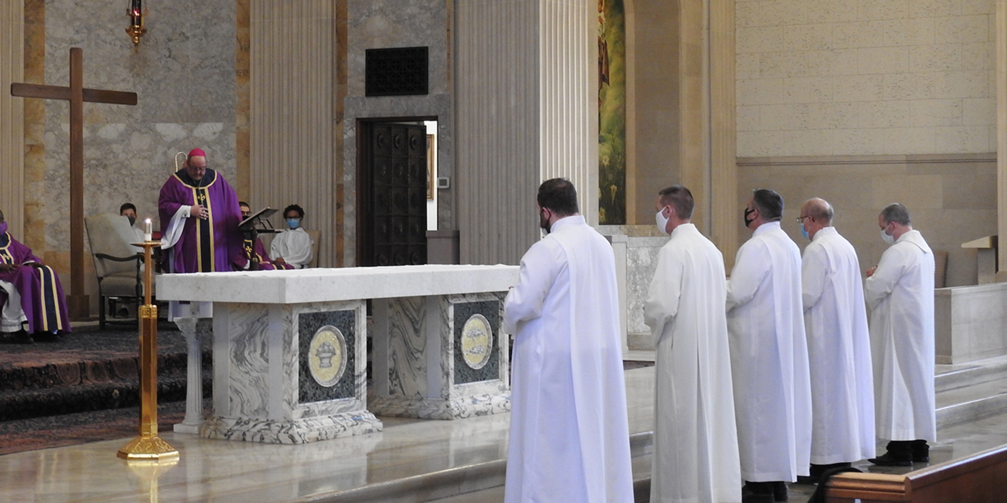 The bishop addressed the congregation gathered for Mass on March 6 at Communion of Saints Church in Cleveland Heights. During the liturgy, he instituted five men into the ministry of lector, another step in their formation for the permanent diaconate.