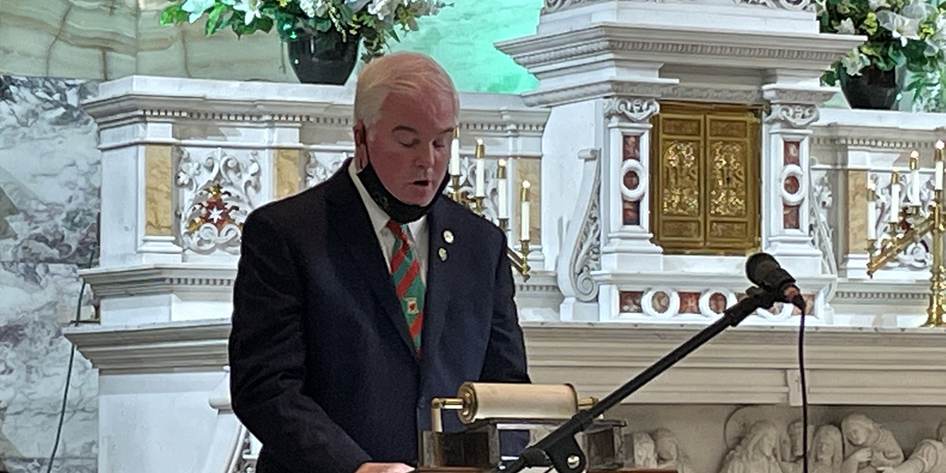 Attendance at the livestreamed Mass – which was by ticket only – was restricted to 140 people, including some of the club’s honorees and Edward Crawford, Irish ambassador to the United States. Many others watched the liturgy on St. Colman’s Facebook page and the diocesan website.