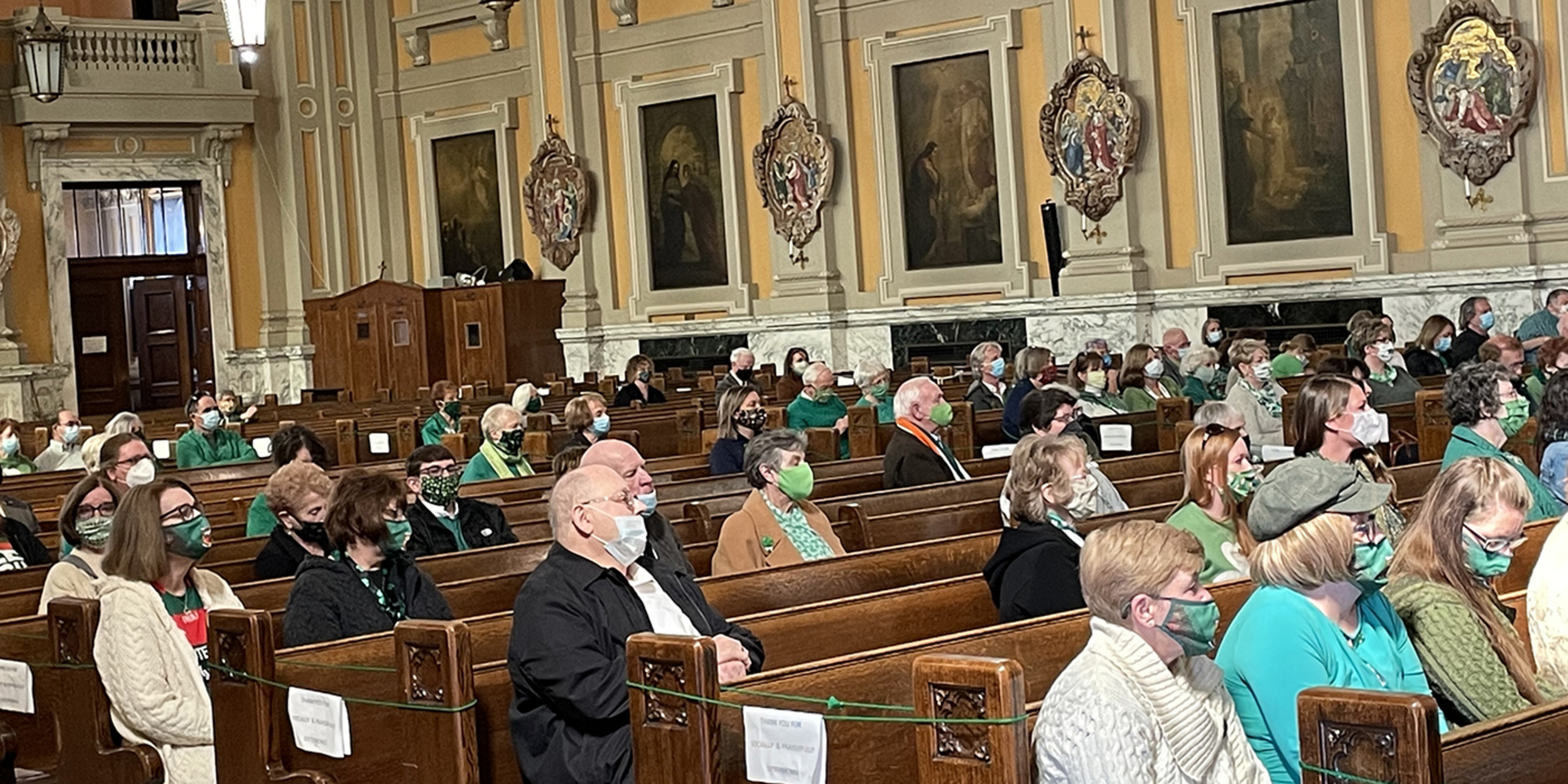 In previous years, the church was a sea of green and packed with people. Bagpipes, drums, fifes and other uniformed WSIA marching units traditionally process into and out of the church before heading downtown for the parade. This is the second year the parade was canceled because of the pandemic.