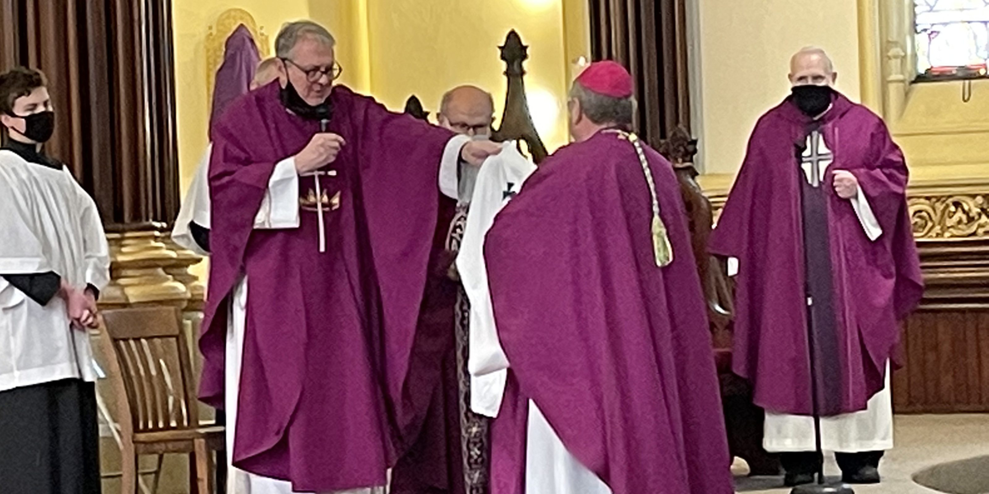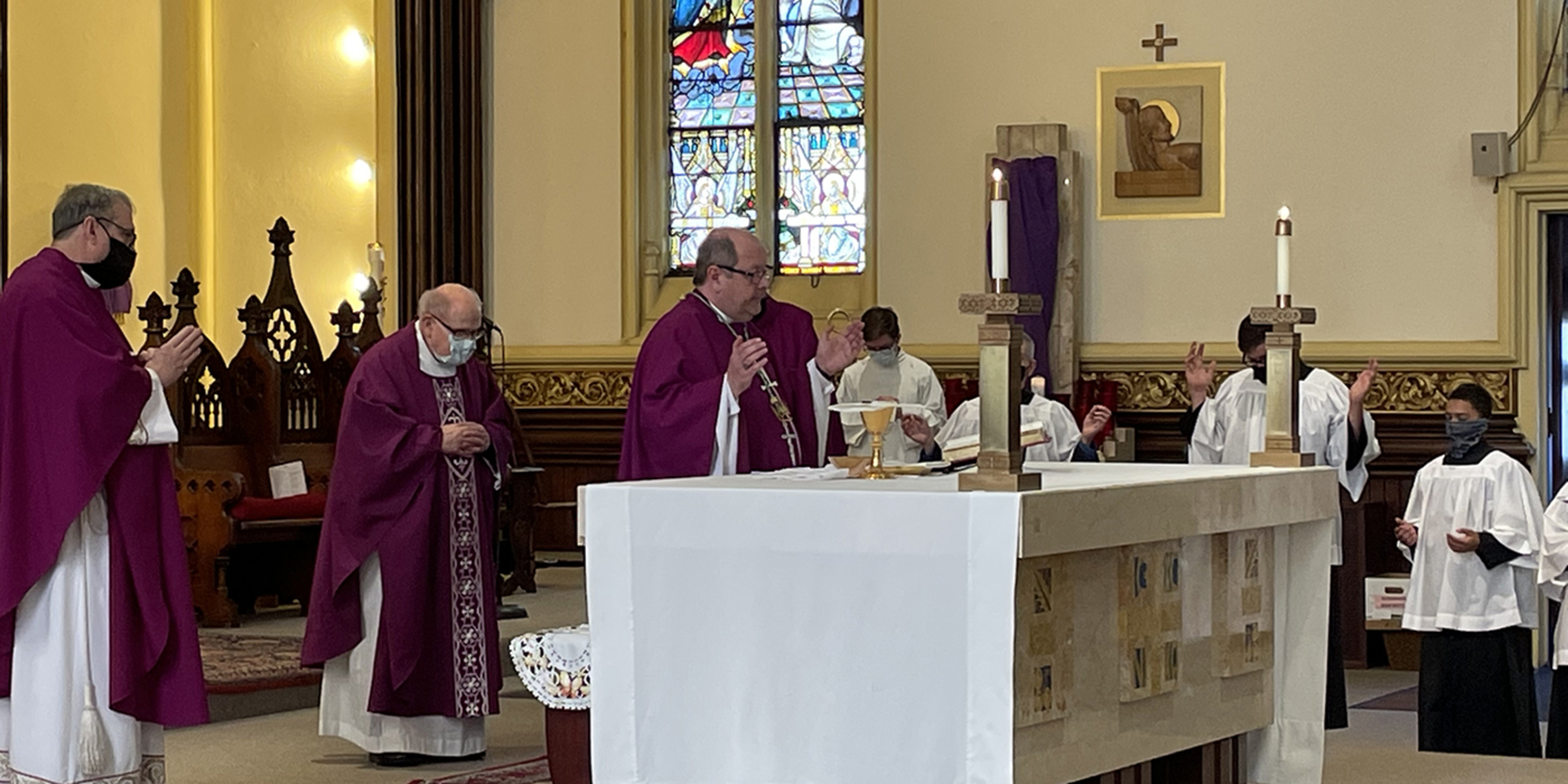 Msgr. Richard Antall, Holy Name pastor, Father Tom O’Donnell, pastor emeritus, and Father Jim McCafferty, a son of the parish, concelebrated Mass with the bishop.