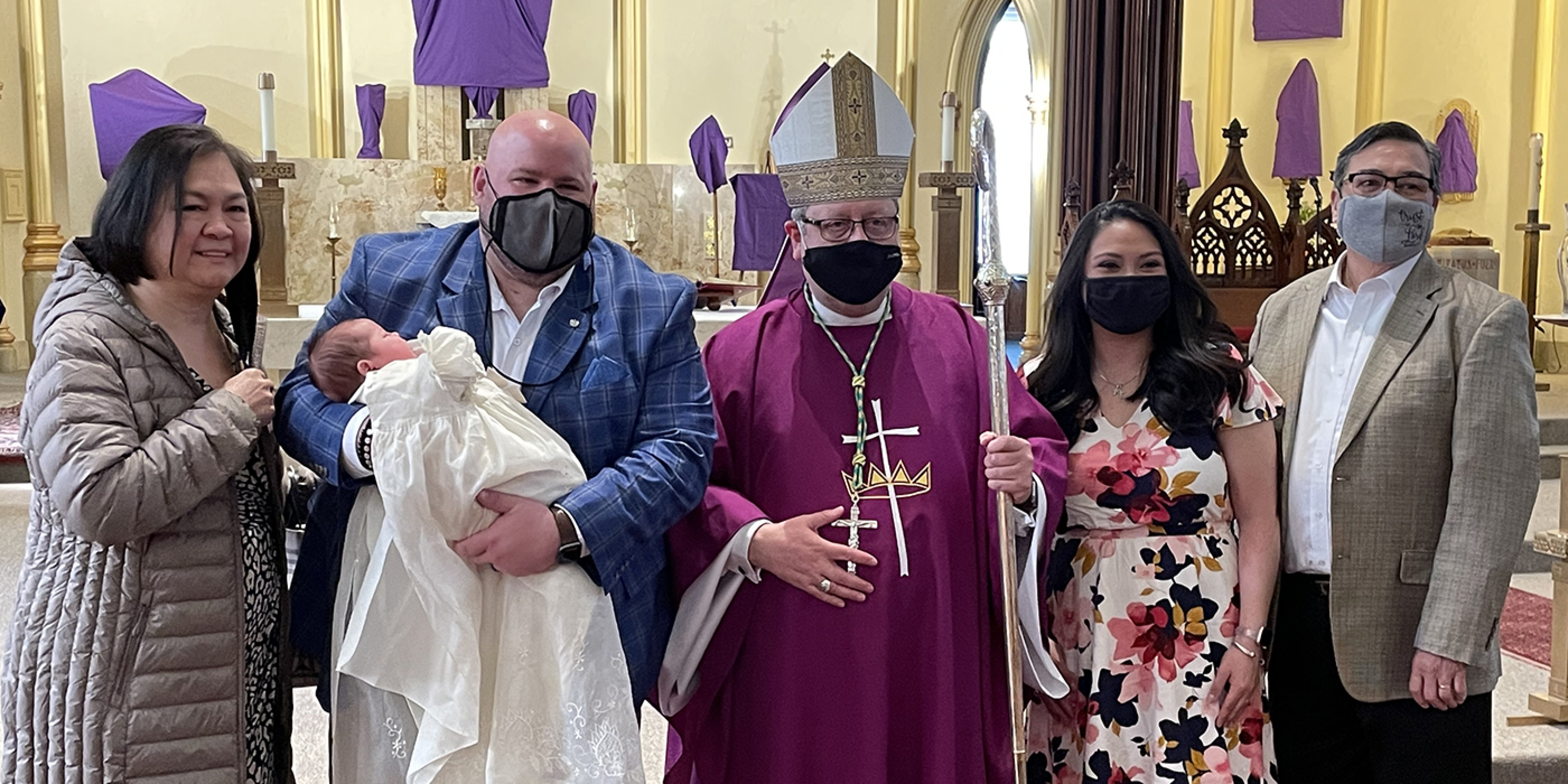 A baby who was baptized earlier that day was in the front pew with her family. Bishop Malesic promised to keep her and her family in his prayers. He also took photos with the family after Mass.