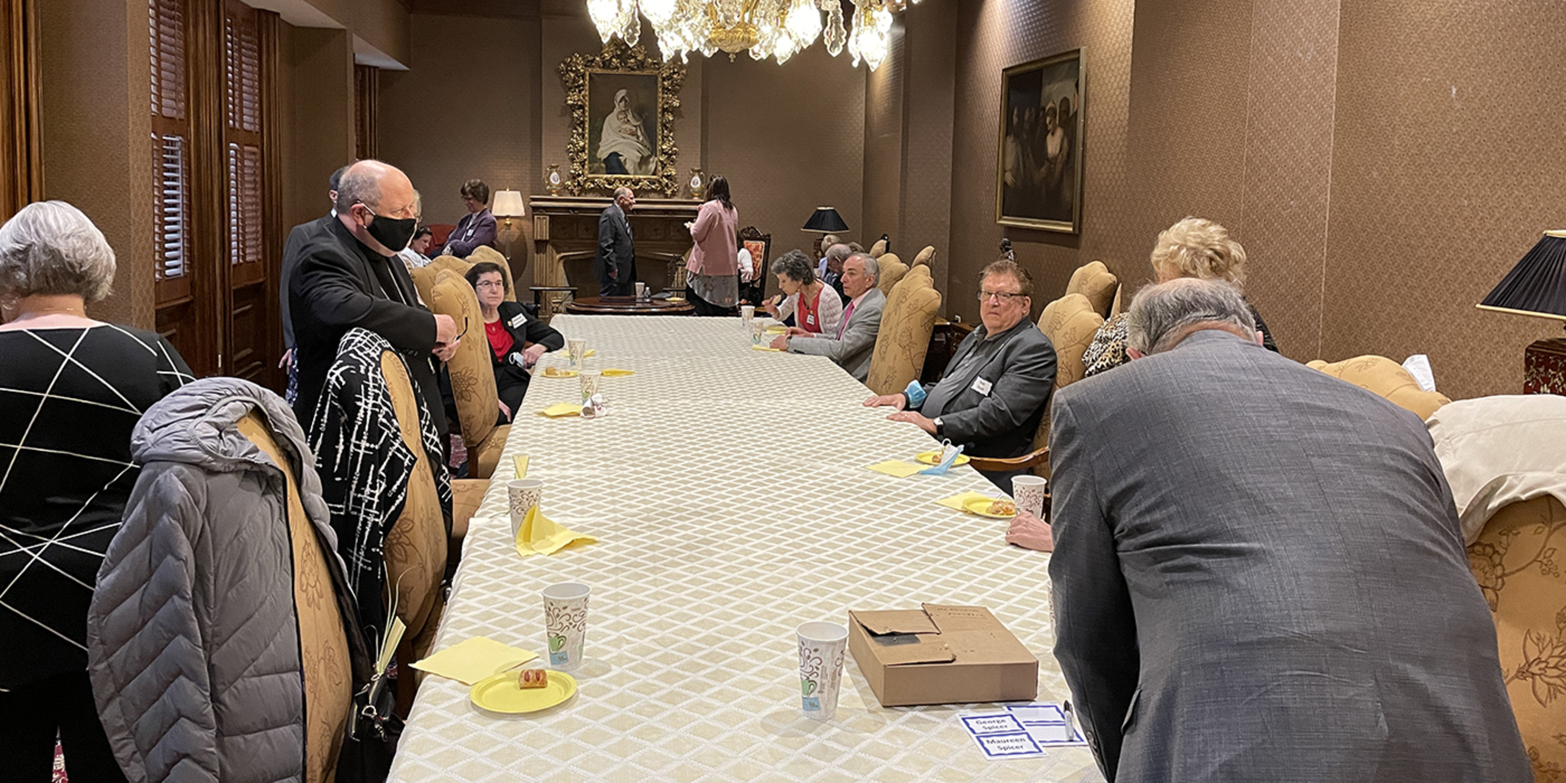 After canceling the event in 2020 because of the COVID-19 pandemic, the Parents of Priests organization in the Catholic Diocese of Cleveland resumed its Palm Sunday tradition of attending Mass at the Cathedral of St John the Evangelist and gathering afterward for a coffee and conversation with the bishop. This year’ event took place on March 28.