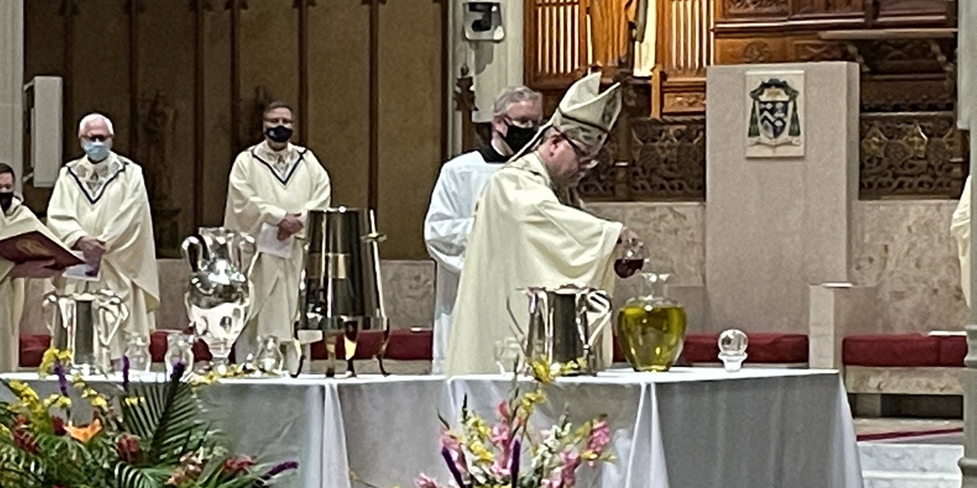 During the Mass, the oils used for sacraments are blessed and members of the presbyterate renew their priestly promises. In non-pandemic times, it also was a day of sanctification for priests when they would gather in fellowship and prayer.