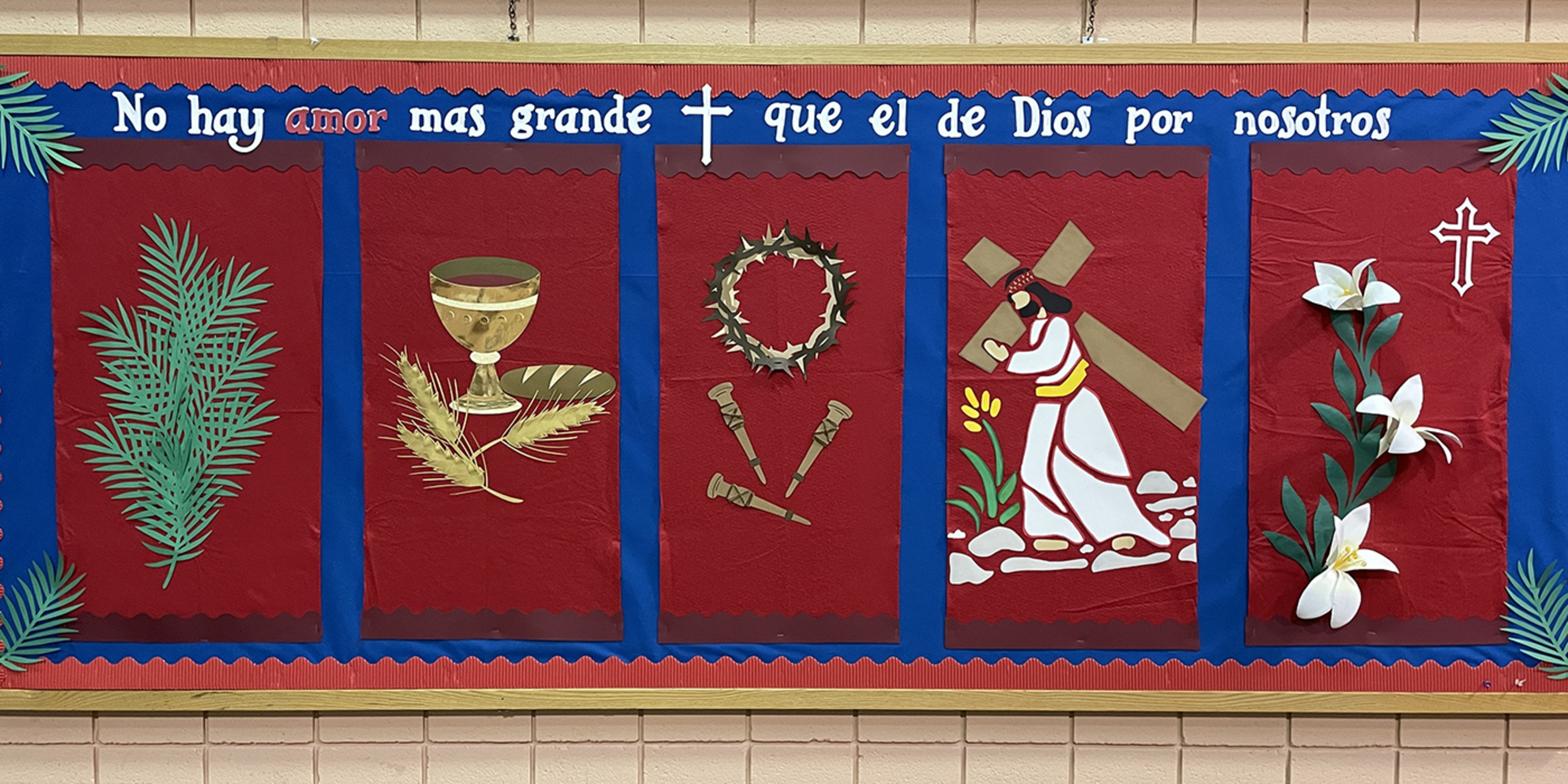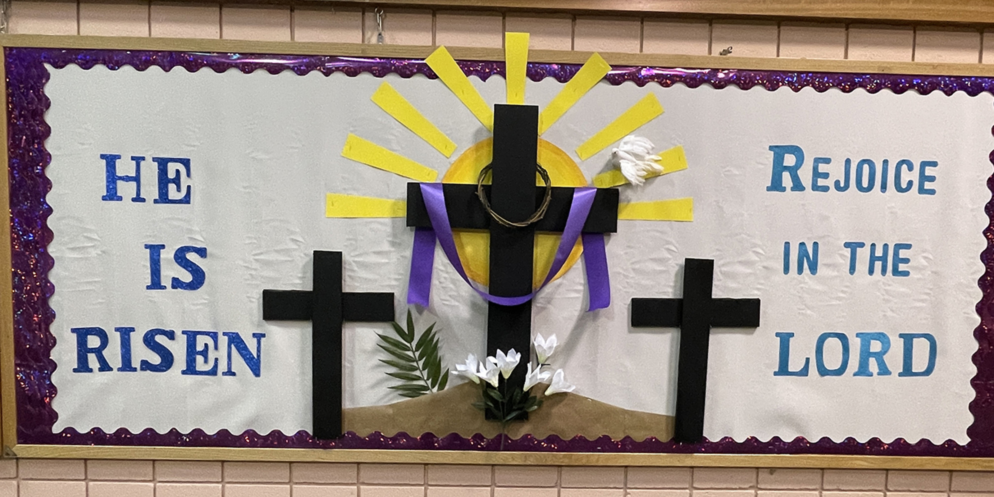 Since only one panel was created this year, other volunteers designed two special bulletin boards with Holy Week/resurrection themes.