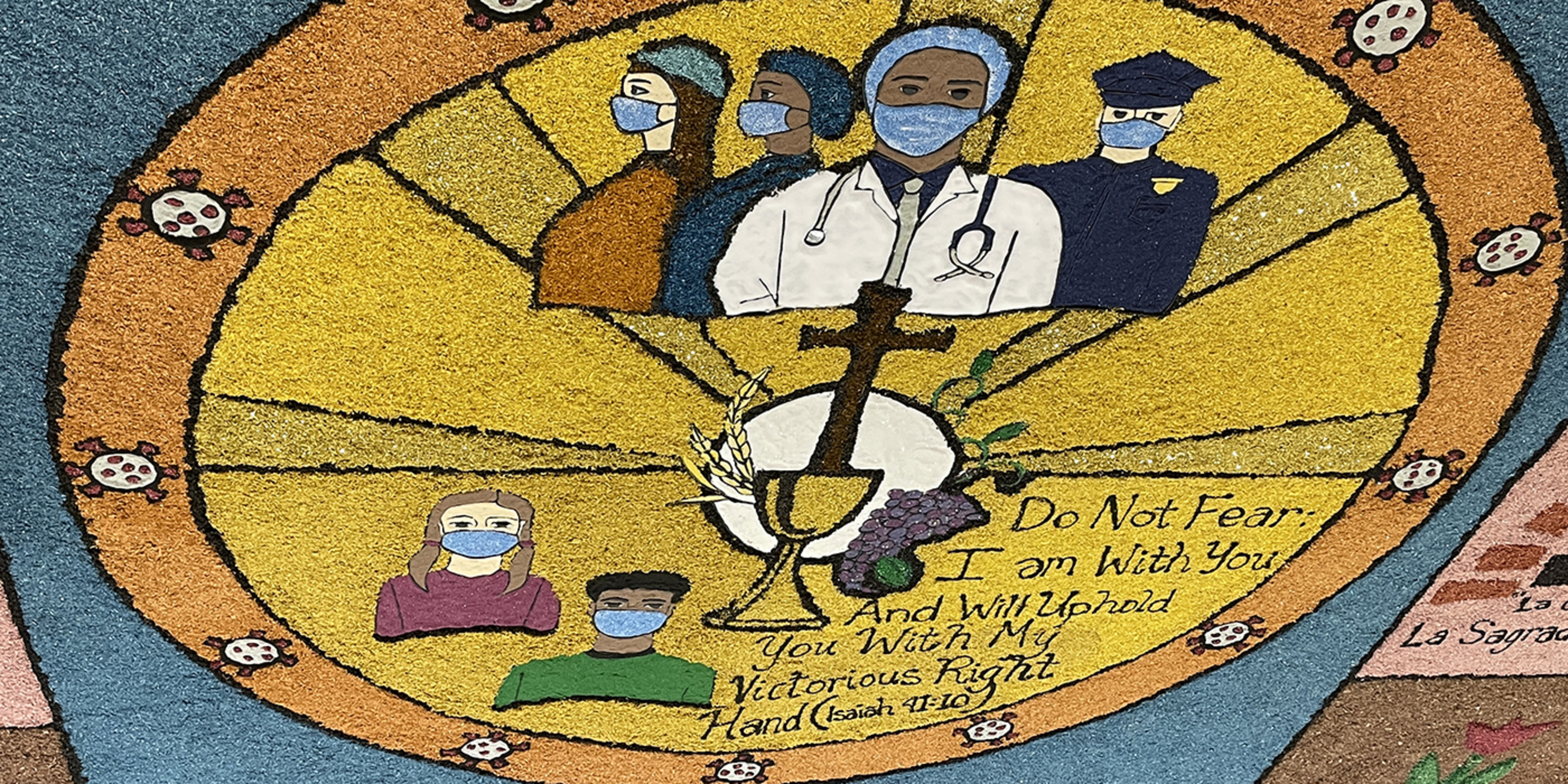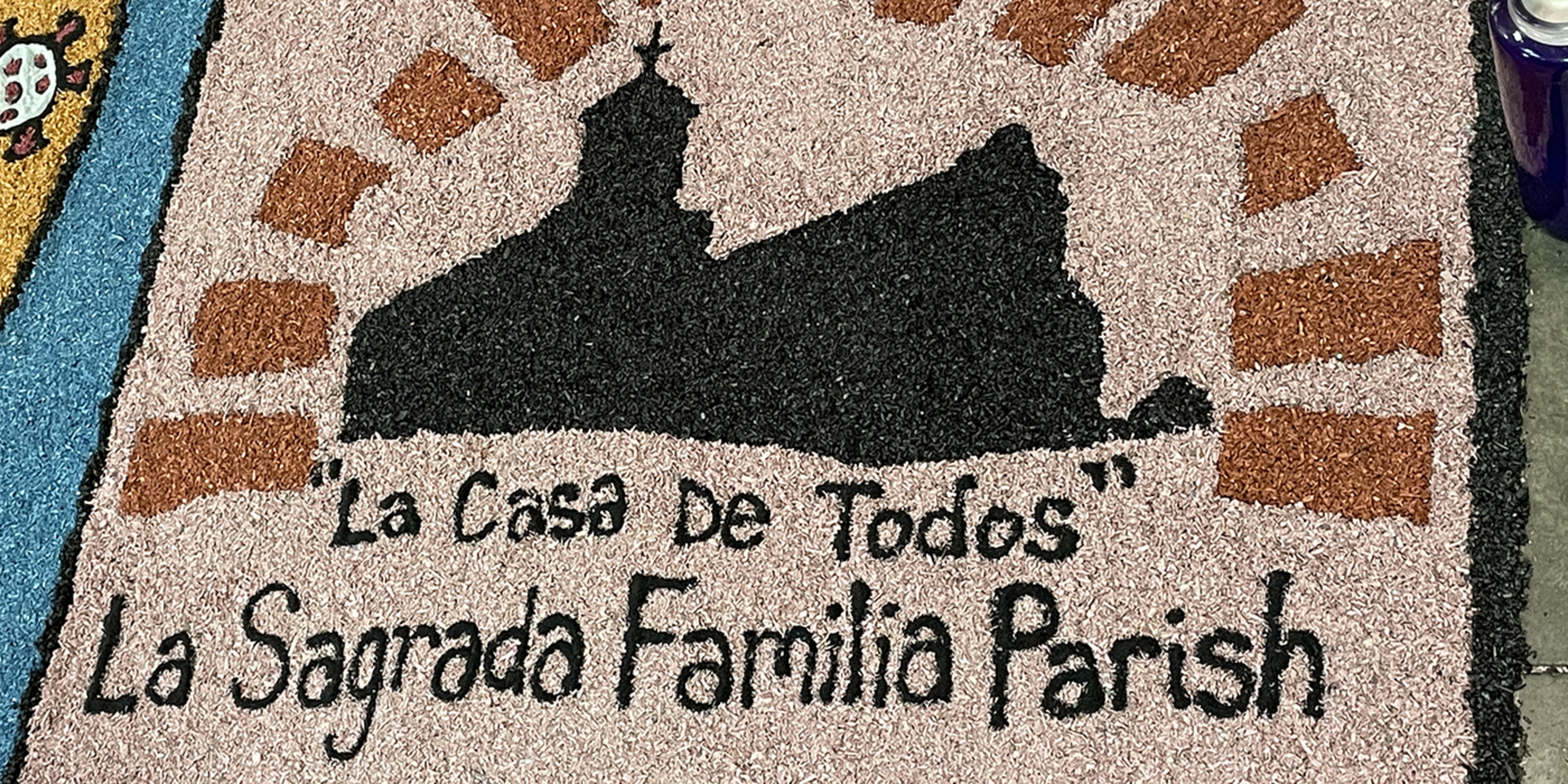 Although many Sagrada Familia parishioners are Puerto Rican, they embraced the custom. In non-pandemic years, the Carpets of Holy Week were part of the Good Friday procession that traveled between Sagrada Familia, St. Colman and St. Michael the Archangel parishes, where participants stopped to pray and reflect on Jesus’ Passion and crucifixion. The carpets would be destroyed as those in the procession trampled them on their way into or out of Sagrada Familia.