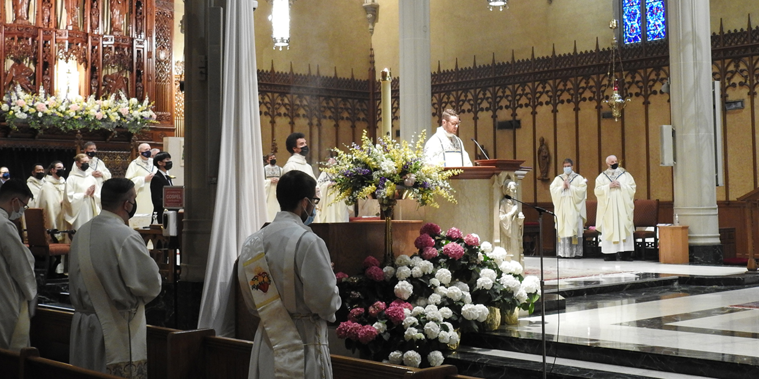 “Gentlemen, you have been feeling the tug of God’s call for a long time now. Your faculty and formators – and your bishops – tested that call,” Bishop Edward Malesic told the five Saint Mary seminarians who were ordained as transitional deacons during a Mass on April 17 in the Cathedral of St. John the Evangelist.