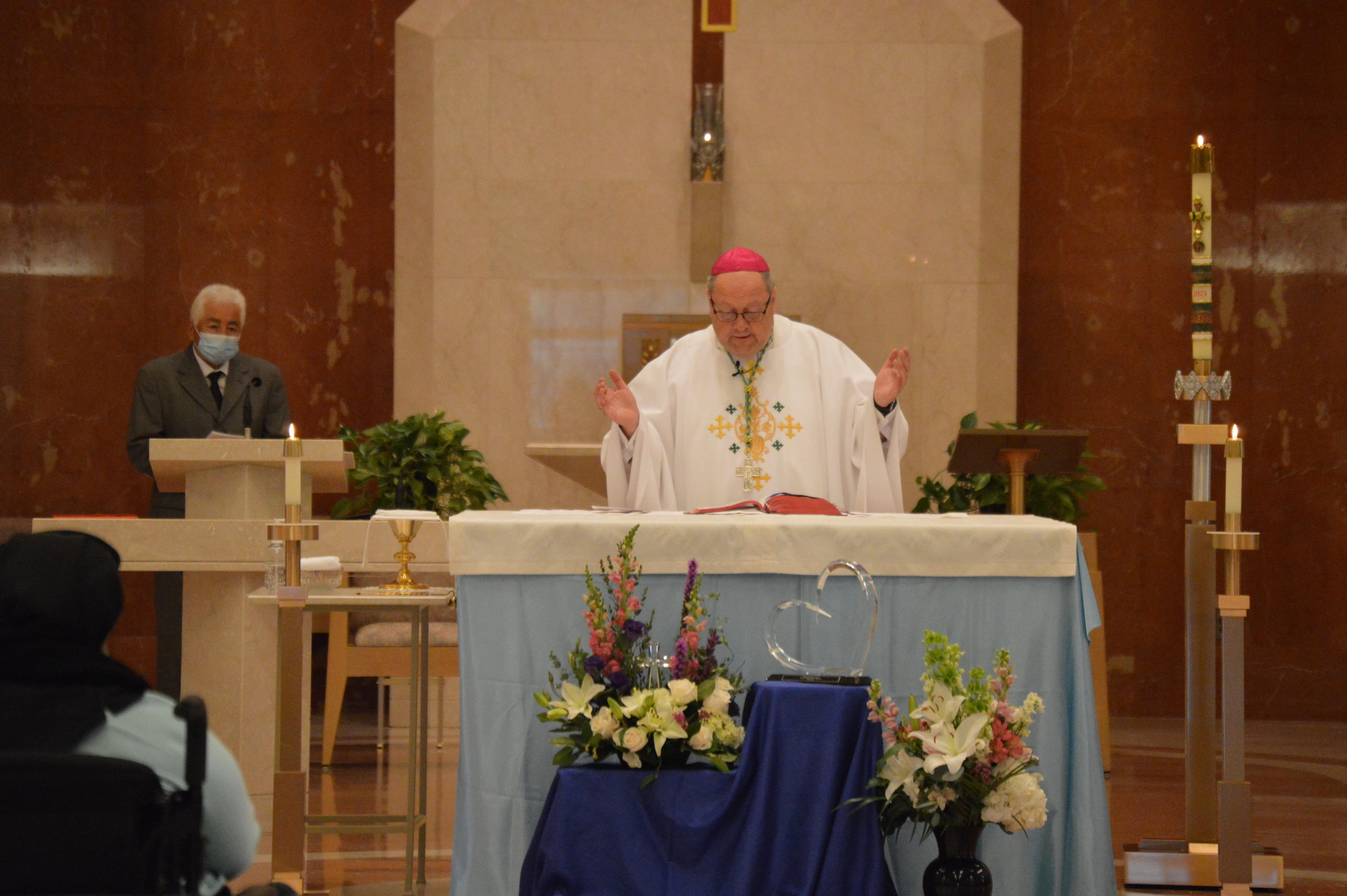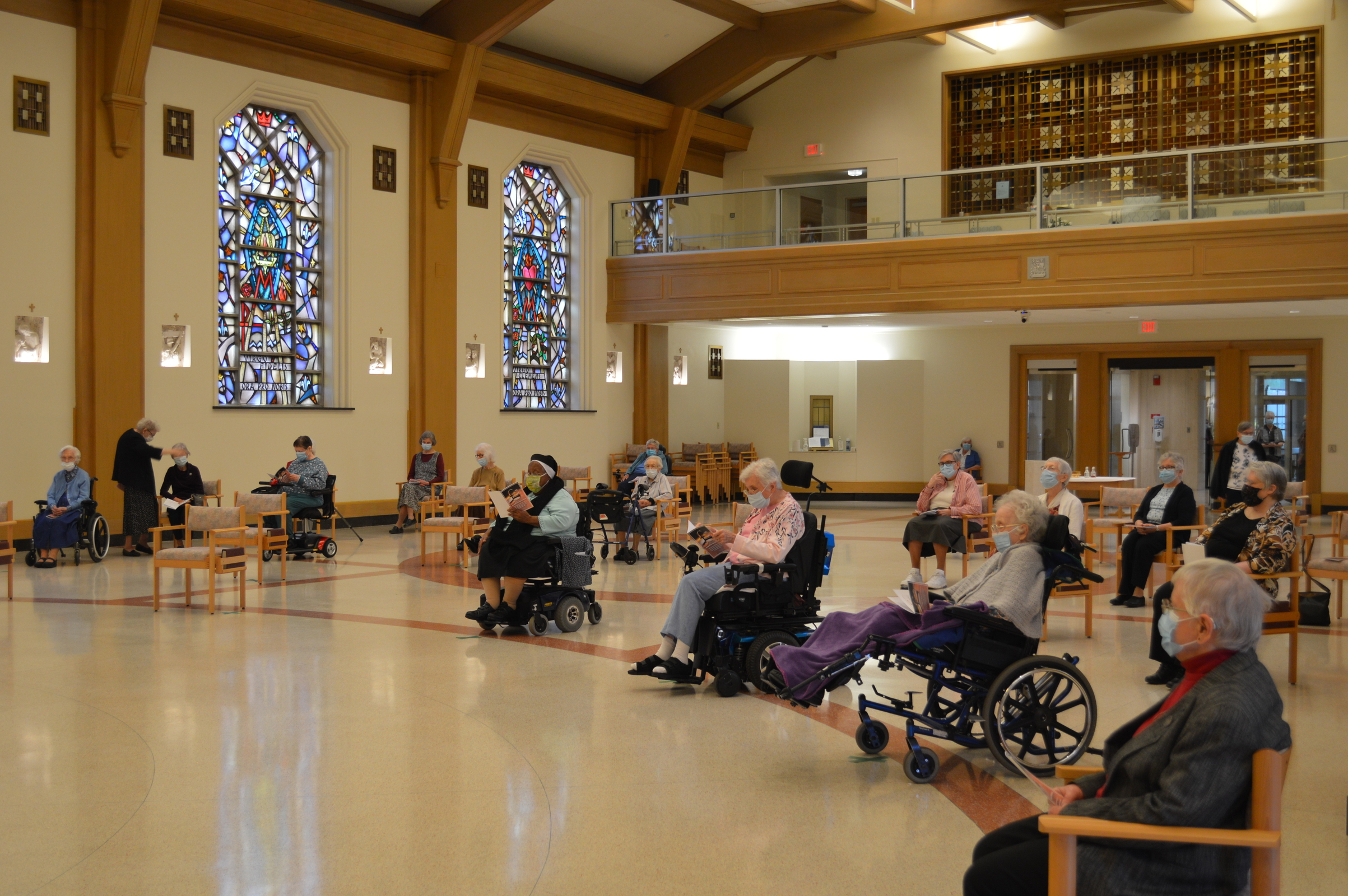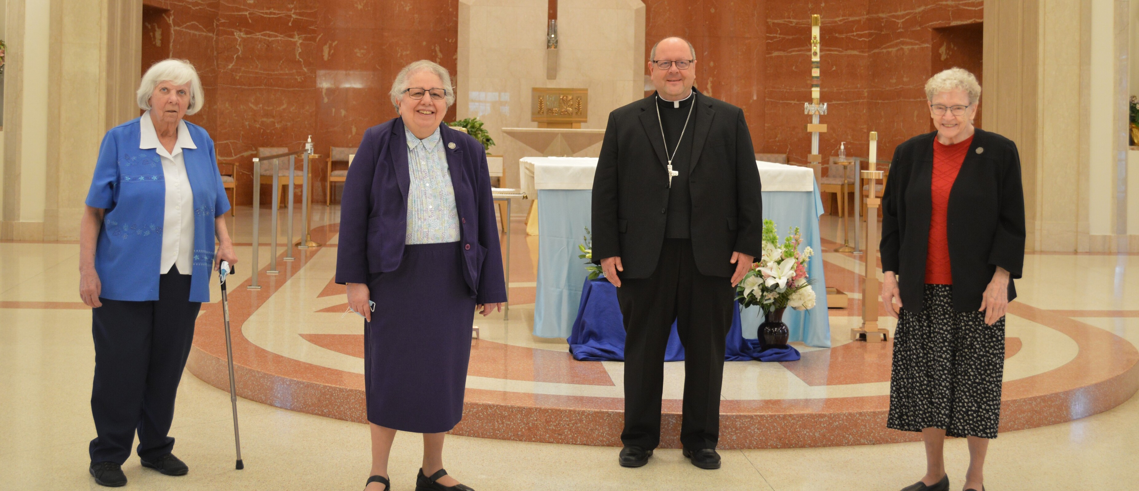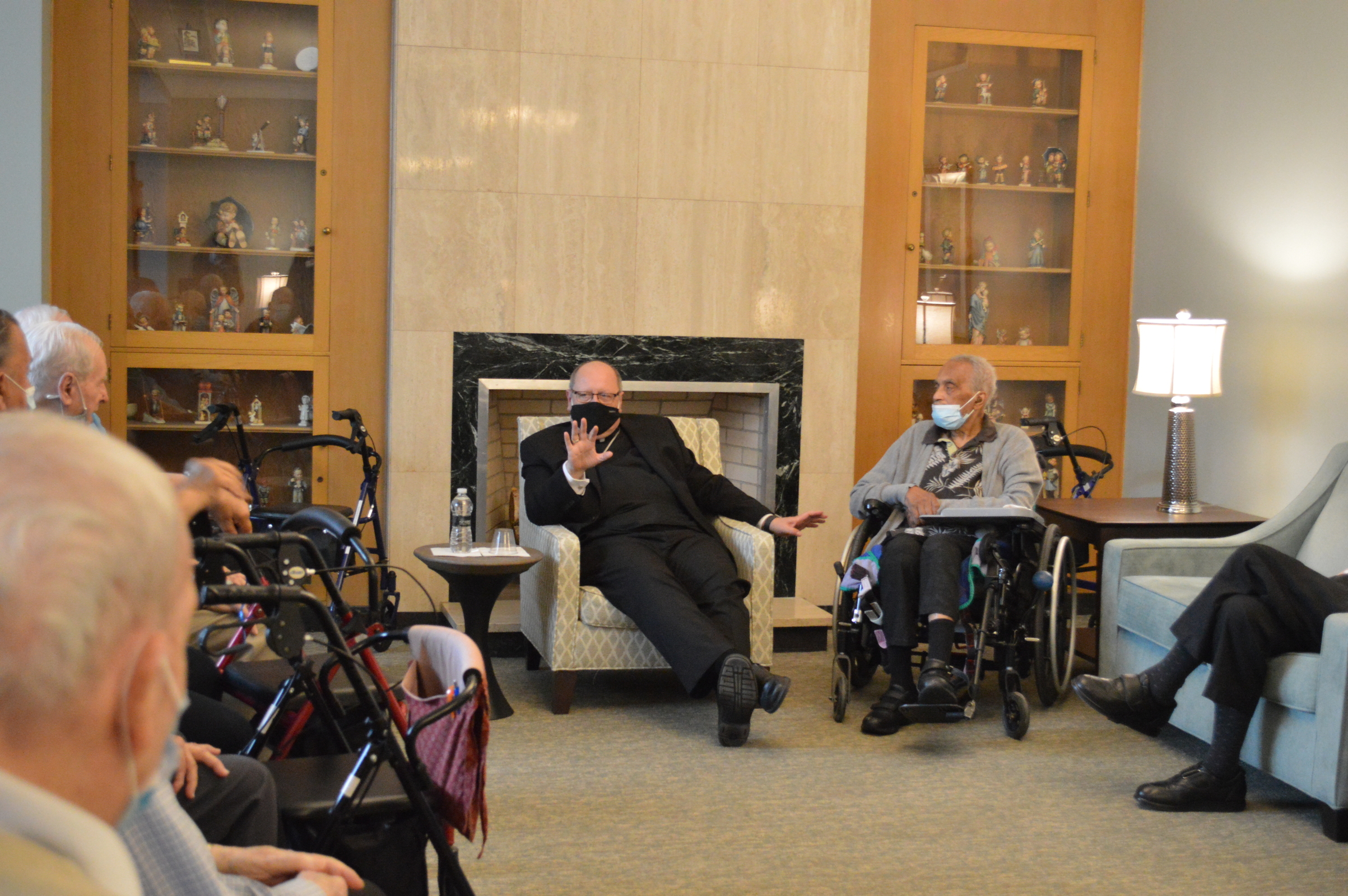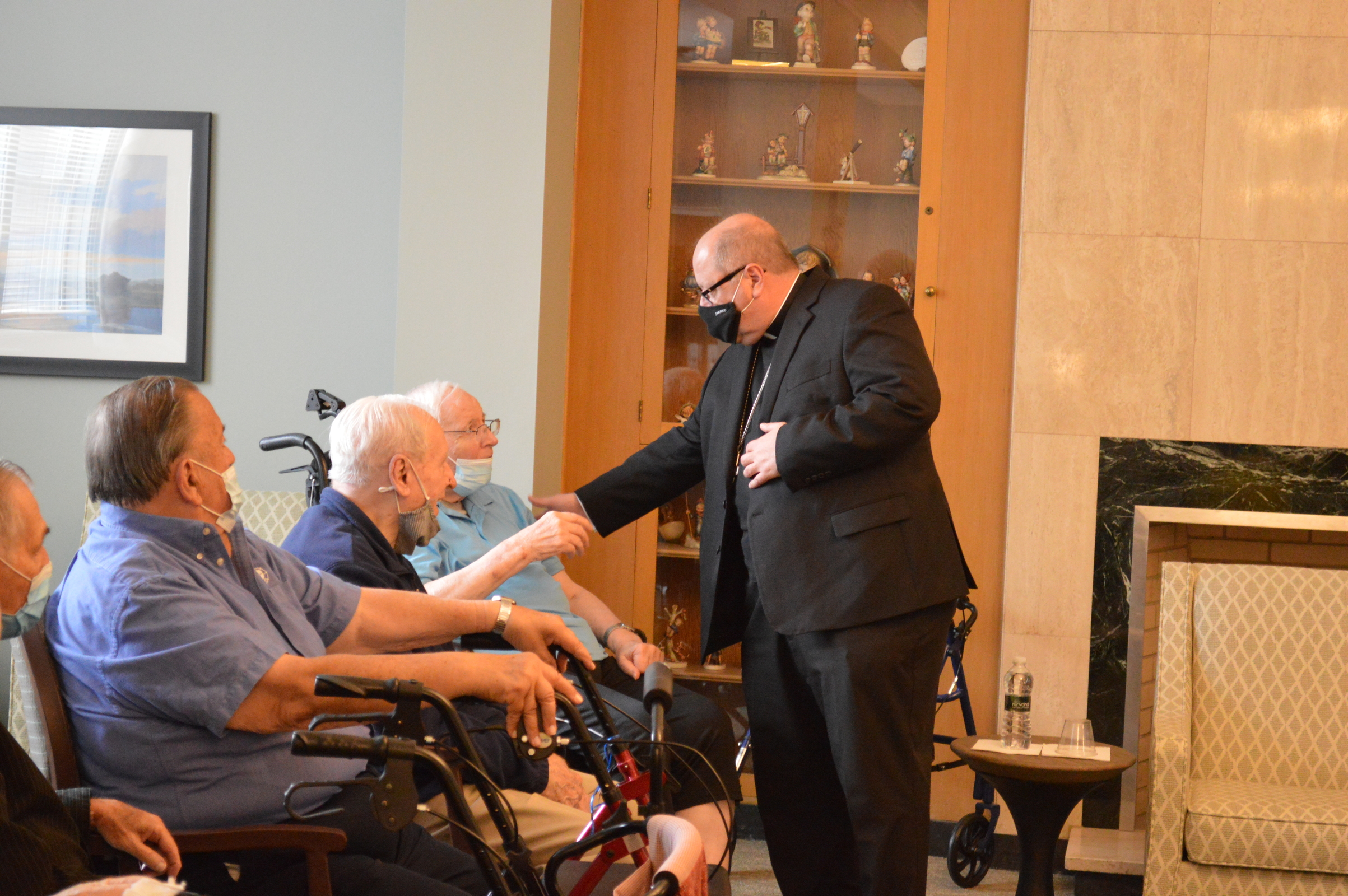 During a recent visit to Regina Health Center and Mount Augustine, which share a campus in Richfield, Bishop Edward Malesic spent time visiting with retired diocesan priests in residence at Regina, celebrating Mass for the Sisters of Charity of St. Augustine and observing their elections for congregational leadership.