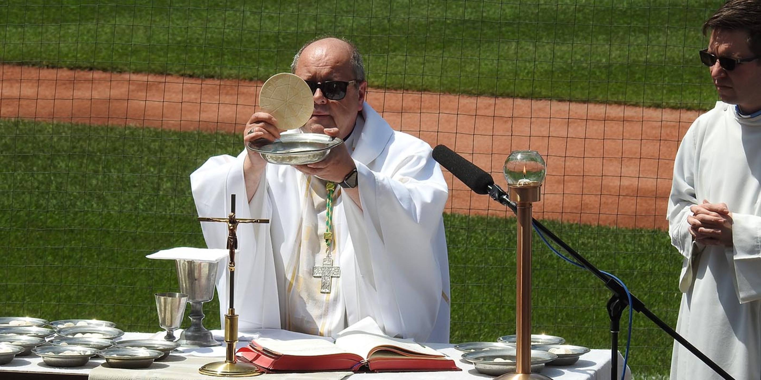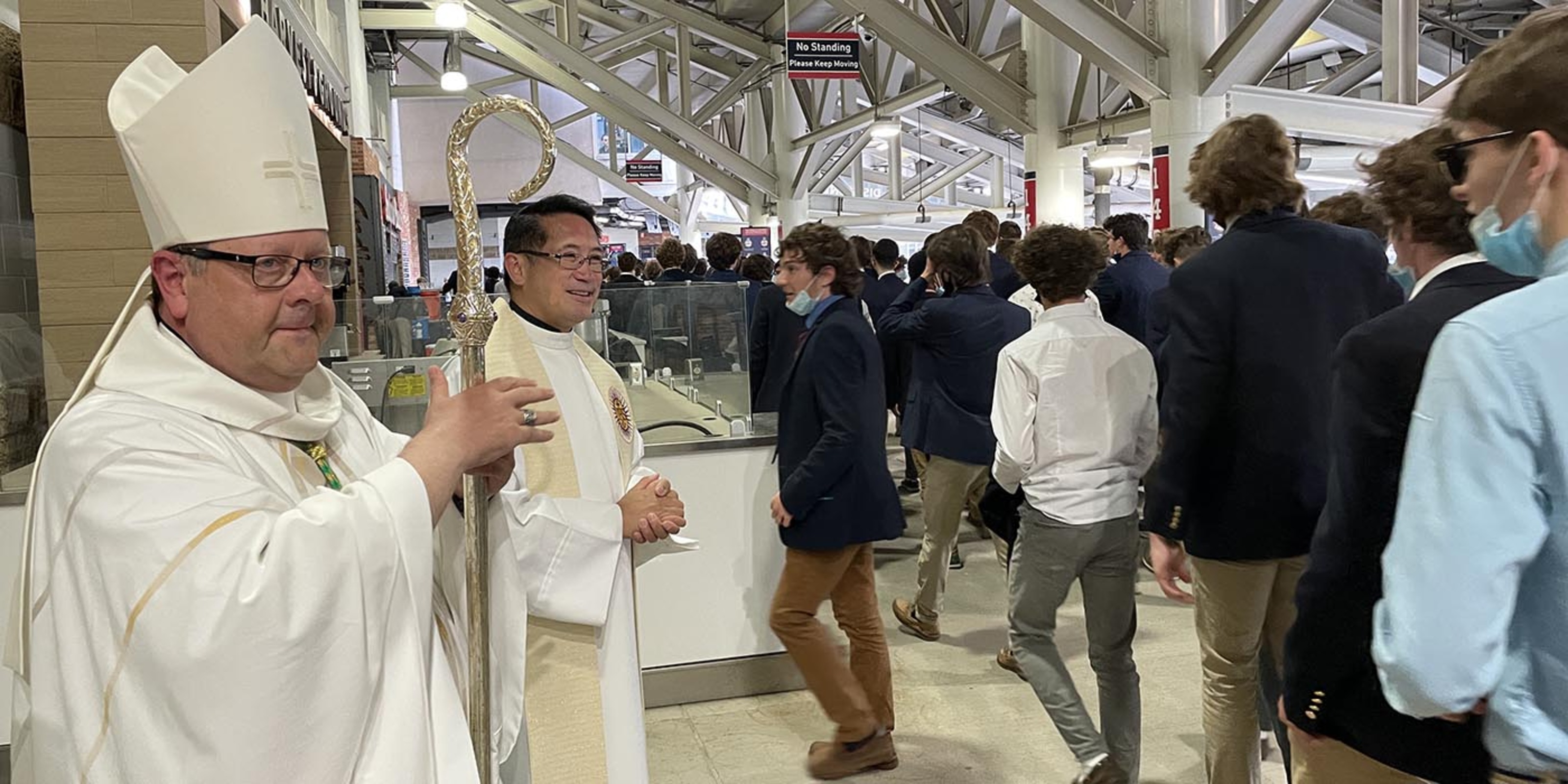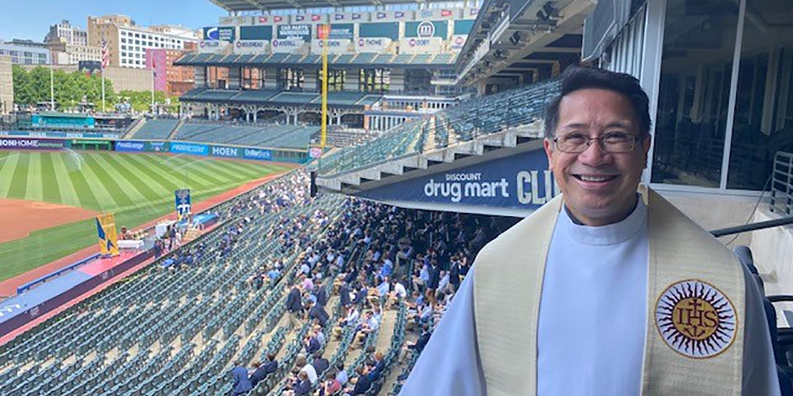 The 1,500 students, 110 faculty members and 100 staff members traveled to Progressive Field where Bishop Edward Malesic, at the invitation of Father Ray Guiao, SJ, Saint Ignatius president, presided at an outdoor liturgy coordinated by Augie Pacetti, director of campus ministry. Most walked from the school and crossed the Hope Memorial Bridge on their way to the ballpark.