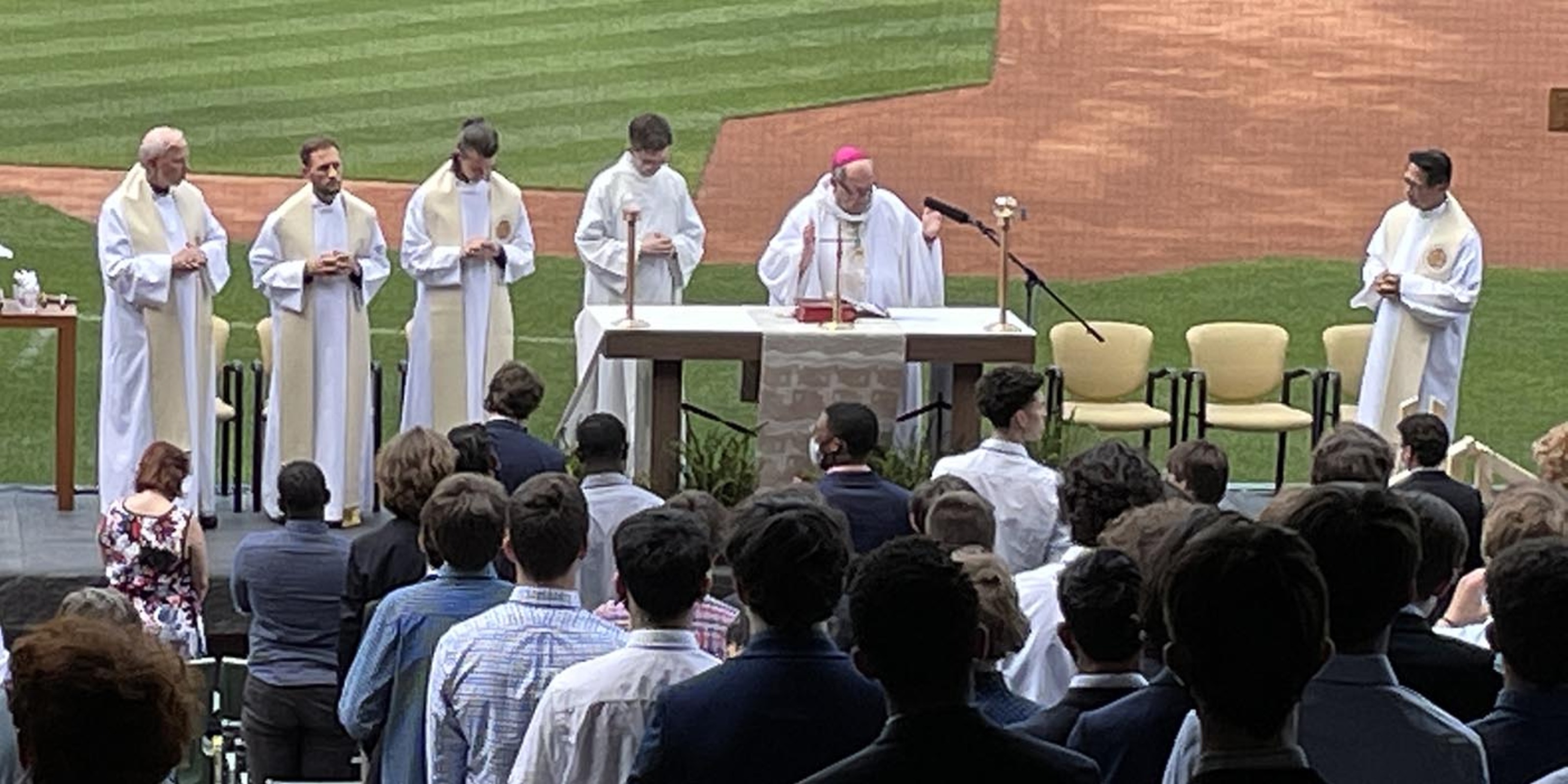 The traditional end-of-year all-school Mass for the Saint Ignatius High School community was more memorable than usual this year because it was the first time the entire community was able to be together in one place due to pandemic-imposed safety guidelines.