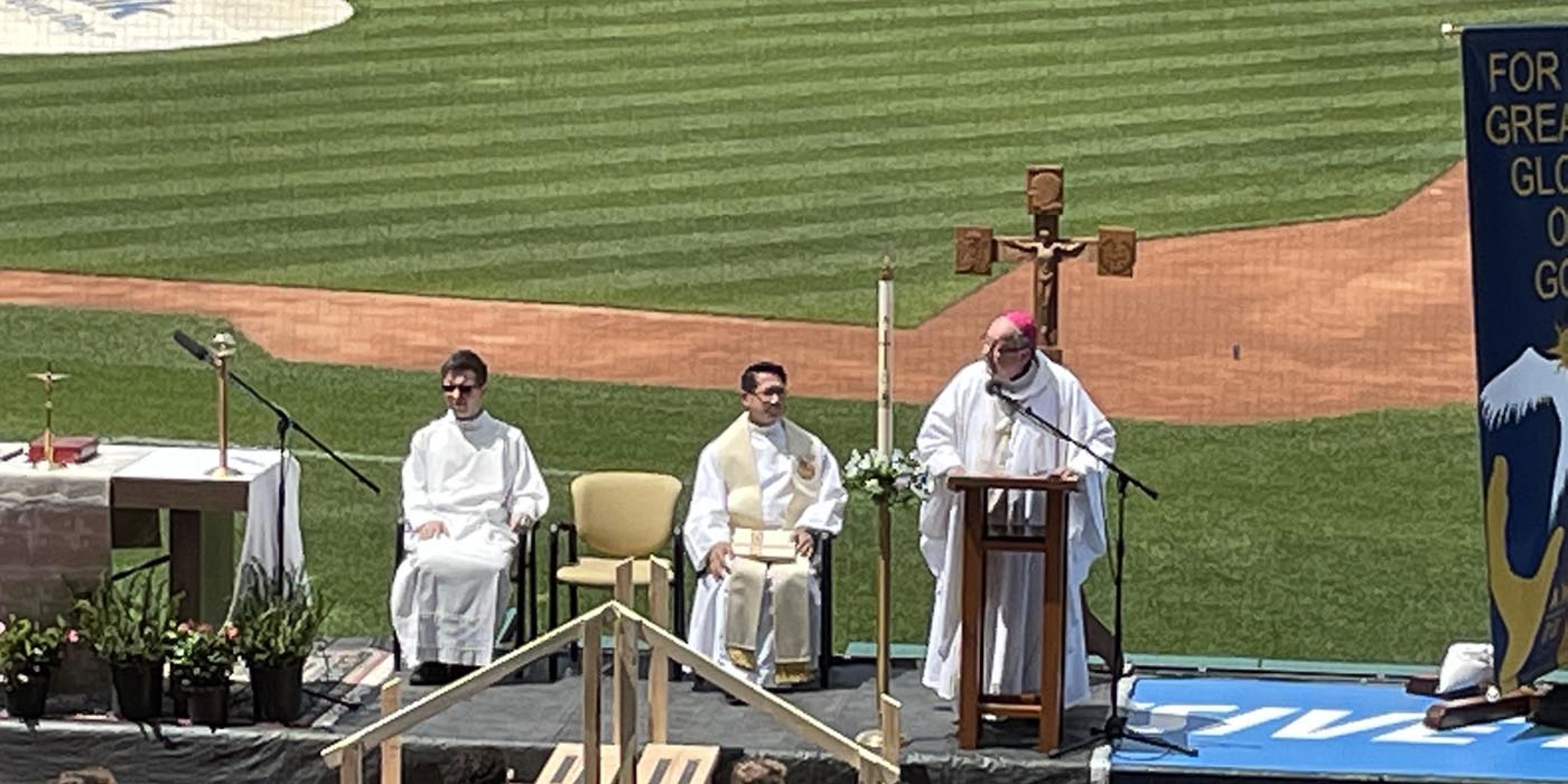 He encouraged them to be prepared like the baseball players who come to Progressive Field, ready to do their best. “Like a soul that wants to fly all the way to heaven, to be a saint. That is the direction Jesus has set for you. Aim high and in the direction of God and then give it your all. And when someone throws you a curve ball, it can still turn into a home run,” he said. “Ask God how to respond to those unexpected and unwanted events, those curve balls that come your way. He will show you how to respond. God is a good coach. He gave us Jesus on the cross as our best example.”