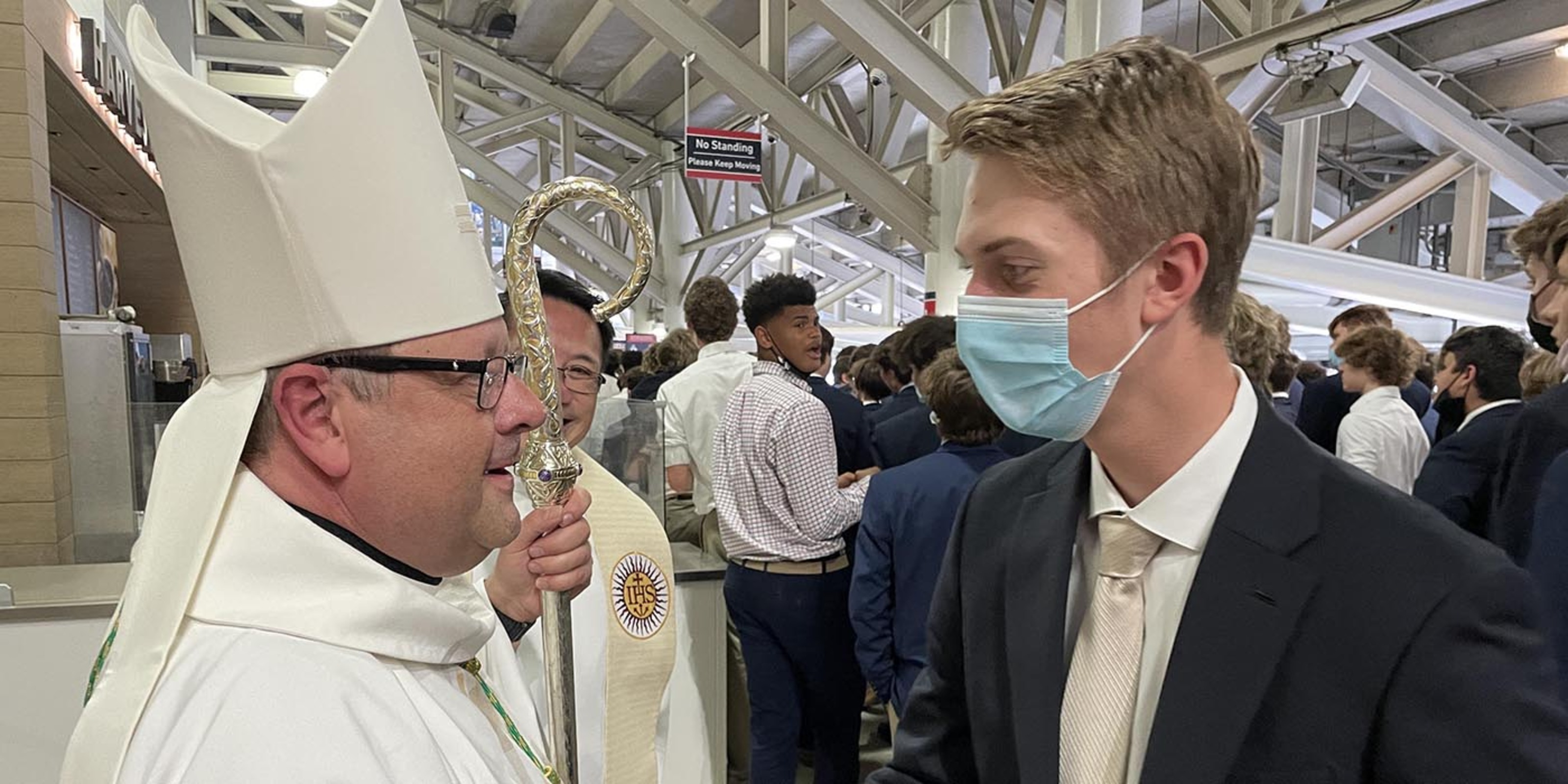 The bishop asked those in attendance to think about the Saint Ignatius motto: “Men for Others,” asking them to reflect on how that takes shape in their lives. It’s something they should consider and pray about, while also reflecting on what God is asking them to do with their lives.
