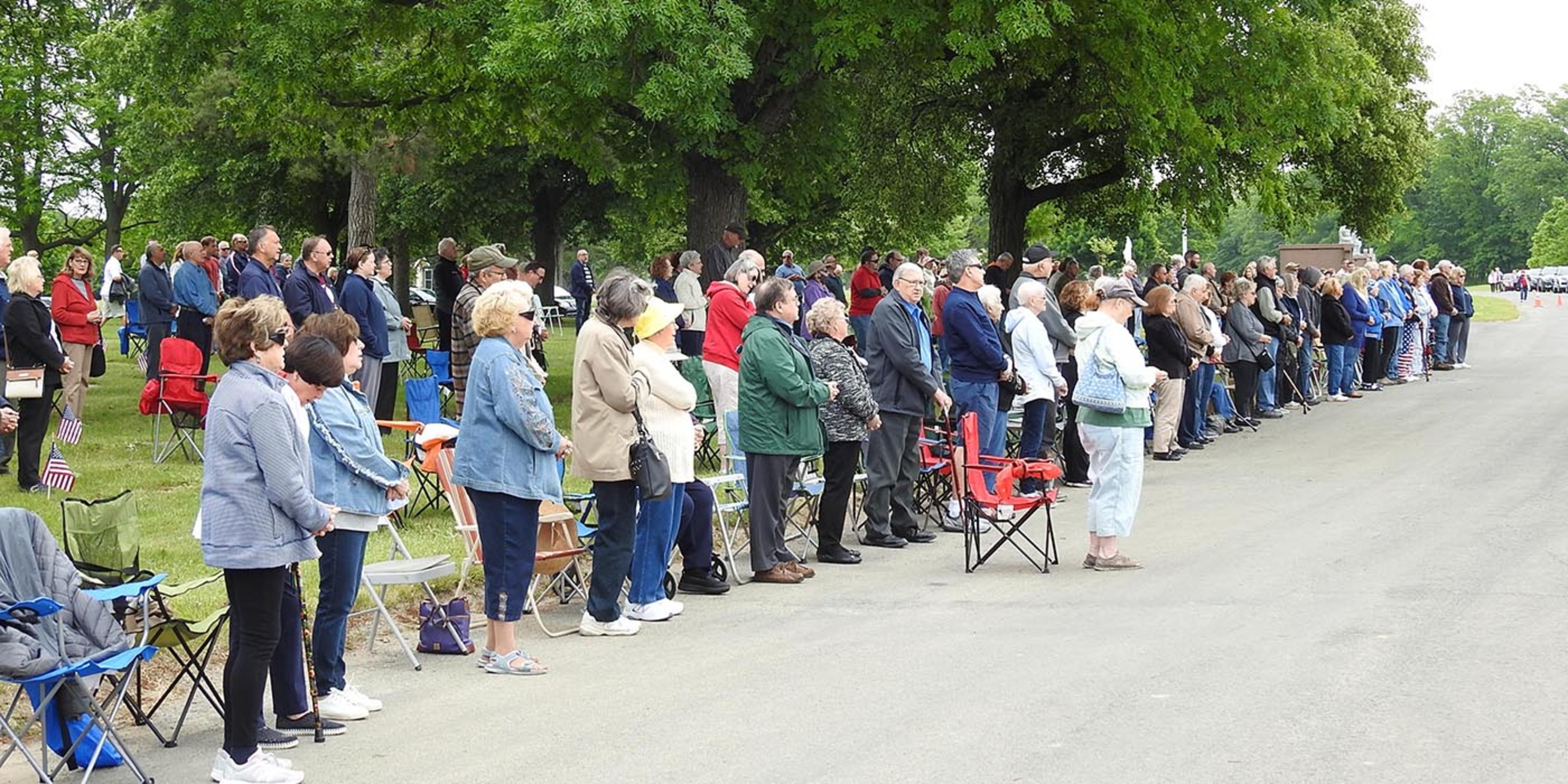He told those gathered that Memorial Day evokes stories and memories. He recalled that 40 years ago, Pope St. John Paul II was shot and nearly killed in Rome. “People wanted to be near him and in a second, the beloved pope was shot,” Father Cox said. But the pope survived, crediting his deep love and devotion to the Blessed Mother and her protection.
