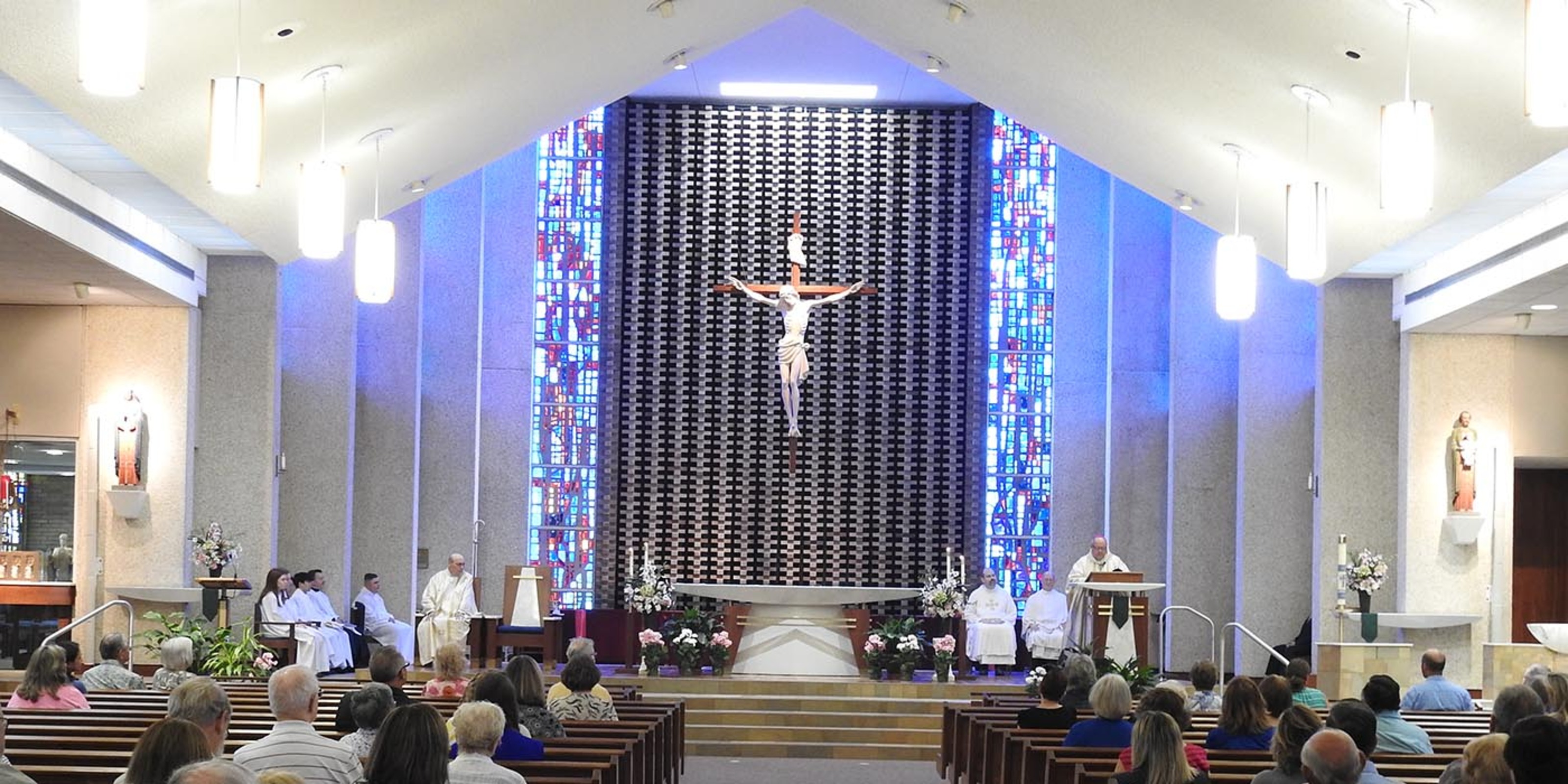 The parish’s 75th anniversary celebration begin on June 6, the feast of Corpus Christi, with a Mass celebrated by Bishop Edward Malesic. Father Joe Mamich, pastor, Father Kevin Klonowski, parochial vicar, and Father Robert Sanson, pastor emeritus, concelebrated.