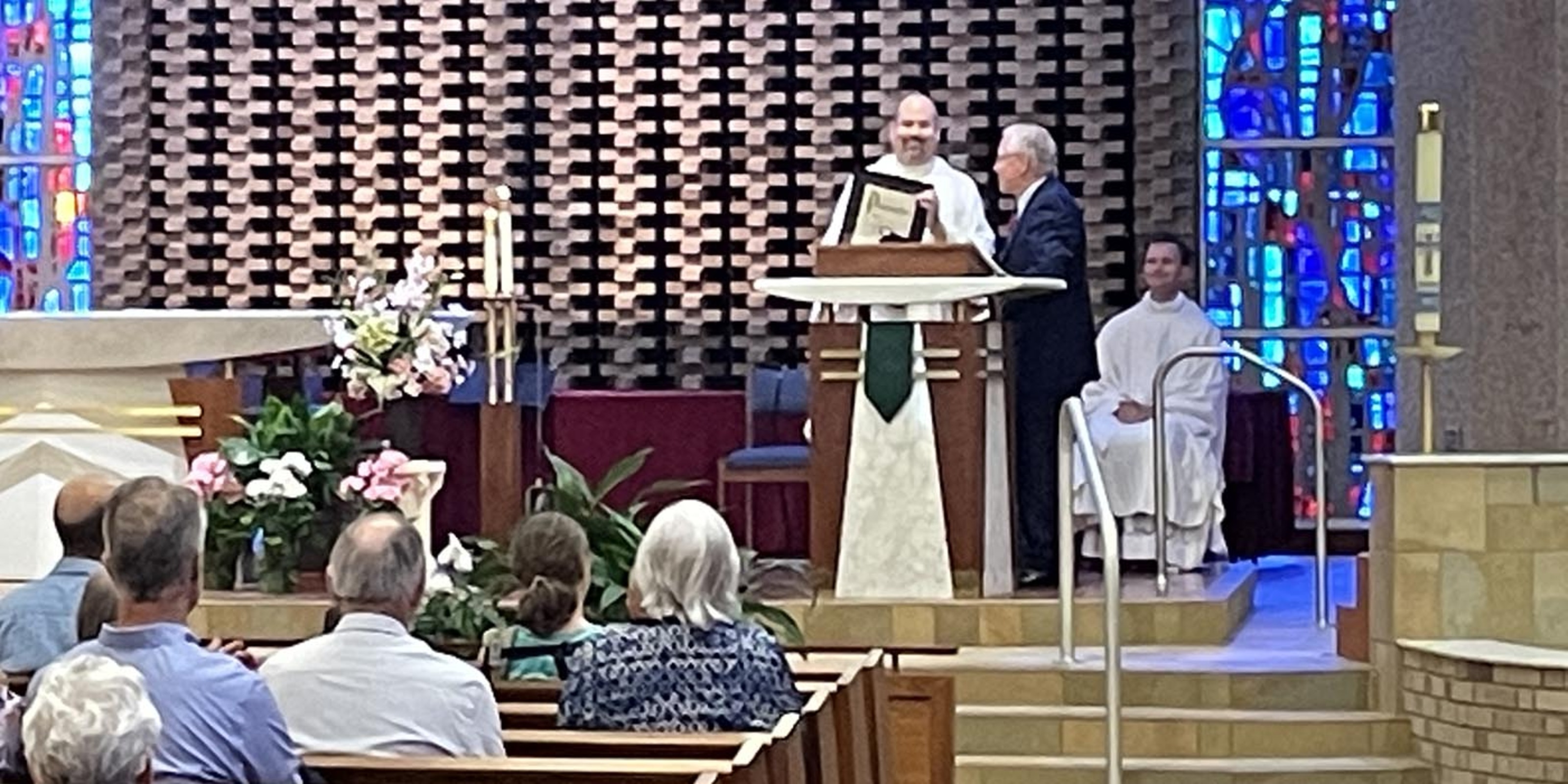 Strongsville Mayor Tom Perciak, a parishioner at nearby St. John Neumann, attended the Mass and presented Father Mamich with a proclamation from the city recognizing the contributions St. Joseph Parish had made to the city and offering congratulations on the 75th anniversary.
