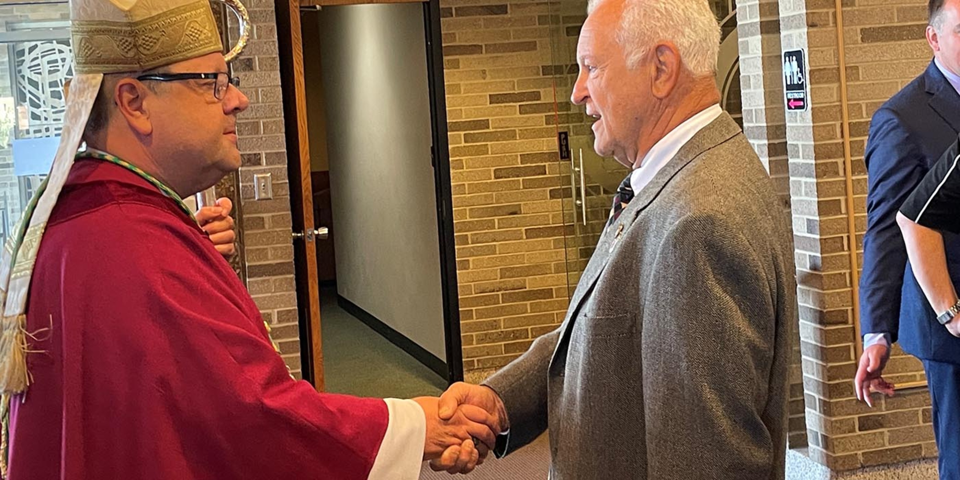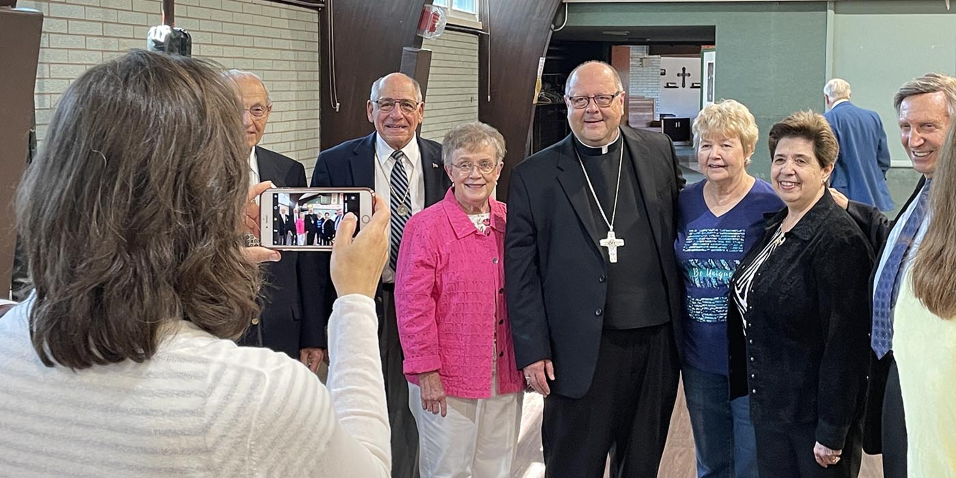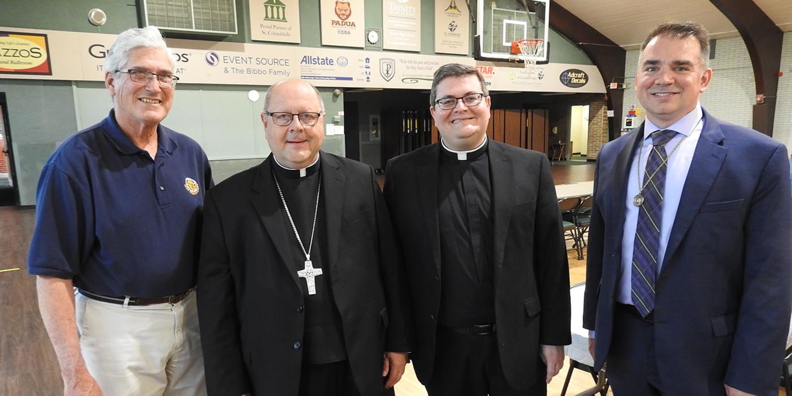 Bishop Malesic greeted the group and spent some time socializing with them in the St. Columbkille School gym.
