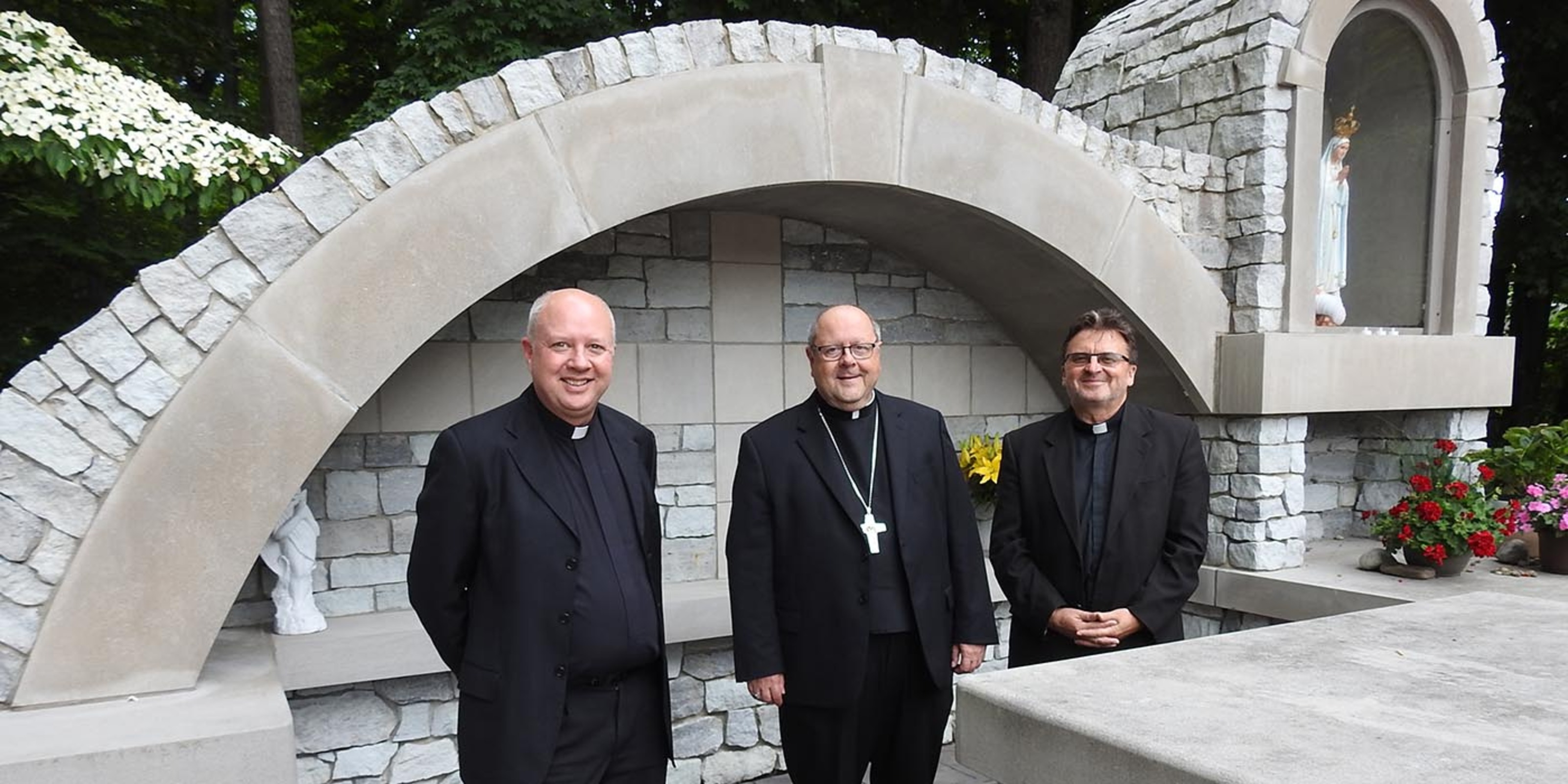 Father Kusy and Deacon George Malec guided the bishop and Father Schlegel on a tour of St. Cyprian’s grotto, located on a portion of the parish’s 20-acre grounds.