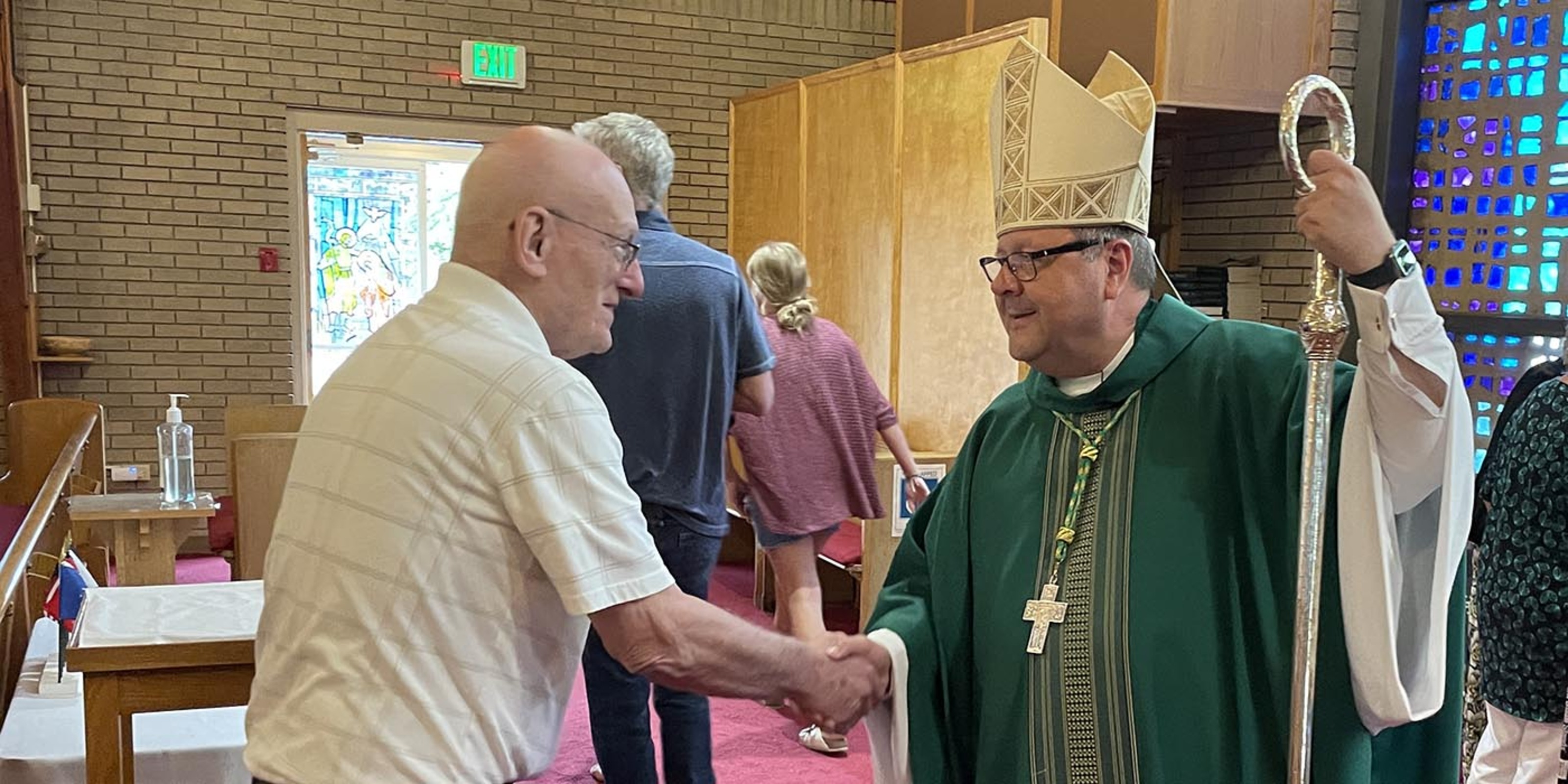 He welcomed Bishop Edward Malesic and Father Dan Schlegel, vicar for clergy and religious, to the parish. “I hope you come again,” he said, extending an open invitation to return.
