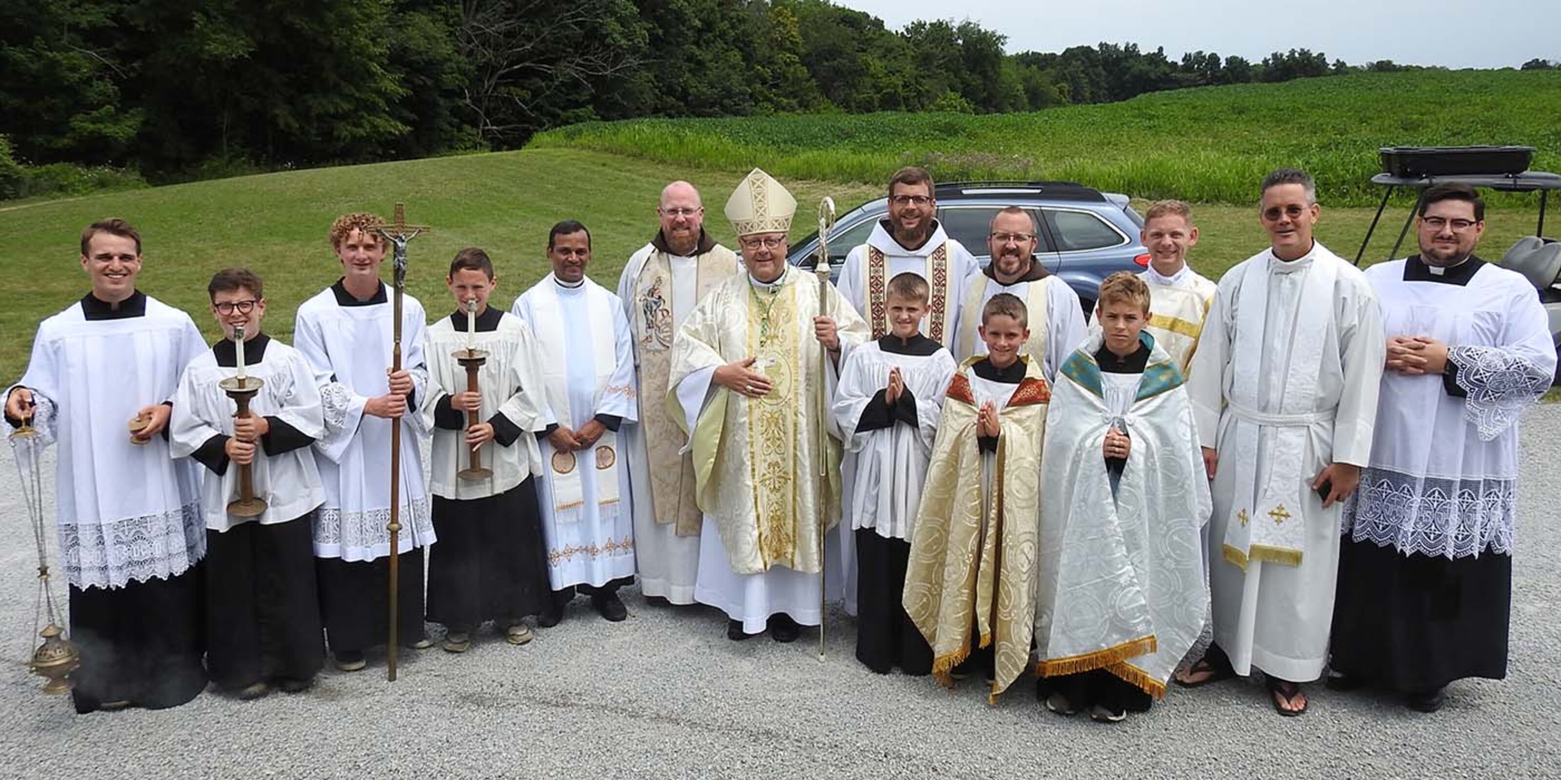 Against a backdrop of woods, a manmade lake and Amish-built structures, Bishop Edward Malesic got his first look at Damascus Catholic Mission Campus, home of the Catholic Youth Summer Camp in Centerburg, Ohio on July 23, a picture-perfect summer day.