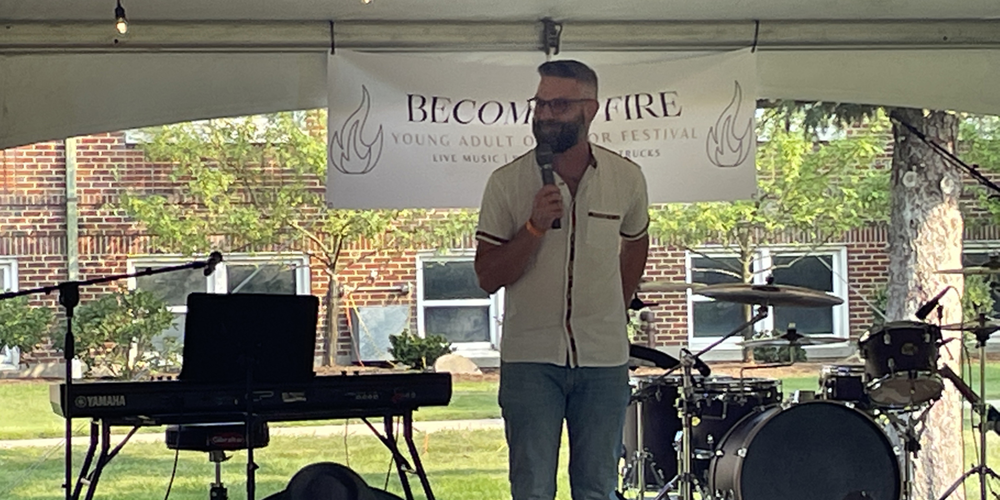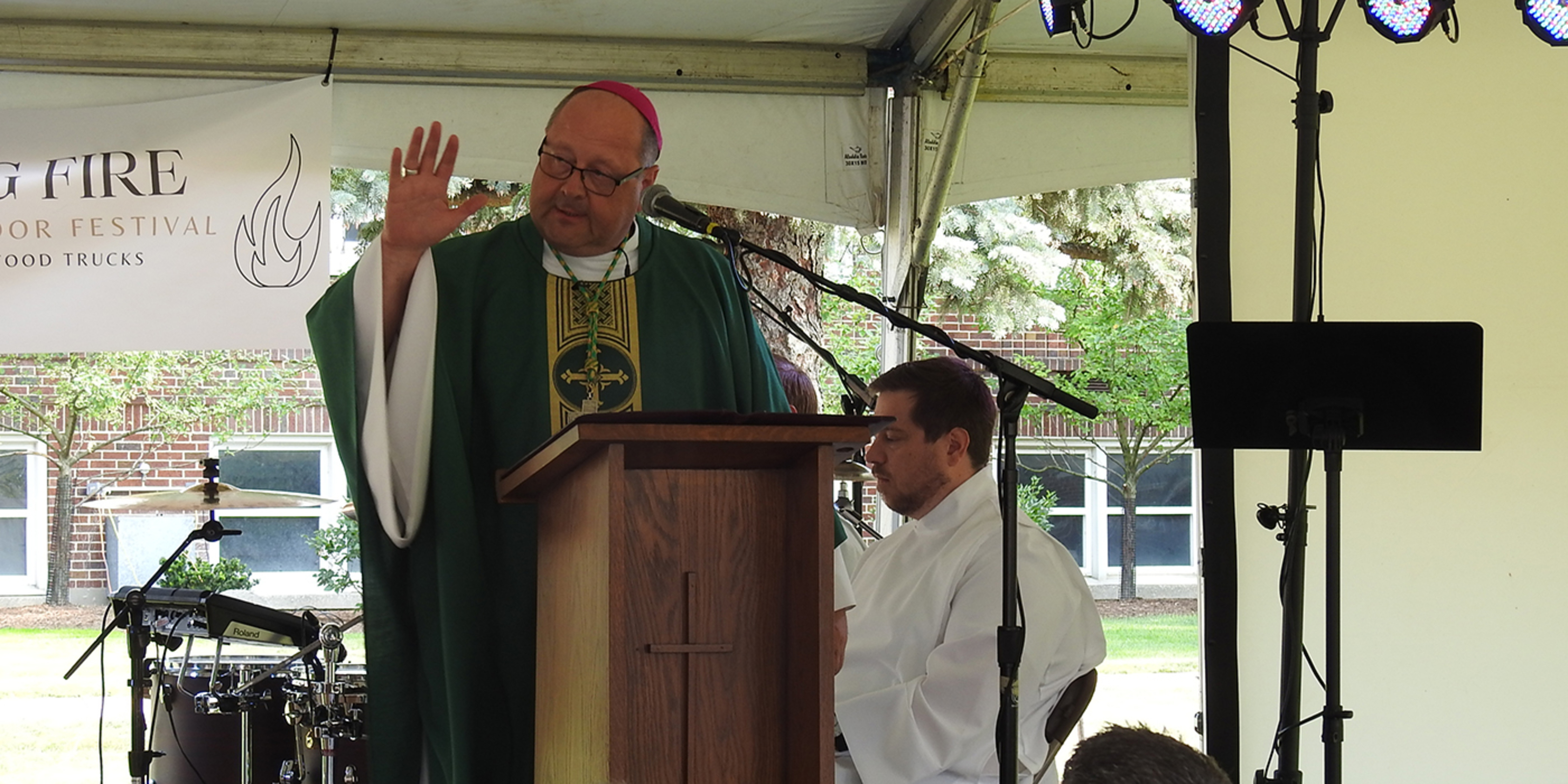 An outdoor concert with music by Mercy Divine, Mass celebrated by Bishop Edward Malesic, a keynote speaker, Adoration, opportunities for confession and spiritual direction, games, food, fun and fellowship. The first “Becoming Fire” event for young adults – 18 and older – had it all.