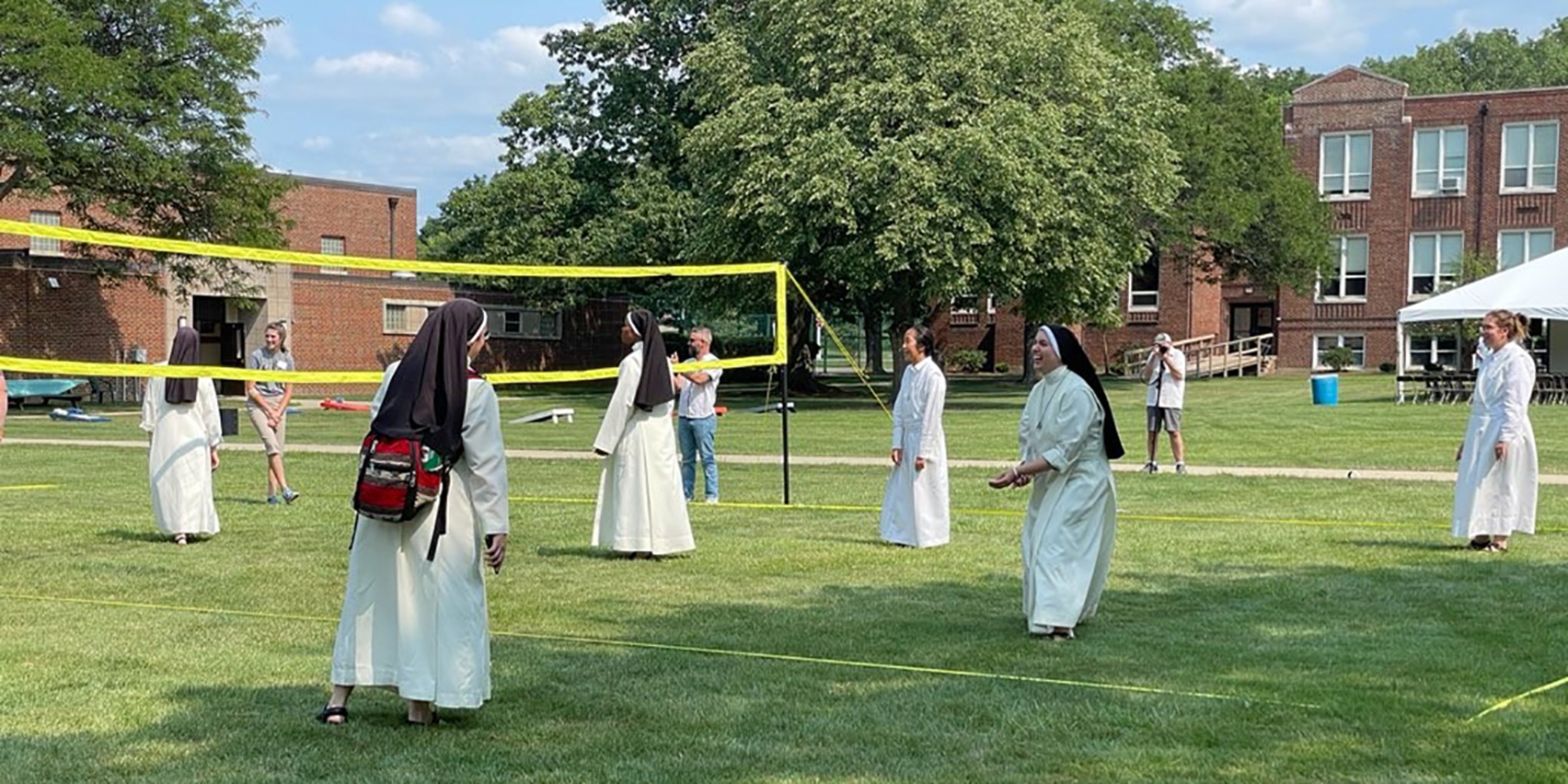 Attendees checked in and were able to socialize and play games including corn hole and volleyball until Mass began about 4 p.m. under a large tent set up on the spacious CPL grounds.