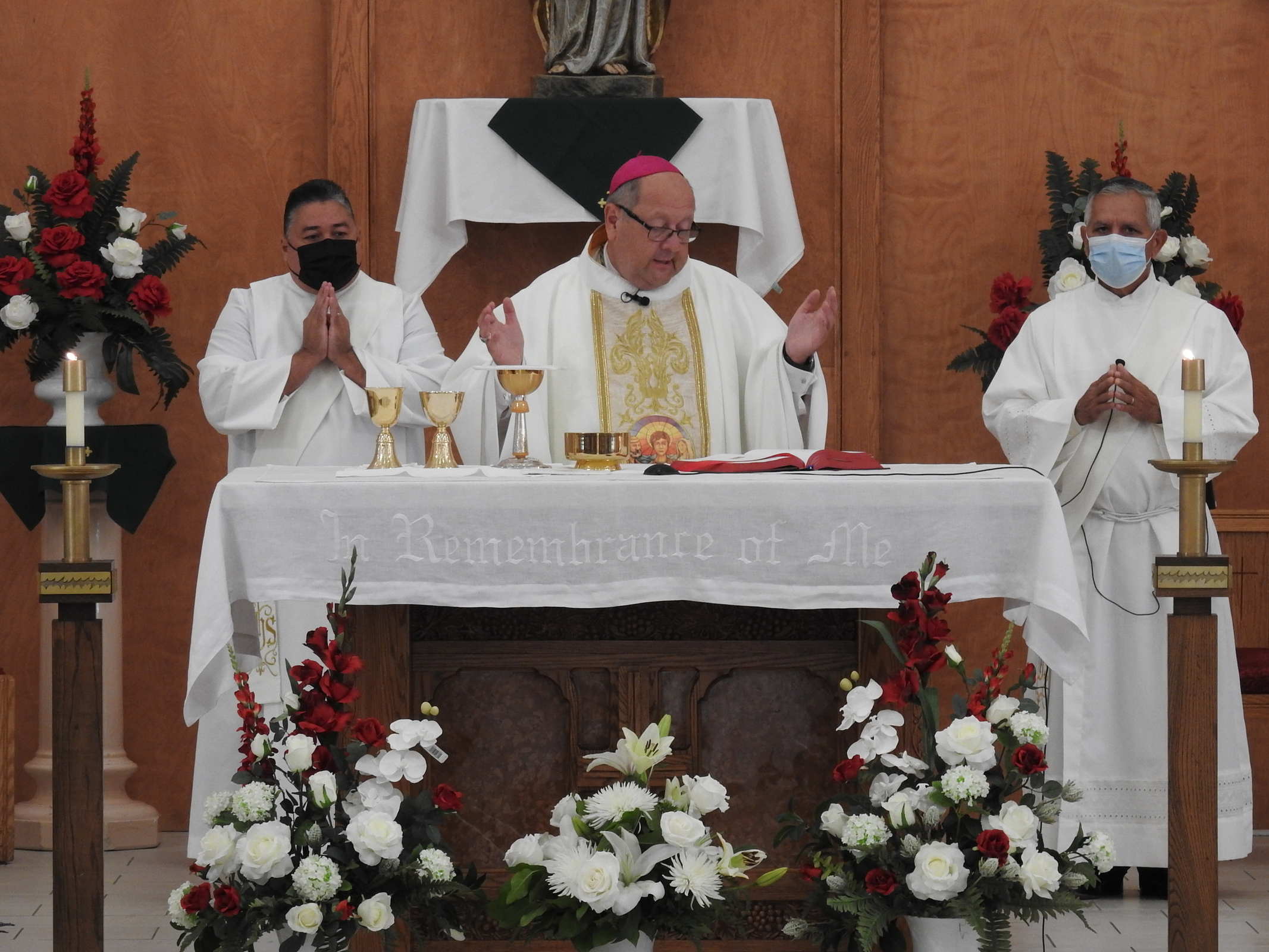 Bishop Edward Malesic was the principal celebrant of the opening Mass, with Father Alex Spenik, parochial vicar at St. Mary Parish in Painesville and Father Francisco Honorato, Sagrada Familia pastor, as concelebrants. Assisting with the liturgy were Deacon Francisco Miranda from St. Michael the Archangel Parish in Cleveland and Deacon Epifanio Torres from Sagrada Familia Parish. Although unable to be at the Mass, Father Chris Zerucha, pastor of St. Bernard and St. Mary Parishes in Akron joined the gathering later.