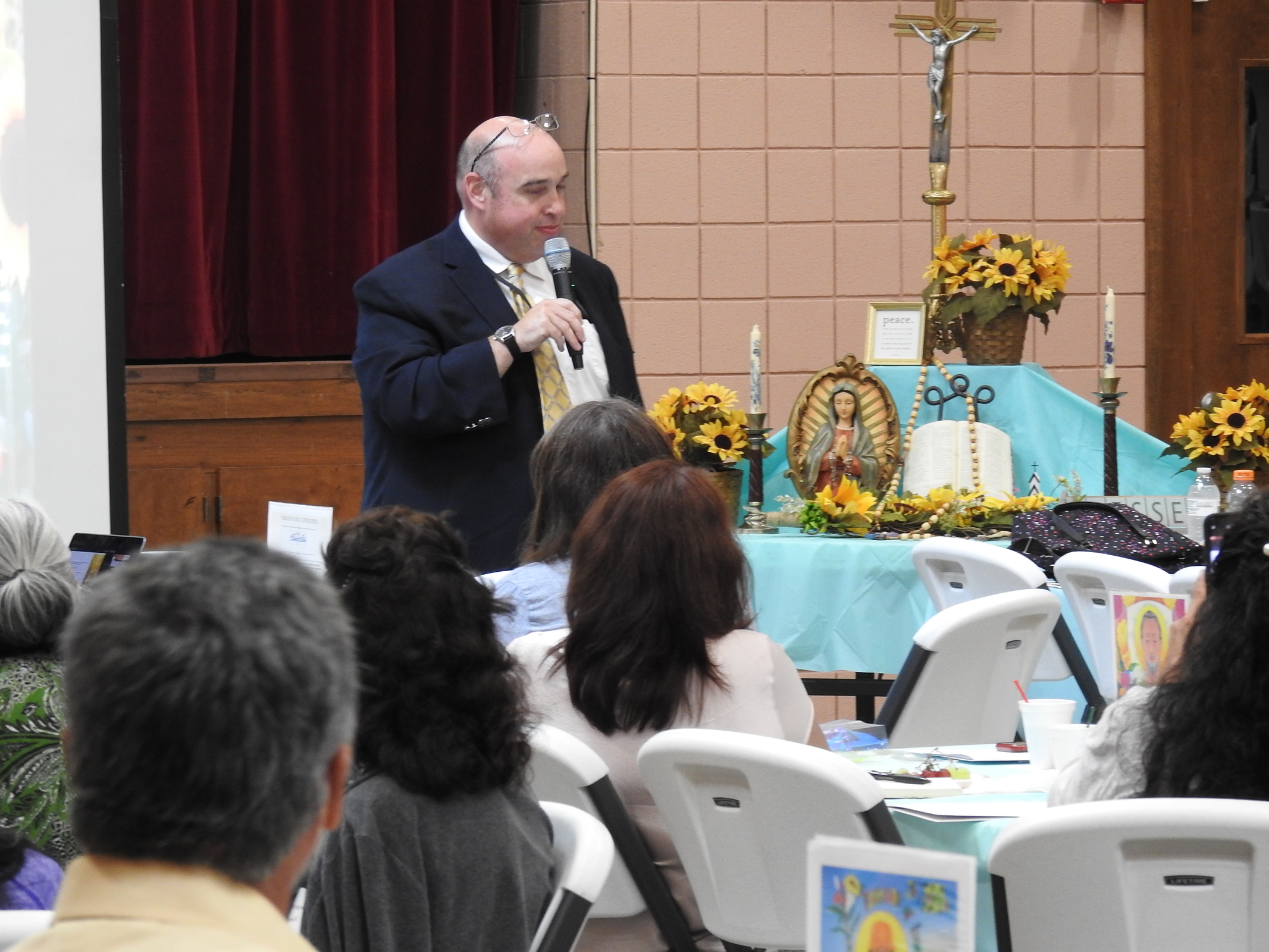 Part of the formation is to offer an annual retreat, which is one requirement for basic certification. At this year’s retreat, Gerardo “Lalo” Salazar, national bilingual consultant of religion, directed the retreat. One of the goals of the retreat is to reaffirm the vocation and identify parents and catechists. Salazar offered reflections, dynamics and music throughout the daylong event.