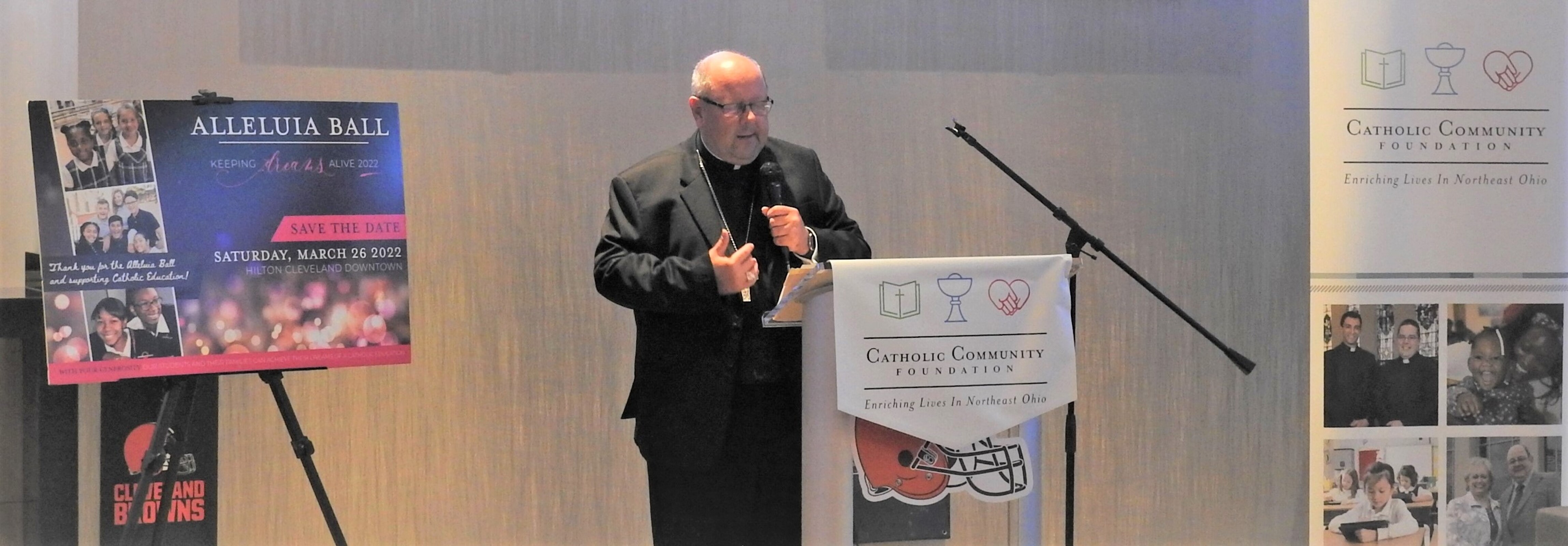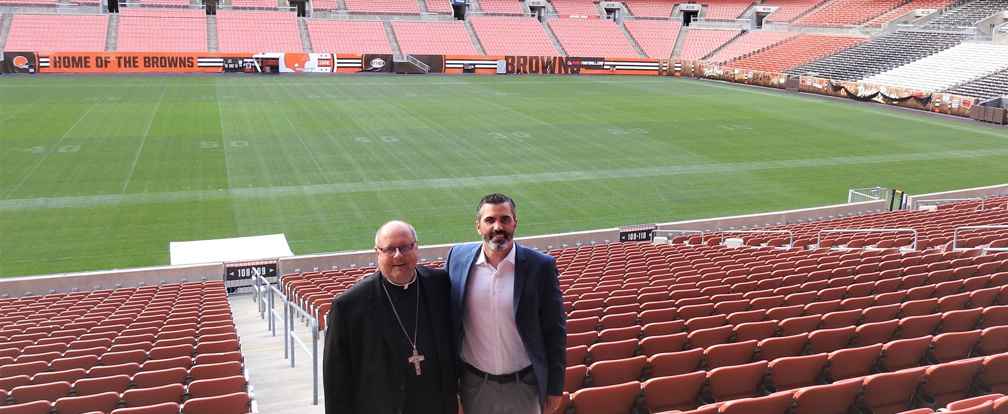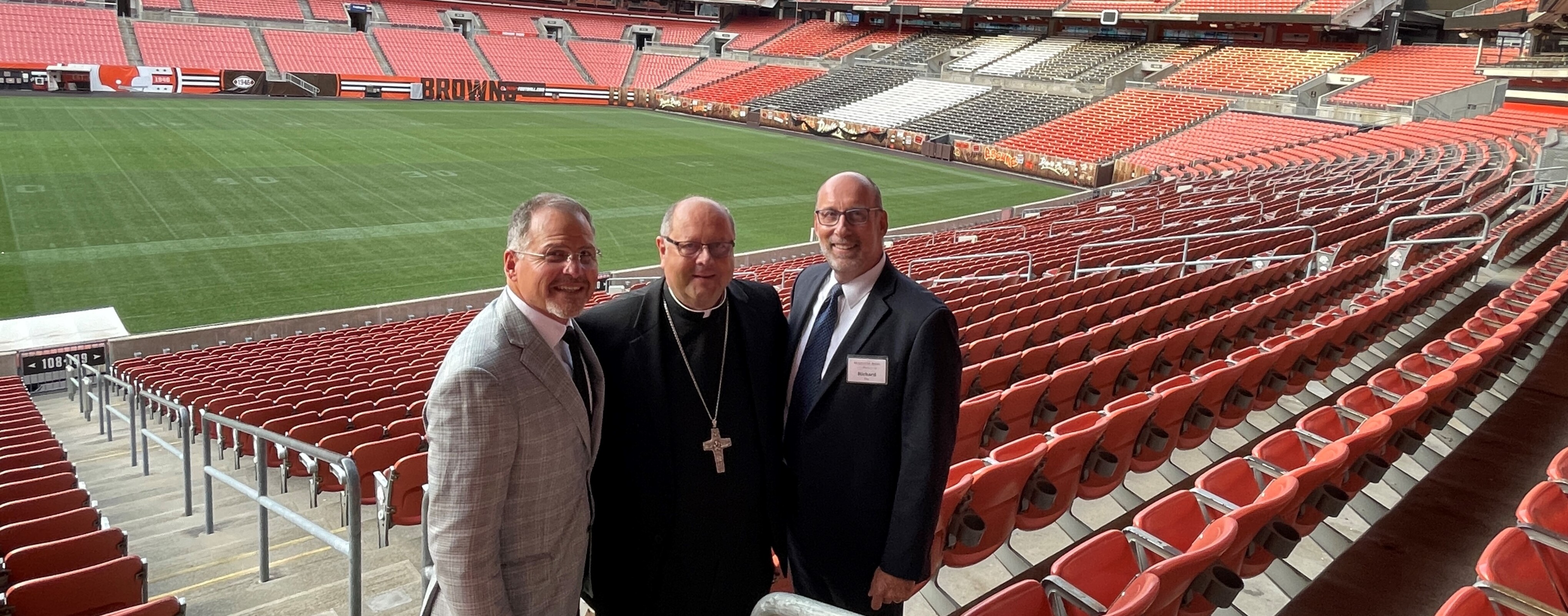 Planning is underway for the Alleluia Ball, an evening celebrating Catholic education and supporting tuition assistance. Potential sponsors for the major fundraising event were invited to a sponsorship kickoff featuring Bishop Edward Malesic on Aug. 31 at FirstEnergy Stadium, home of the Cleveland Browns.