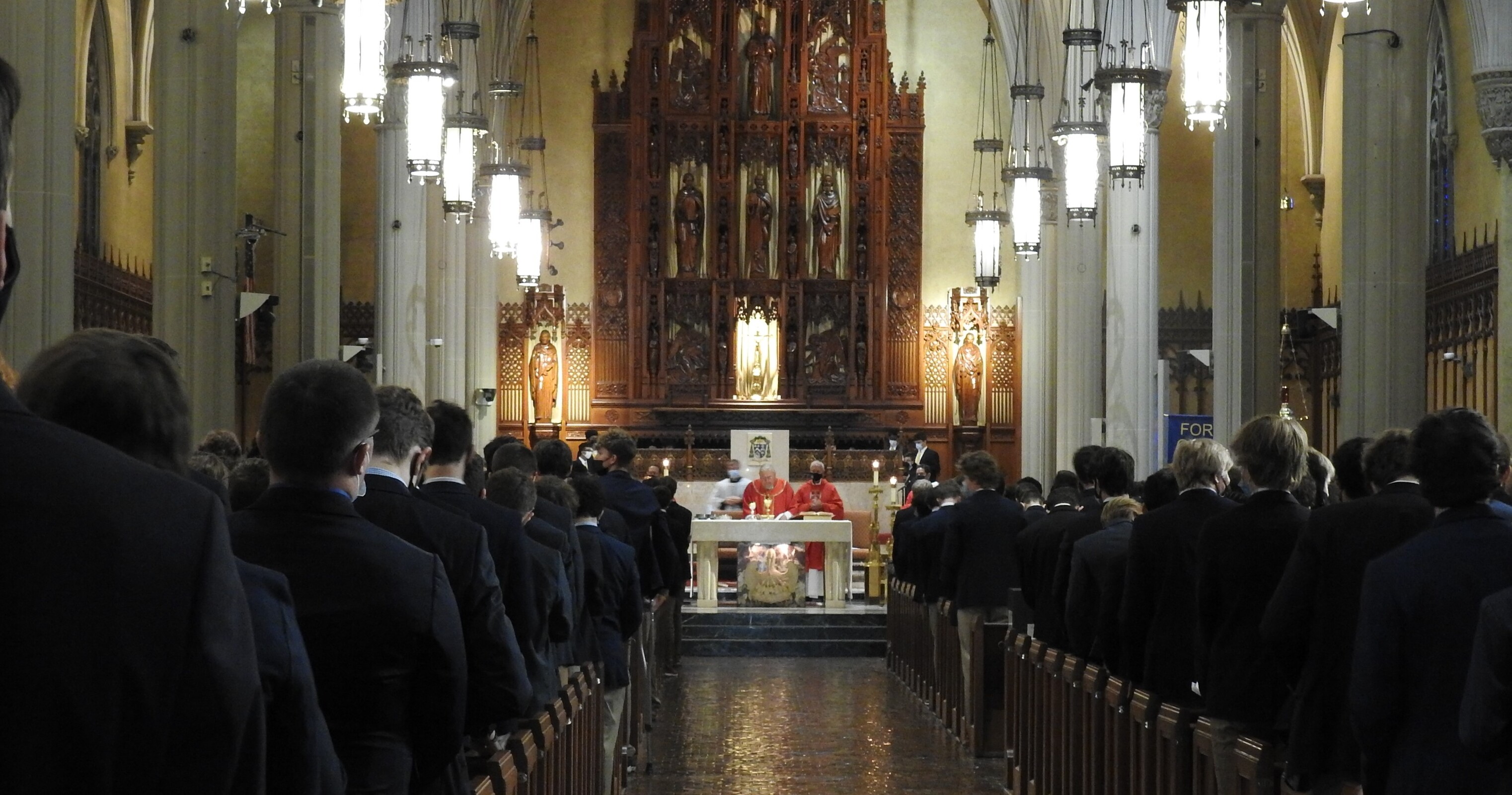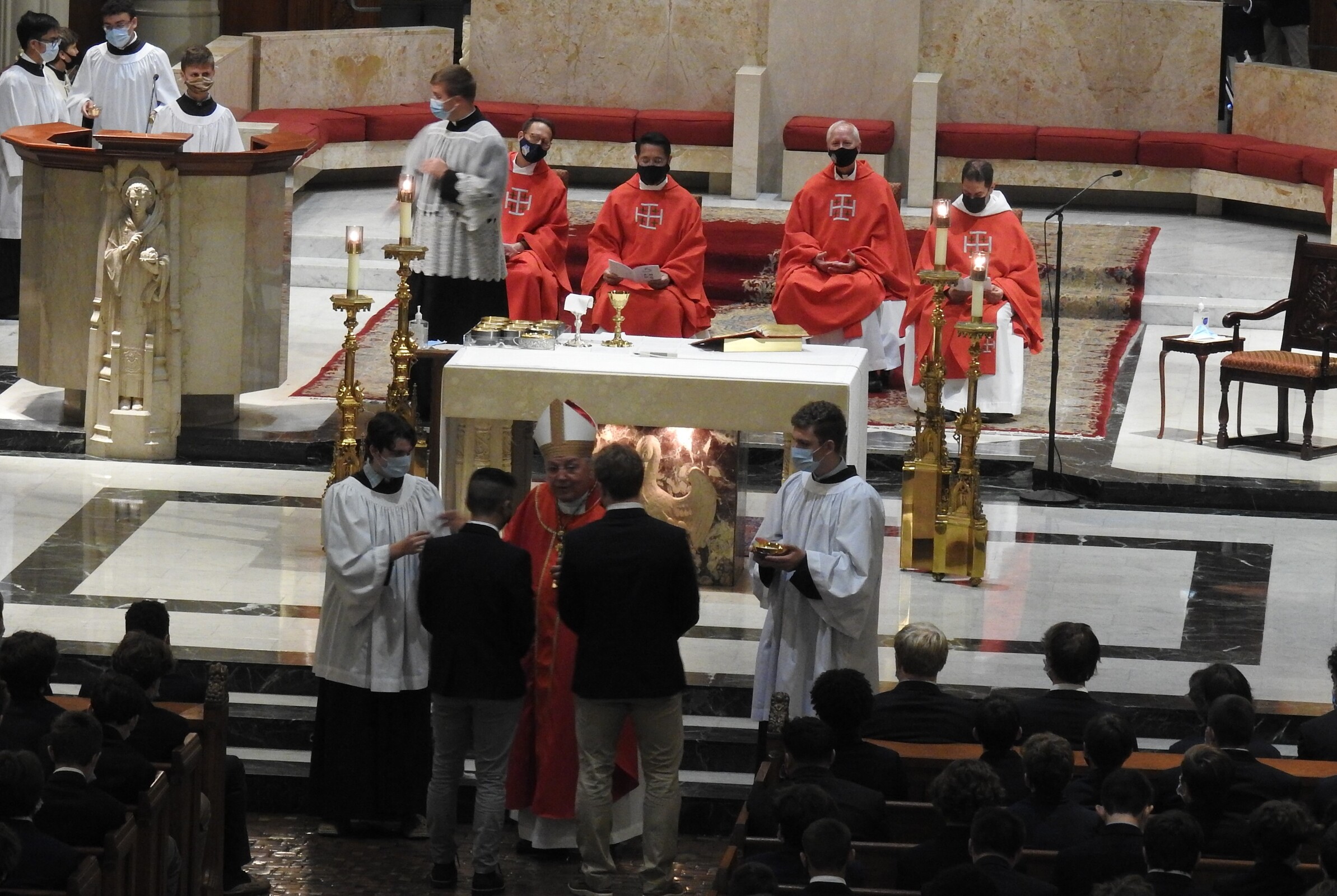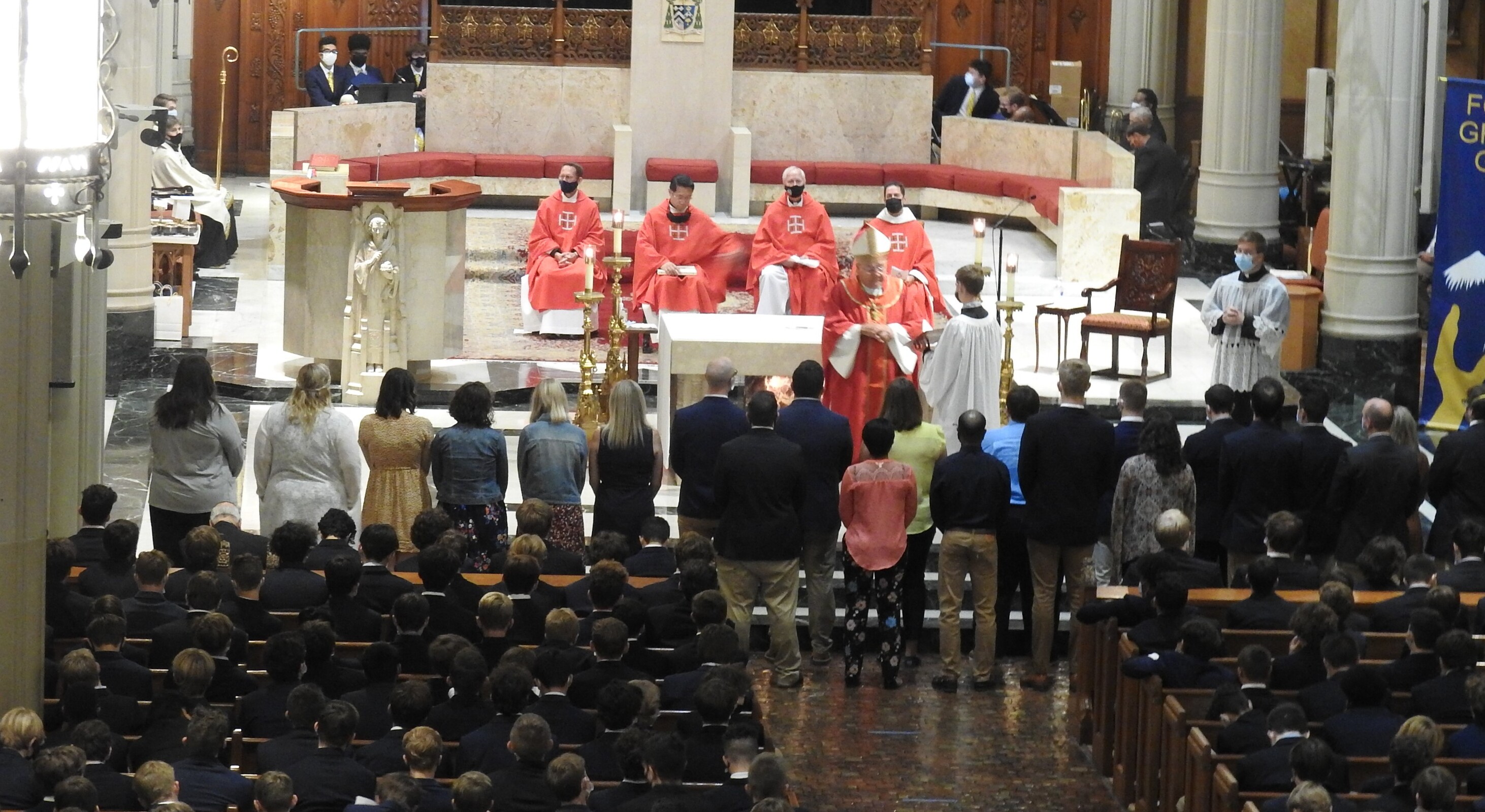 After being canceled last year because of the coronavirus pandemic, the Mass of the Holy Spirit was celebrated on Sept. 3 in the Cathedral of St. John the Evangelist. The liturgy is a tradition at the beginning of the school year for the Saint Ignatius High School community. Also following tradition, members of the freshman class walked from the school to the cathedral.