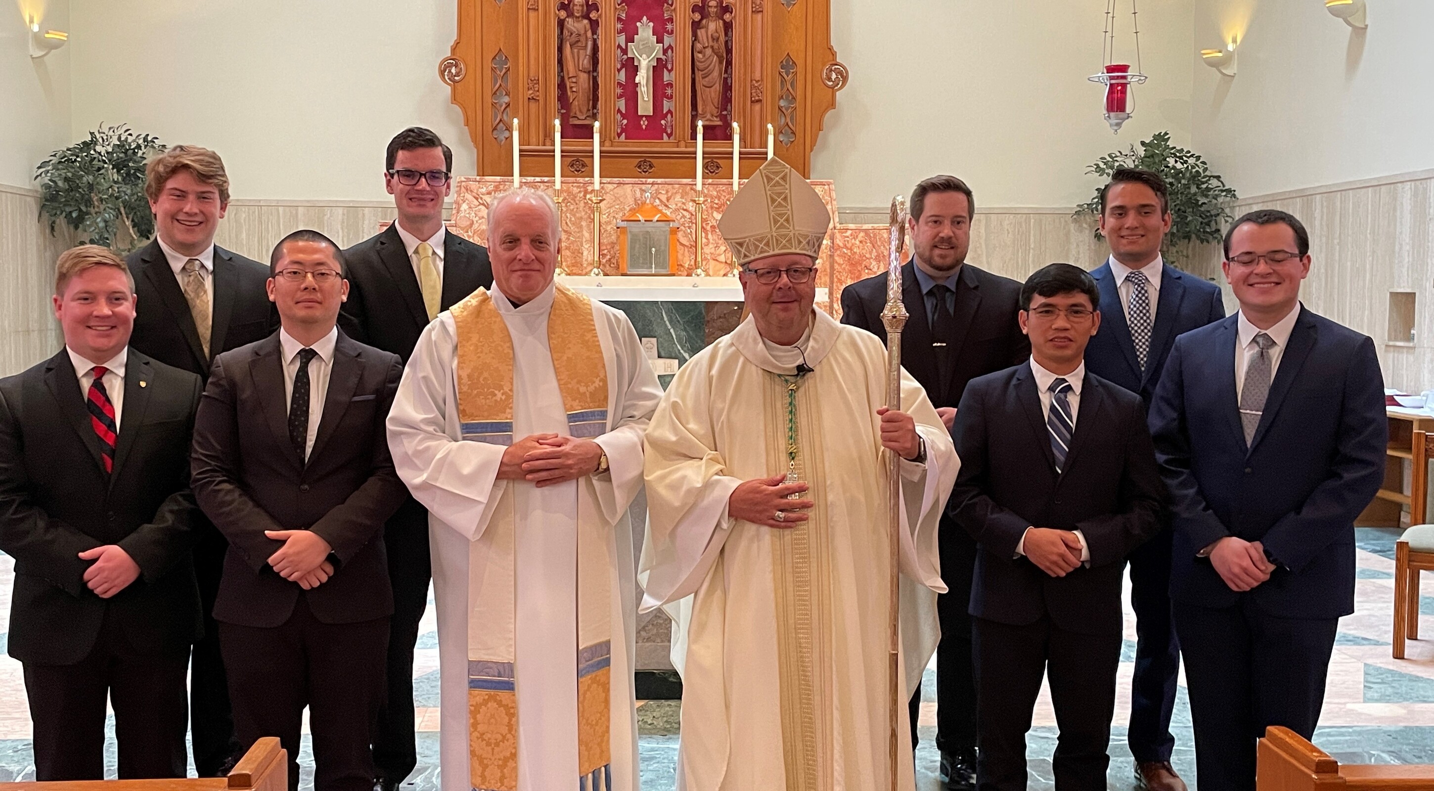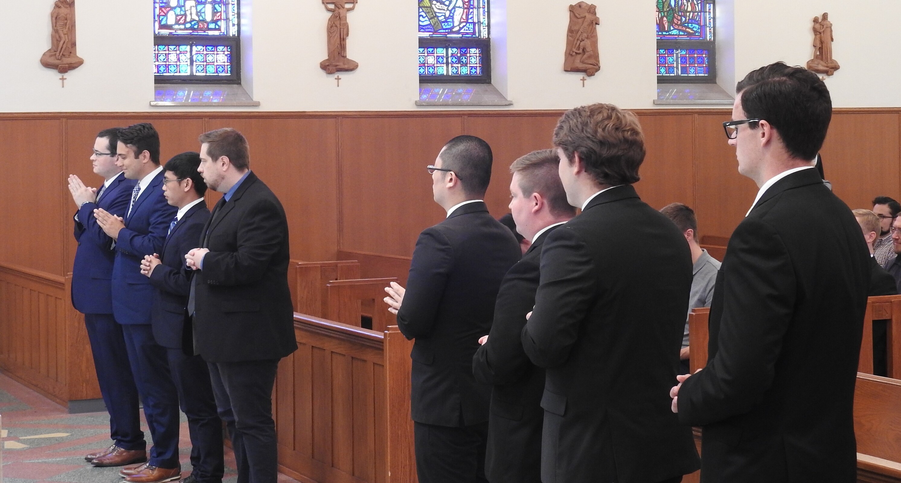 Eight men who are in their first year of theological studies at Saint Mary Seminary and Graduate School of Theology were admitted for candidacy for ordination as deacons and priests during a Mass Sept. 11 in Sacred Heart Chapel at the seminary.