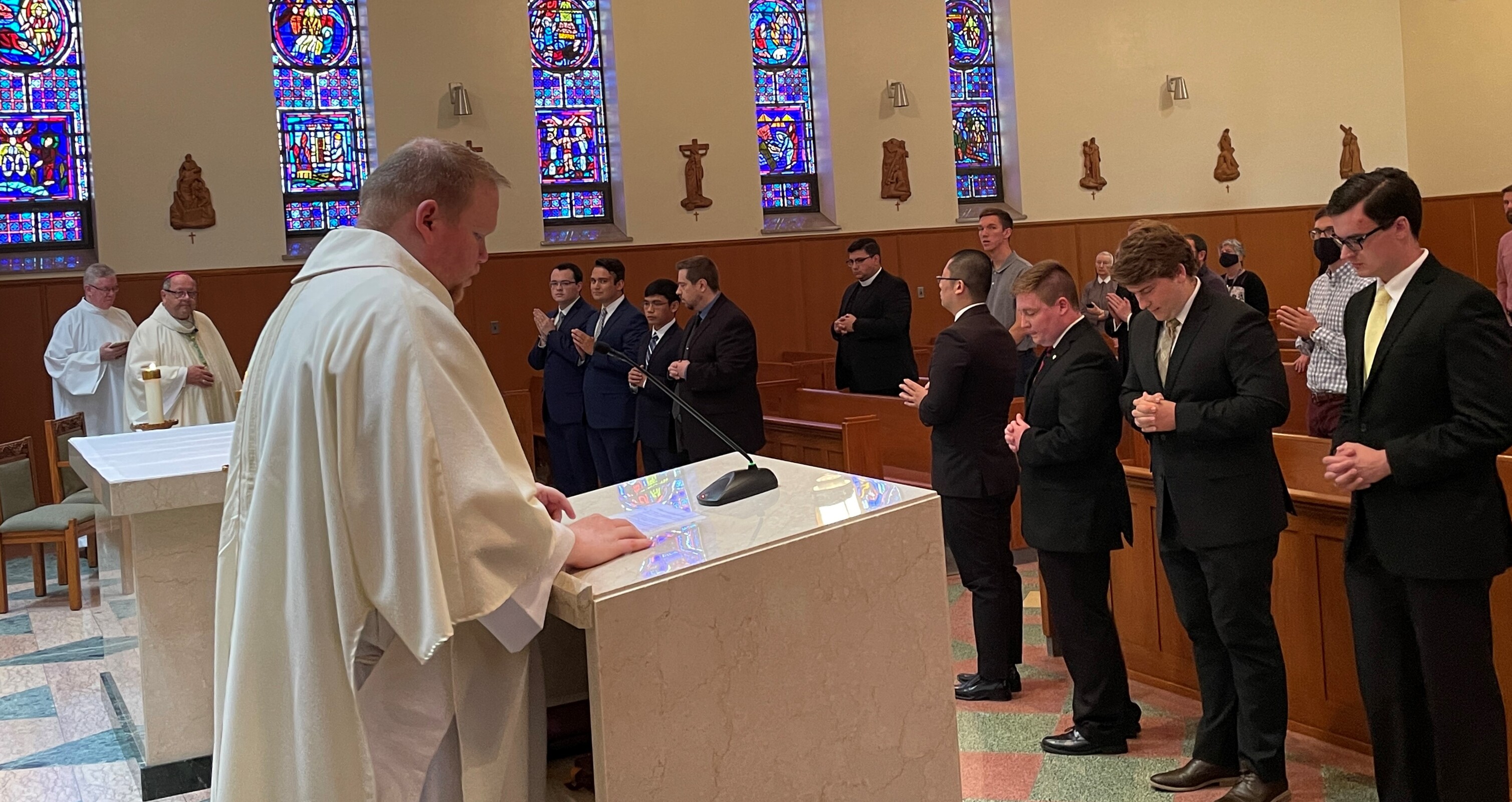 During the liturgy, they publicly announced their desire to bind themselves to the service of God and his holy people and to complete their human, spiritual, intellectual and pastoral preparation. Bishop Edward Malesic accepted them as candidates for the sacrament of holy orders as they continue their discernment and formation for the diaconate and priesthood for service to the Diocese of Cleveland and the Archdiocese of Daegu, South Korea.