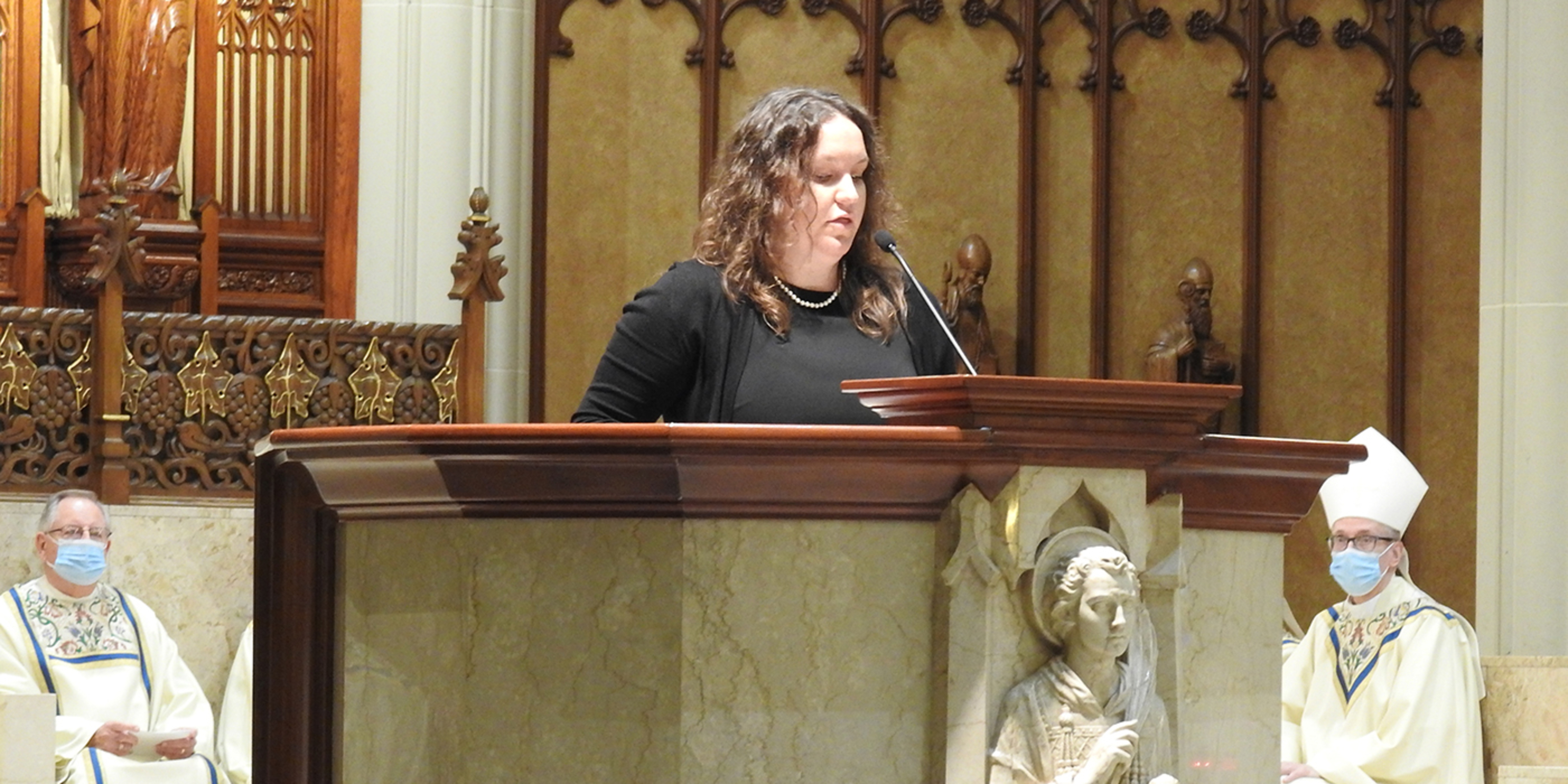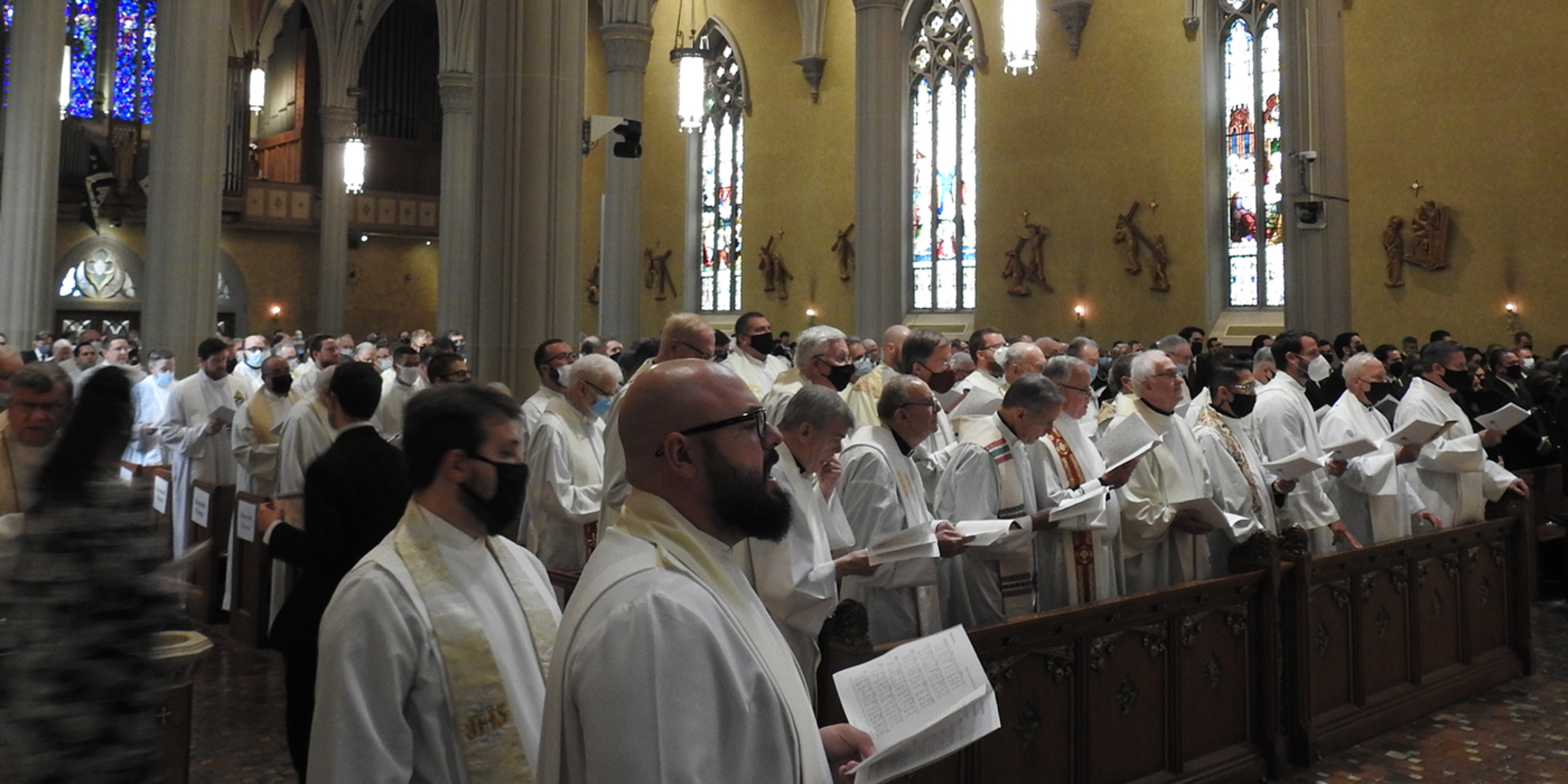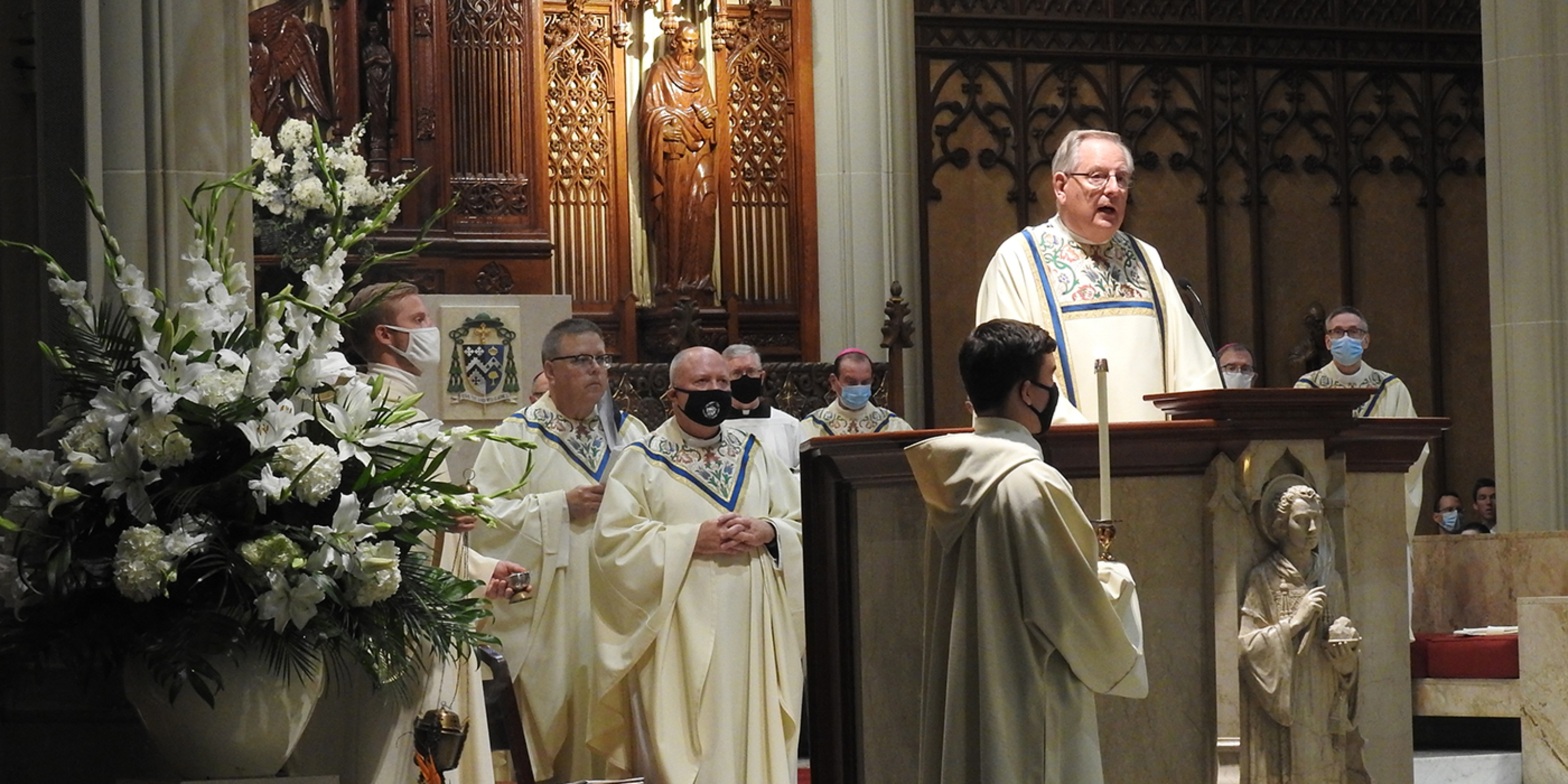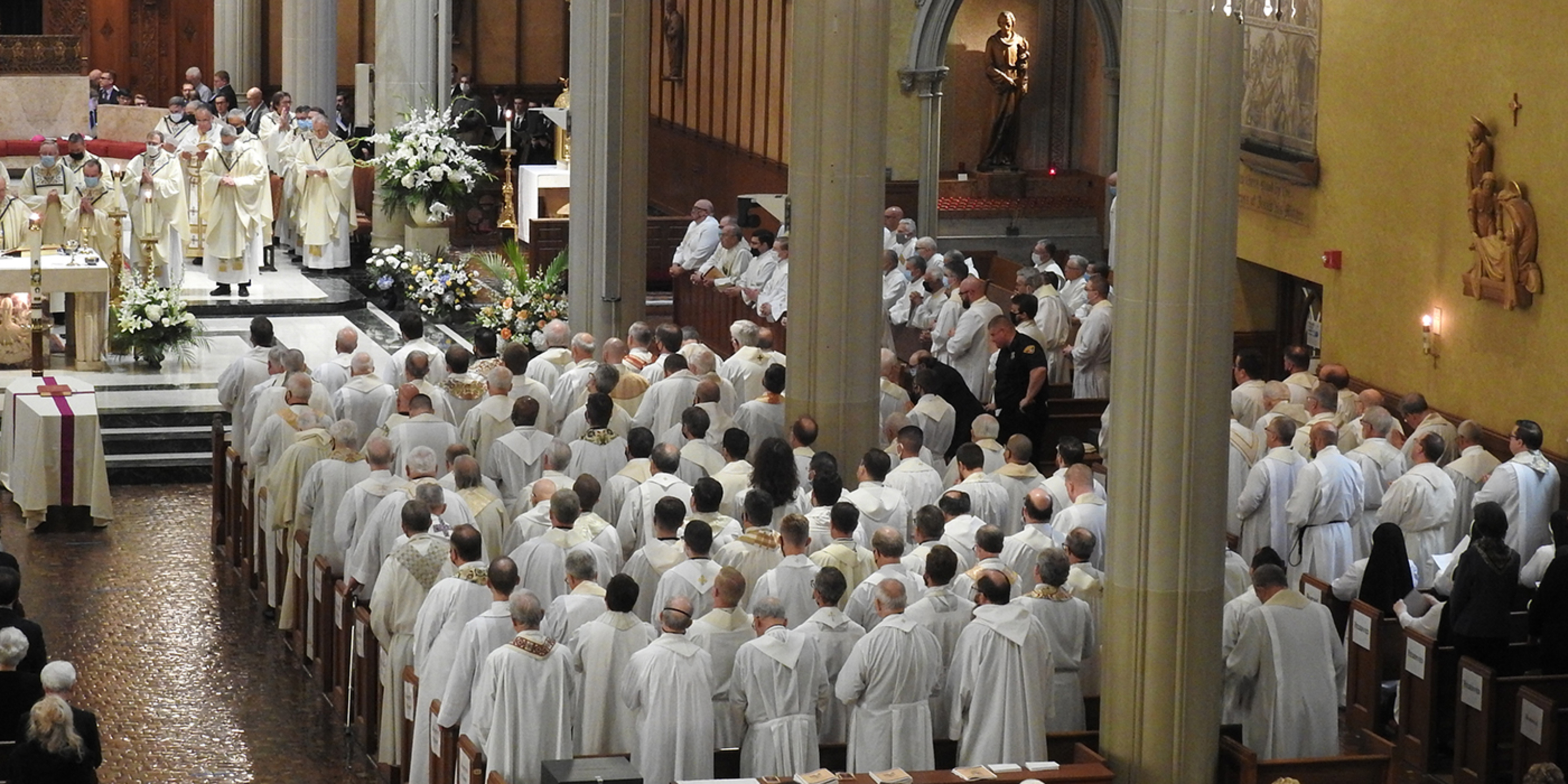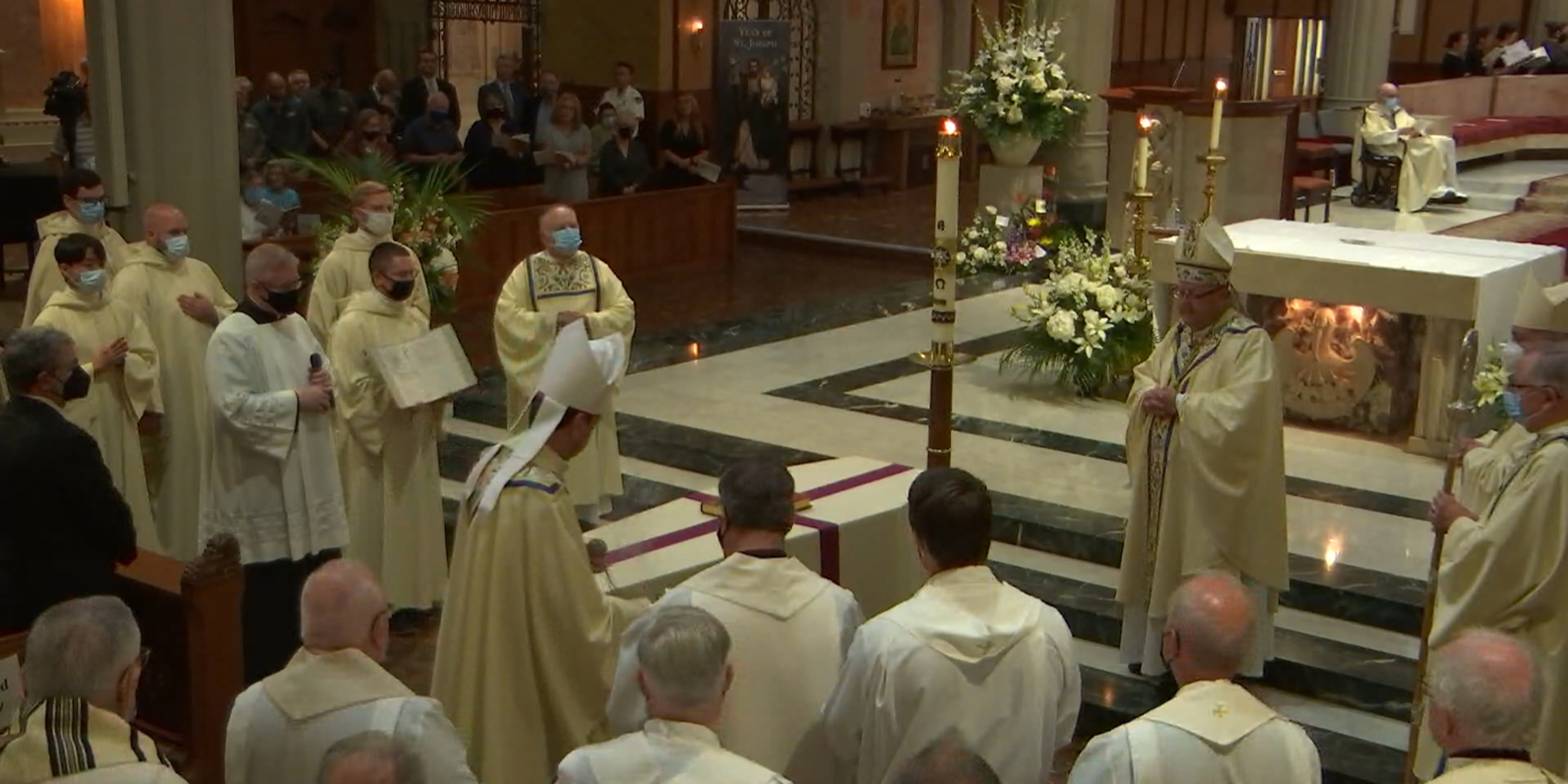 Concelebrating priests included Father Don Oleksiak, vicar general/moderator of the curia; Father Dan Schlegel, vicar for clergy and religious; Father Gary Yanus, judicial vicar; Father Estok; Father Sean Ralph, cathedral rector; Father Larry Jurcak; Father Tom Dragga; Father Lou Miola; Father John Murphy; and Father Georges Haddad, pastor of St. Elias Melkite Catholic Church in Brooklyn. Serving as emcees for the bishops and archbishops were Father Mike Woost, Father Mark Hollis and Father Chris Trenta.