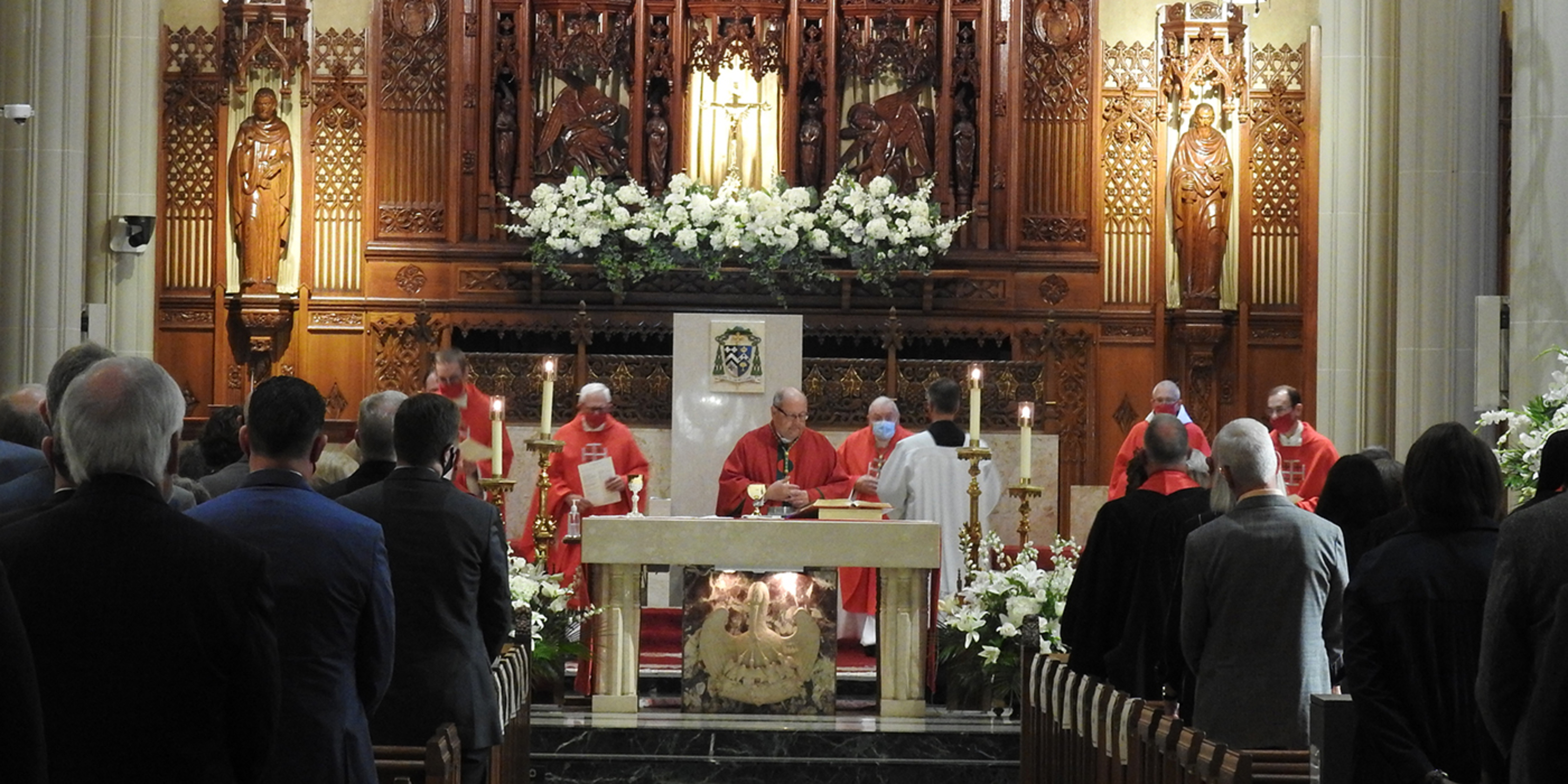 Bishop Edward Malesic was the principal celebrant for the Mass in the Cathedral of St. John the Evangelist. Concelebrants included Auxiliary Bishop emeritus Roger Gries, Father Bob Marva, pastor of St. Agnes + Our Lady of Fatima Parish, Justice Stewart’s longtime parish, and priests who work in the diocesan tribunal, as well as Father Gary Yanus, judicial vicar. Father Richard Bona, Father Matt Jordan, Father Jonathan Zingales and Father Charles Strebler are assigned to the tribunal Father Sean Gallagher, cathedral rector, also concelebrated.