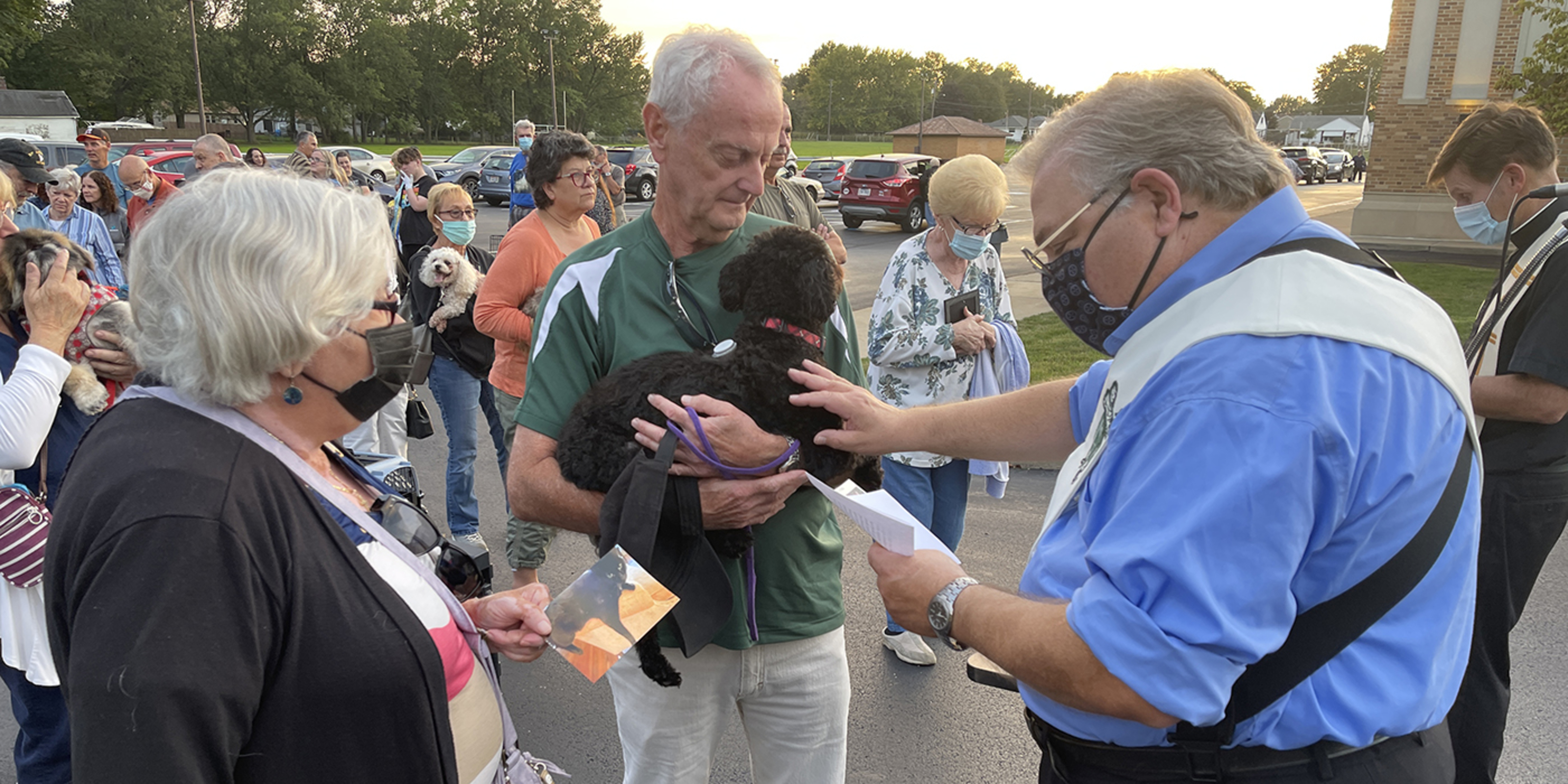 Father Bernier also invited the visitors to stop in to view the historic church and to enjoy fall-themed refreshments. The pets weren’t forgotten, as there were bowls of dog and cat treats available. Also, donations were accepted for PAWS Ohio, an animal rescue organization.