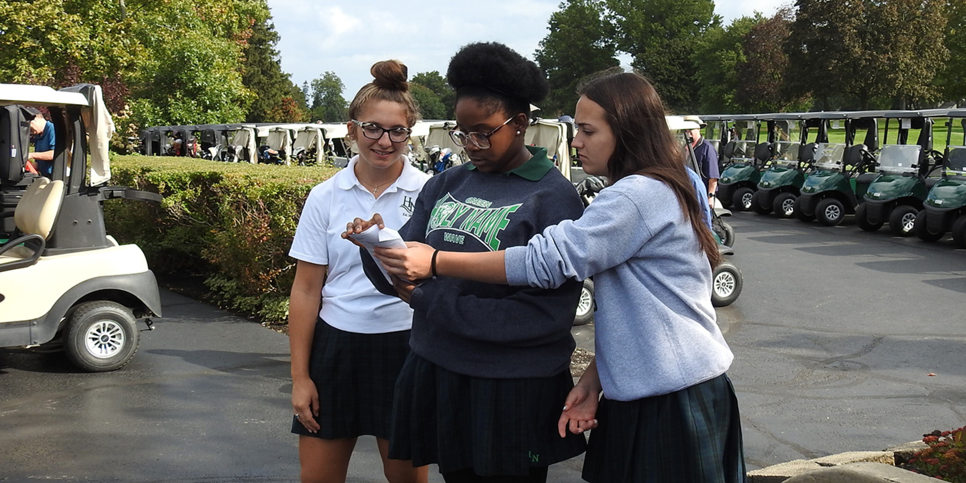 Several Holy Name High School students were on hand to greet the golfers and help them with their clubs and bags as they checked in.