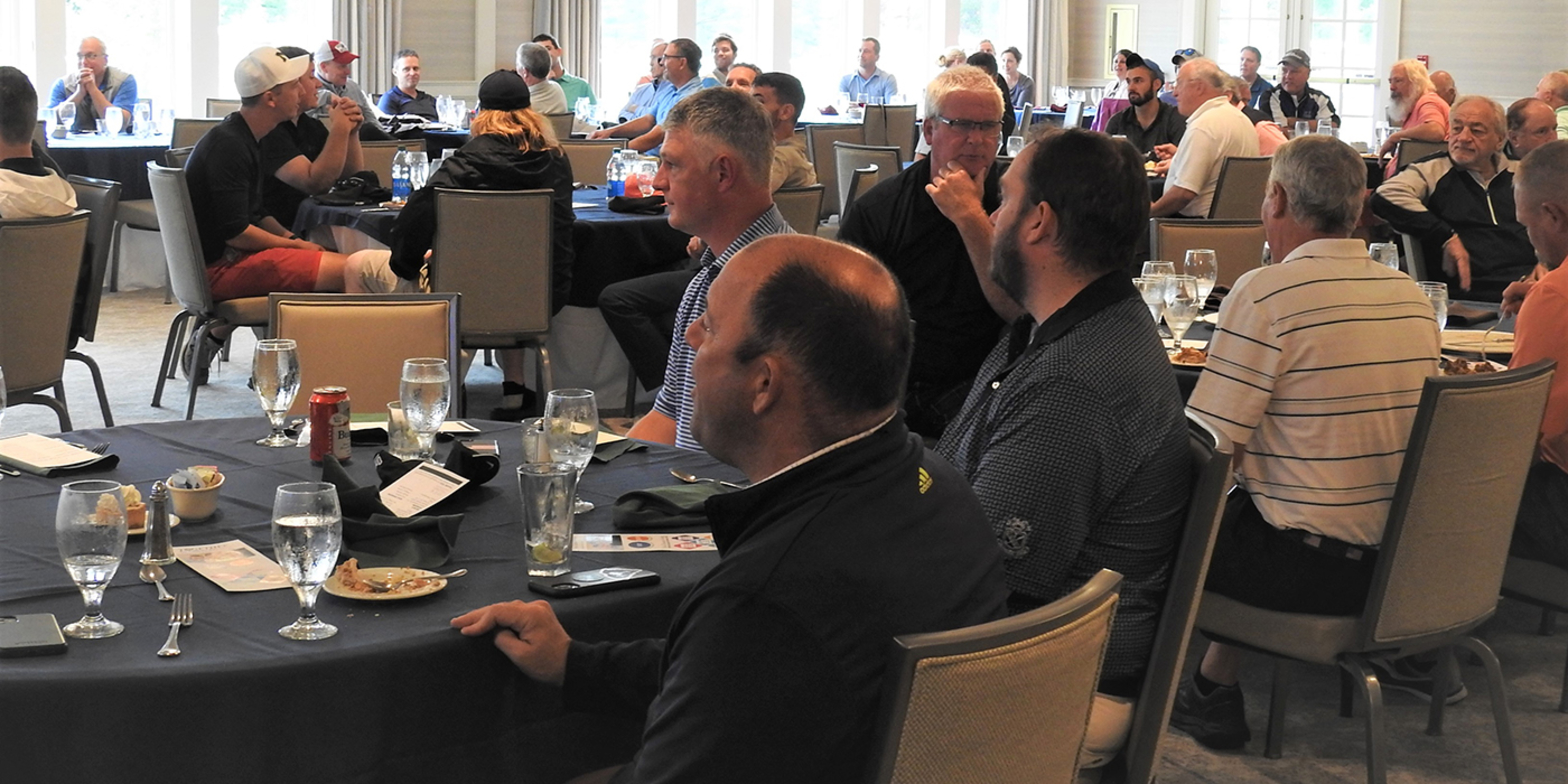 Bishop Edward Malesic arrived in the afternoon to greet golfers as they completed play and to join them for dinner.
