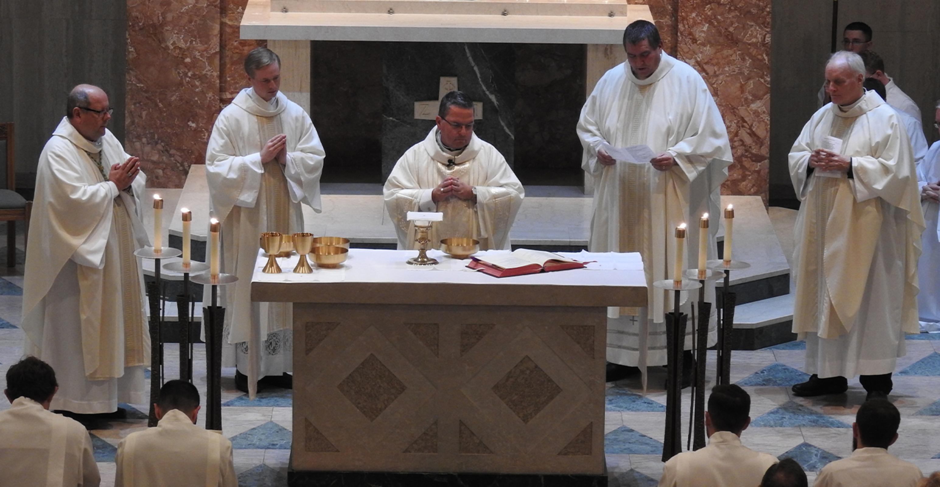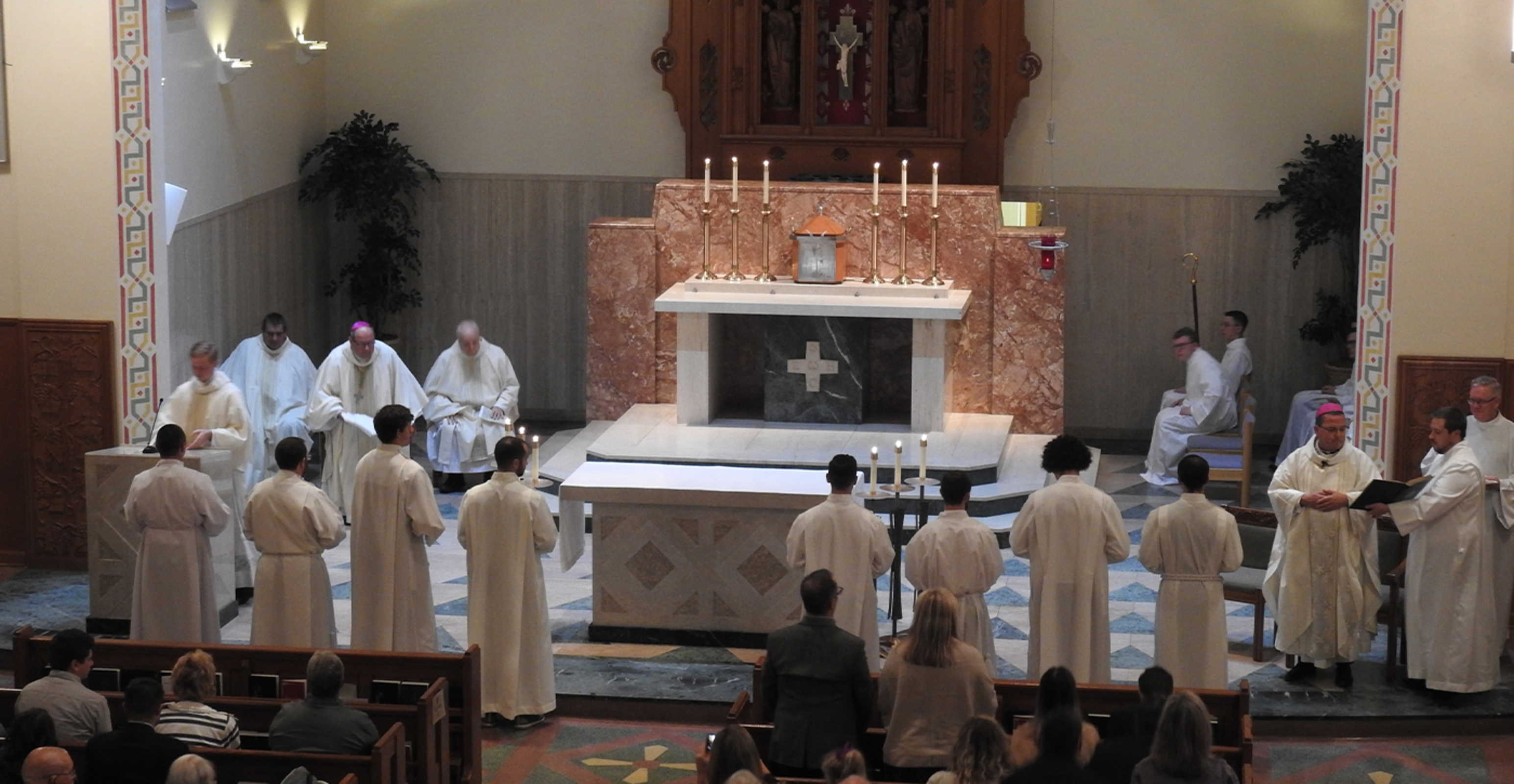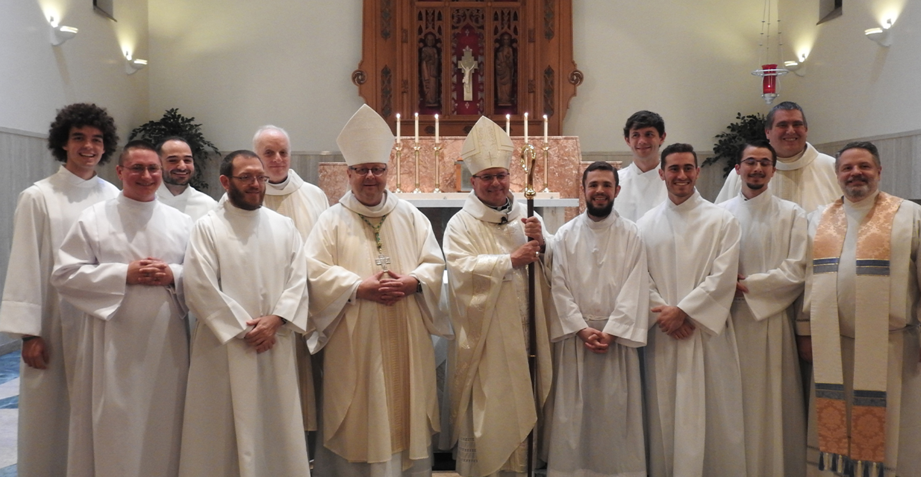 Eight Saint Mary Seminary students were instituted into the ministry of lector during an Oct. 22 Mass celebrated by Youngstown Bishop David Bonnar. Cleveland Bishop Edward Malesic, Father Mark Latcovich, seminary president-rector, and several seminary professors concelebrated the liturgy. The seminarians’ family, pastors and friends were invited to participate in and attend the Mass.