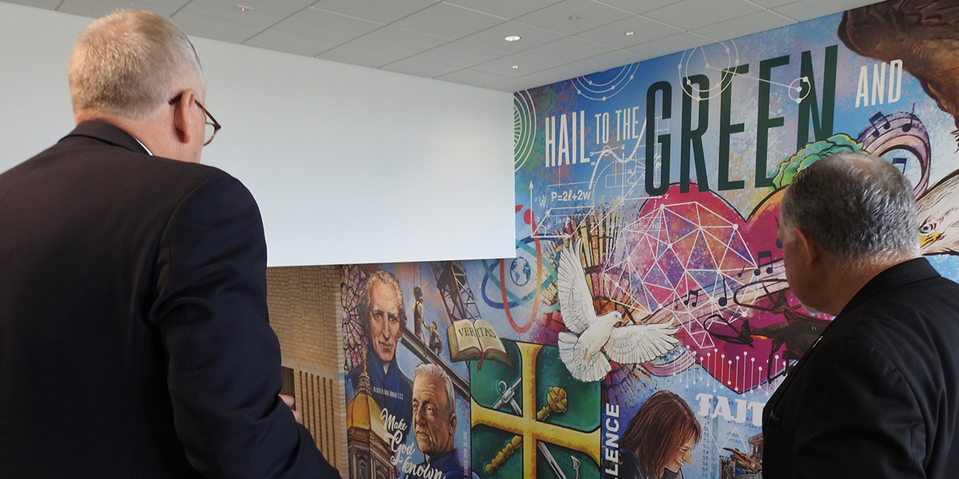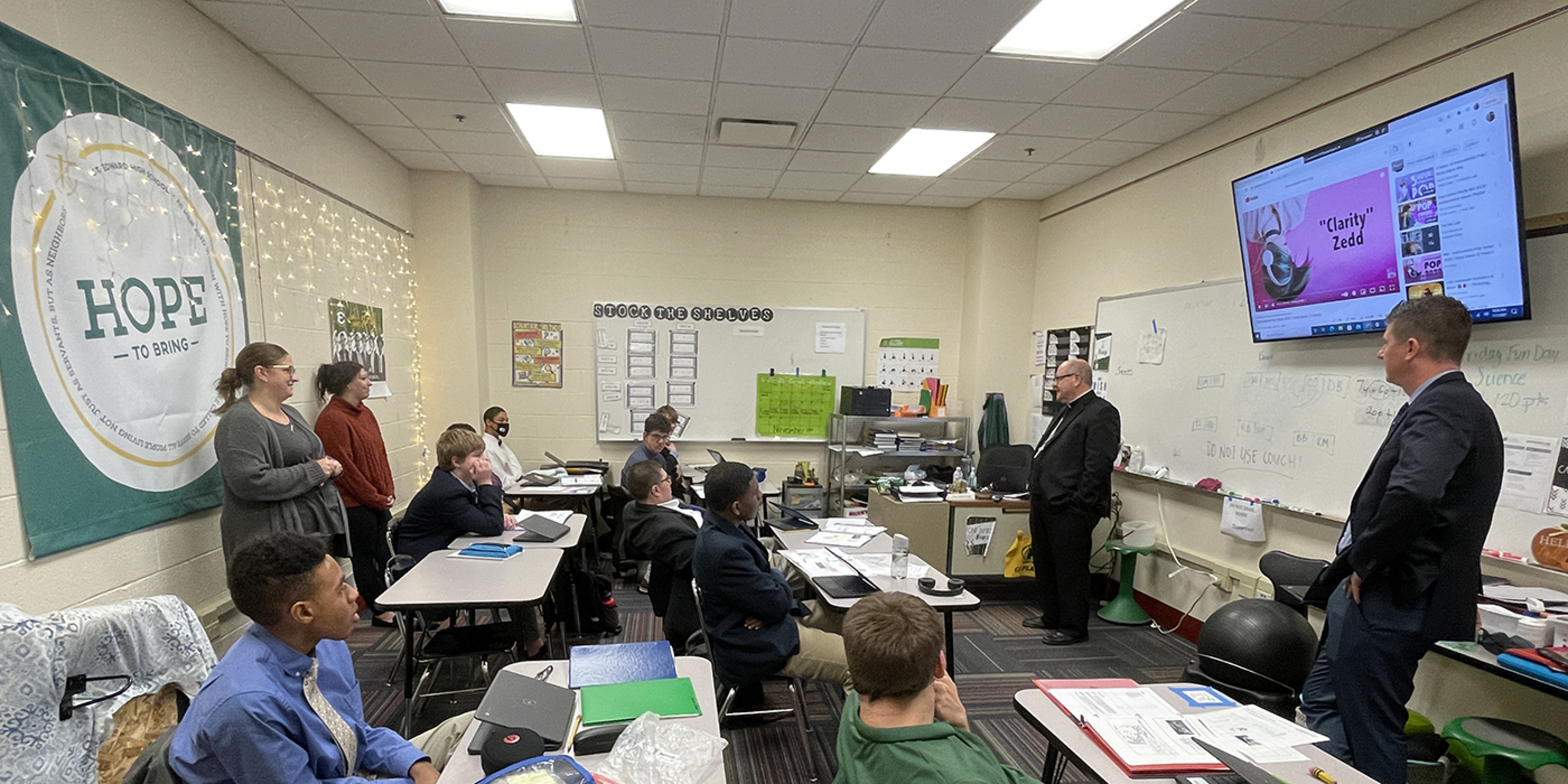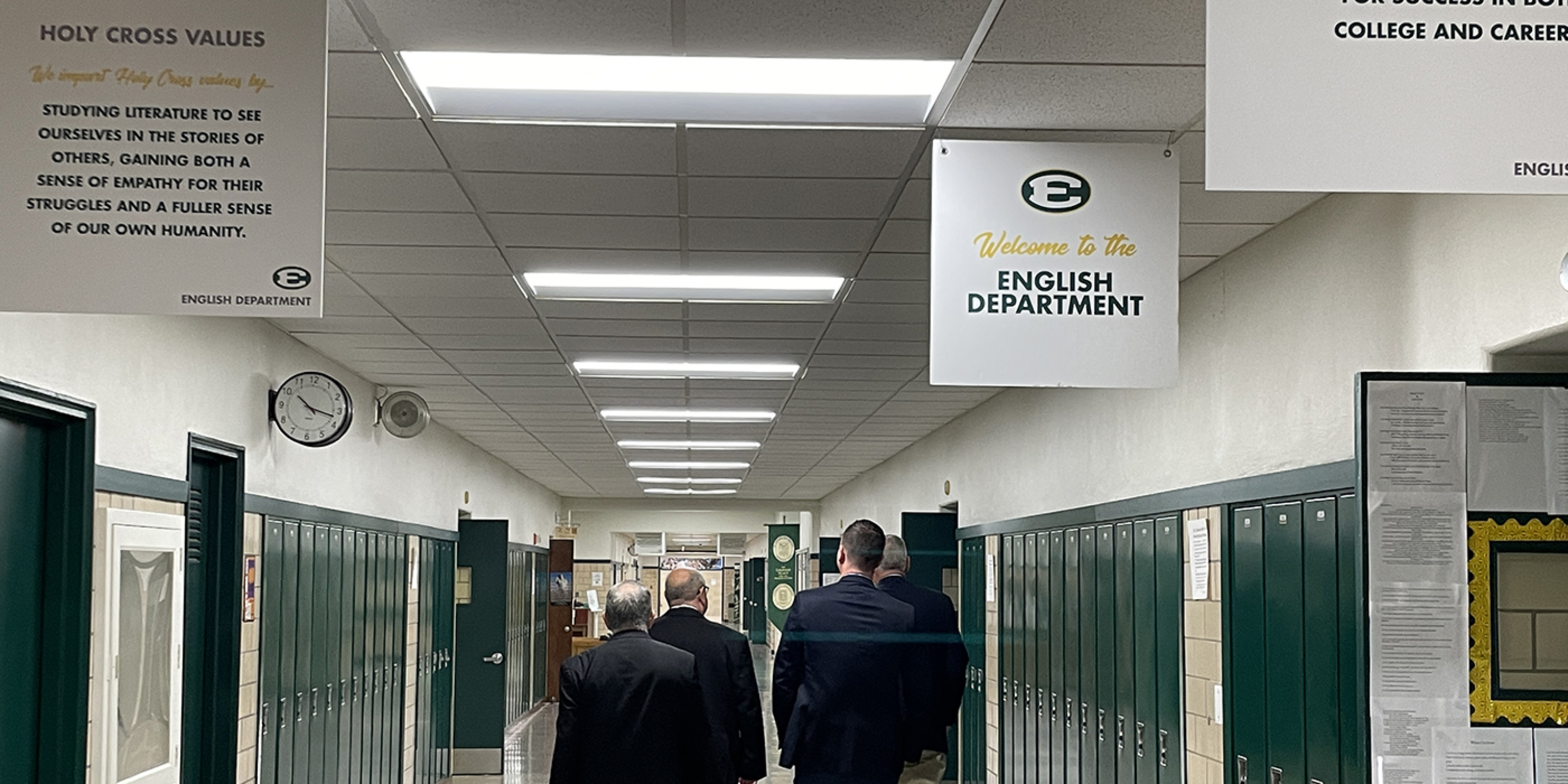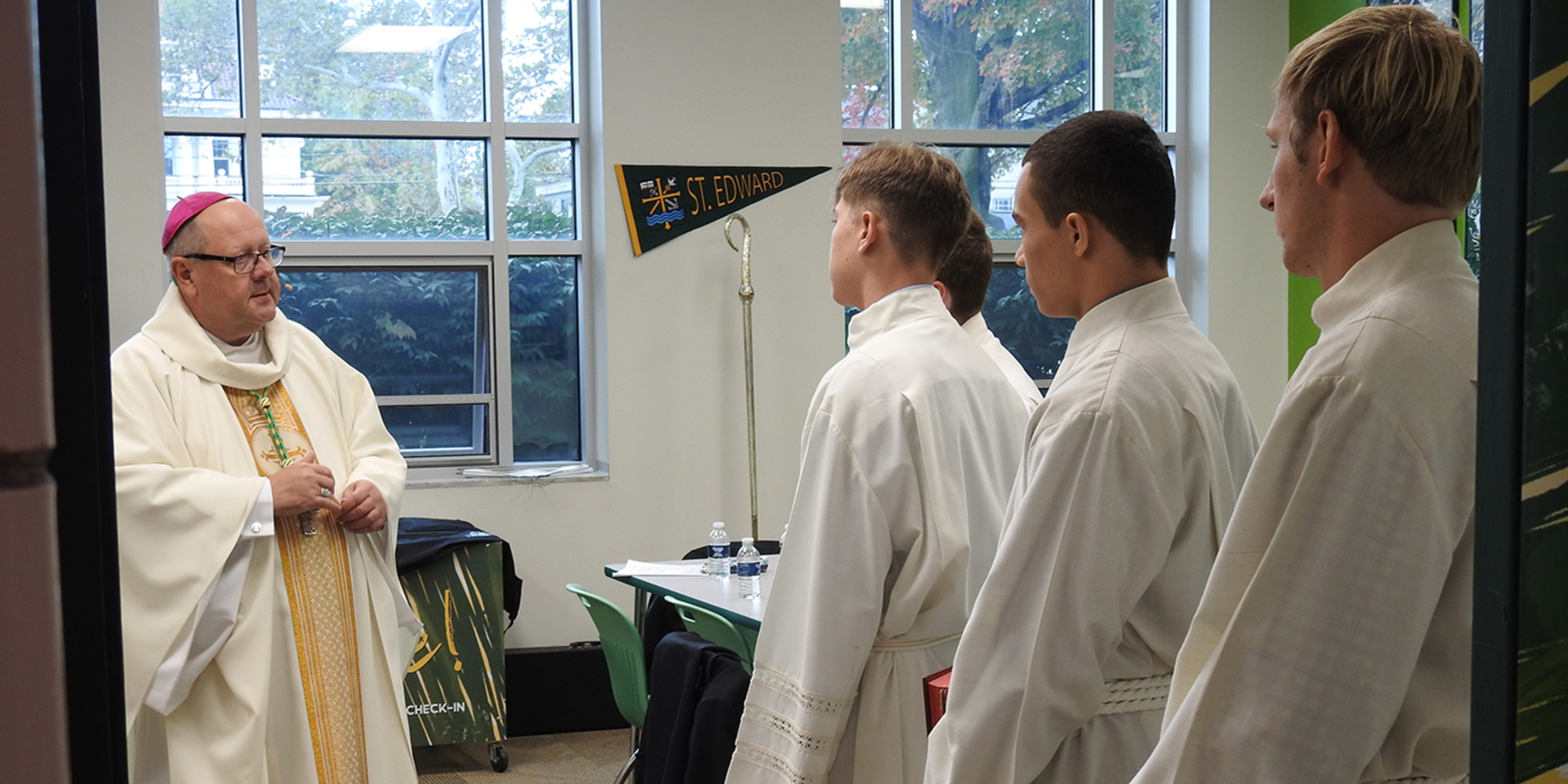 While touring the school with James Kubacki, president, and KC McKenna, principal, the bishop learned about St. Edward’s ministry of hospitality, based on the school’s Holy Cross sponsors. He also learned the school’s four pillars: faith formation, excellence, relationships and servant leadership.