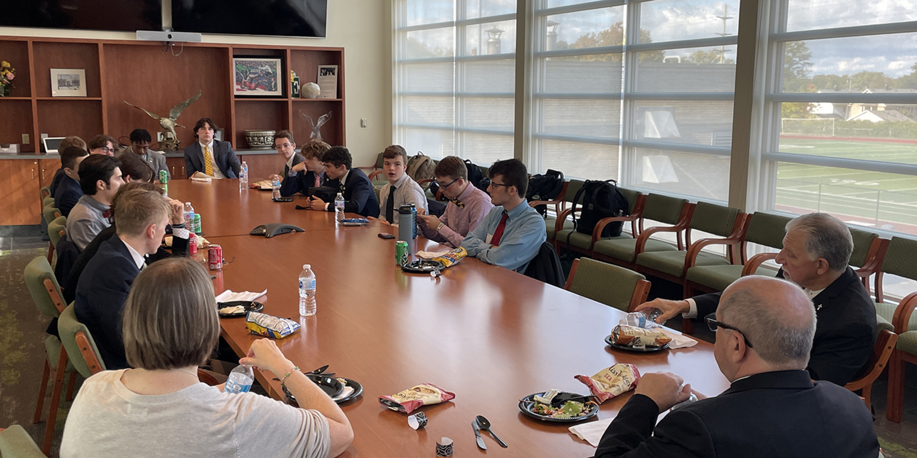 During lunch, he had a casual – yet candid – conversation with students from each grade level. The bishop encouraged them to pay attention to forming relationships. Also, he said having faith without action is an empty faith. He urged them to focus on the school’s four pillars and to pay attention to what God wants of them for their lives.