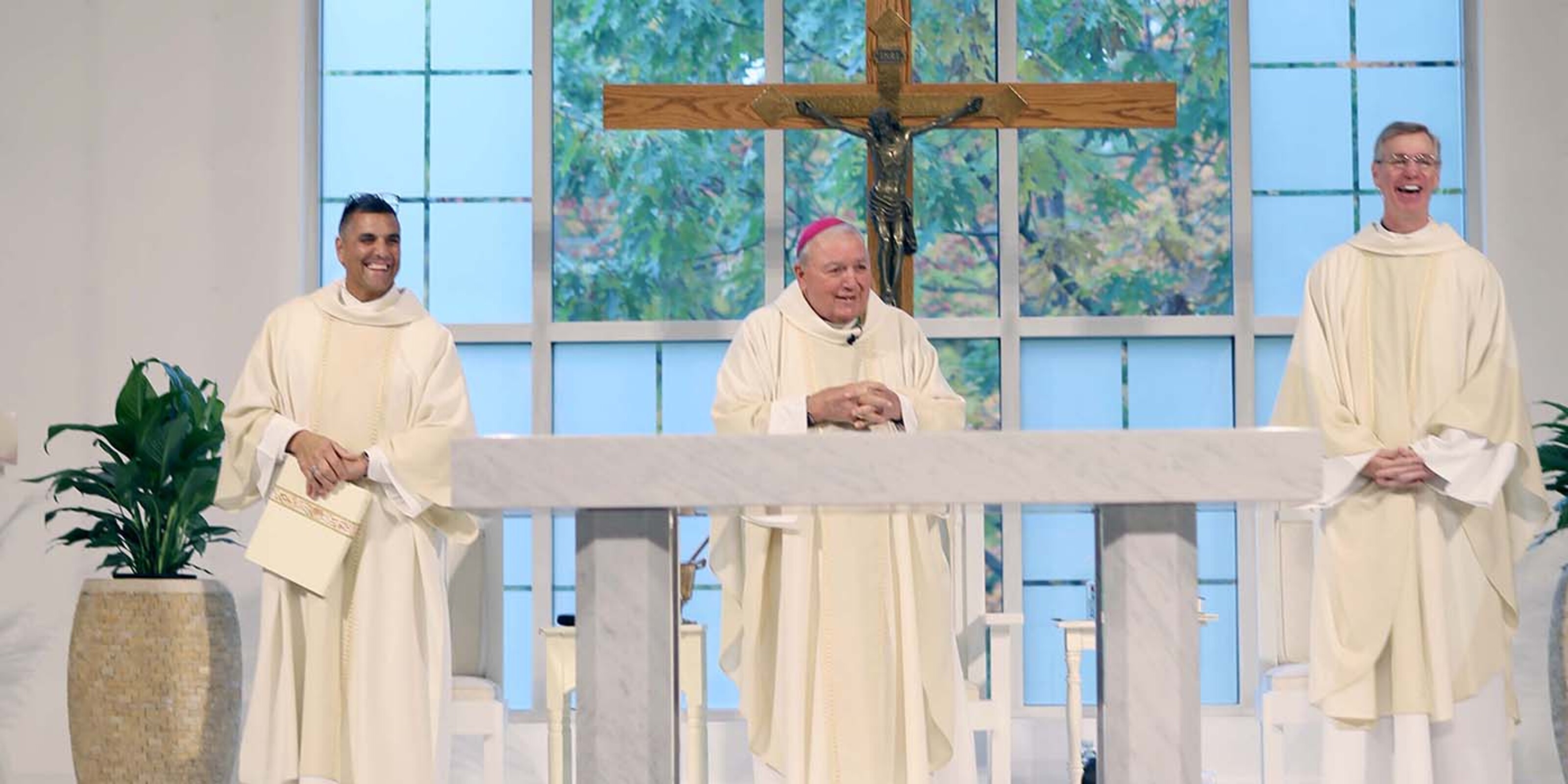 The focal point in a Catholic church is the altar. During recent renovations to the sanctuary at Divine Word Church in Kirtland, the parish commissioned and installed a new marble altar. During Mass on Oct. 30, Auxiliary Bishop emeritus Roger Gries blessed and dedicated the new altar. Concelebrating the liturgy was Father Dave Woost, Divine Word pastor, and assisting was Deacon John Grazia.