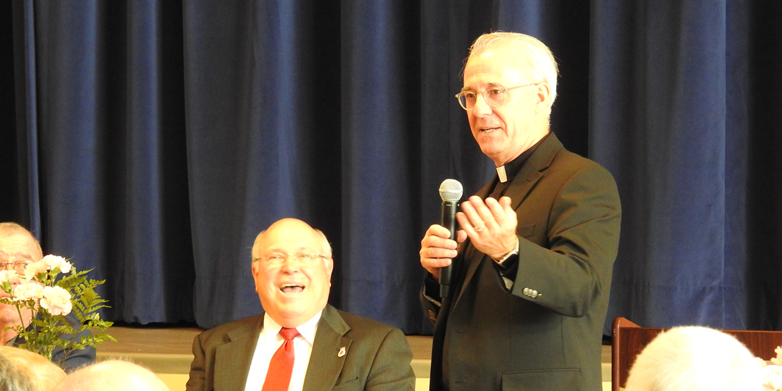 Members of the Cleveland Diocesan Union of Holy Name Societies had two reasons to celebrate at the 65th annual Bishop’s Banquet on Oct. 31. First, they welcomed Bishop Edward Malesic to the event for the first time since it was canceled last year because of the pandemic. Second, the group paid tribute to Father Tom Haren, pastor of St. Monica Parish in Garfield Heights, who has been their spiritual moderator for 33 years. About 150 attended the event.
