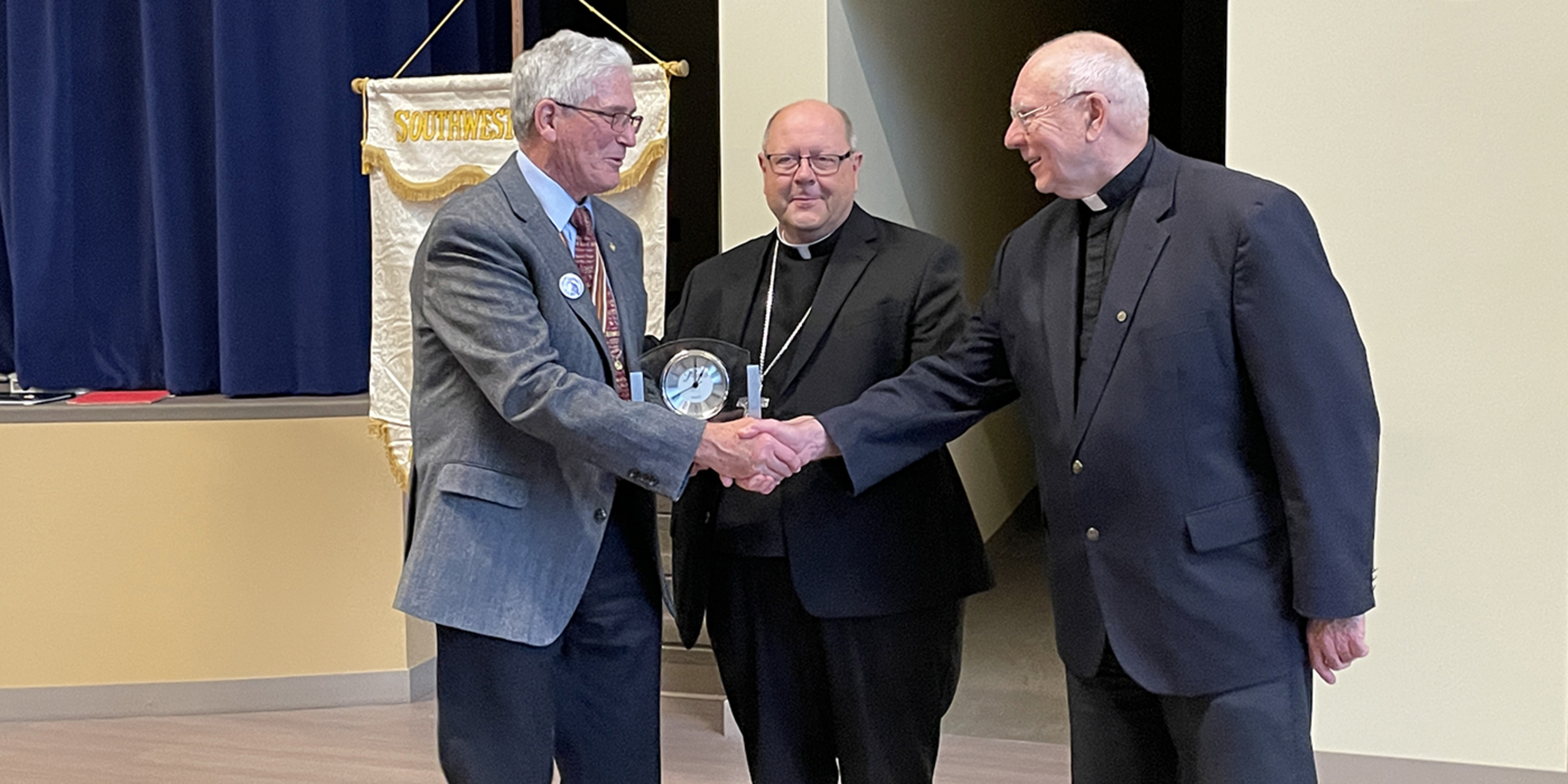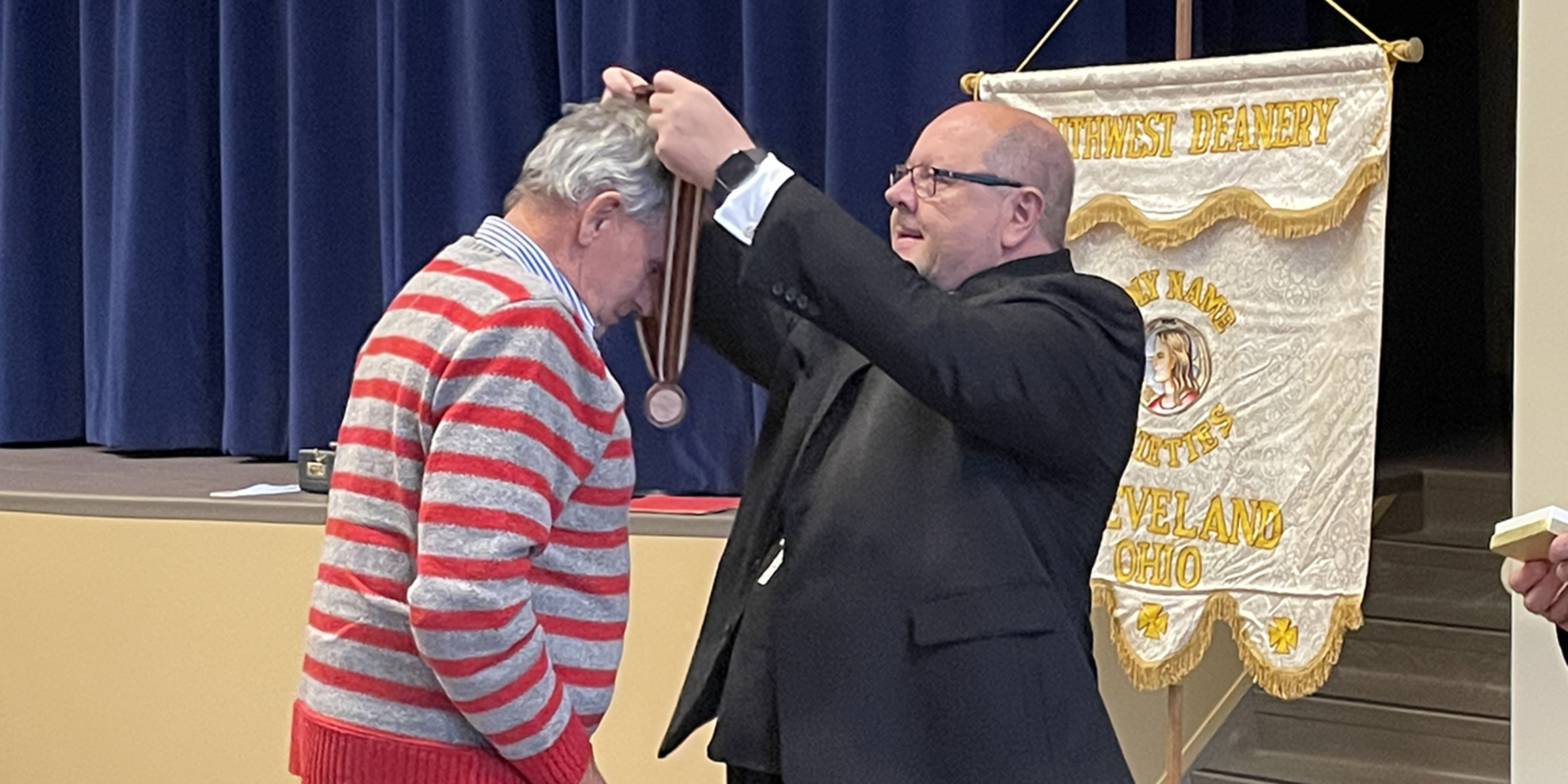 He was given a stole embroidered with the Holy Name seal as an appreciation gift from the diocesan group.