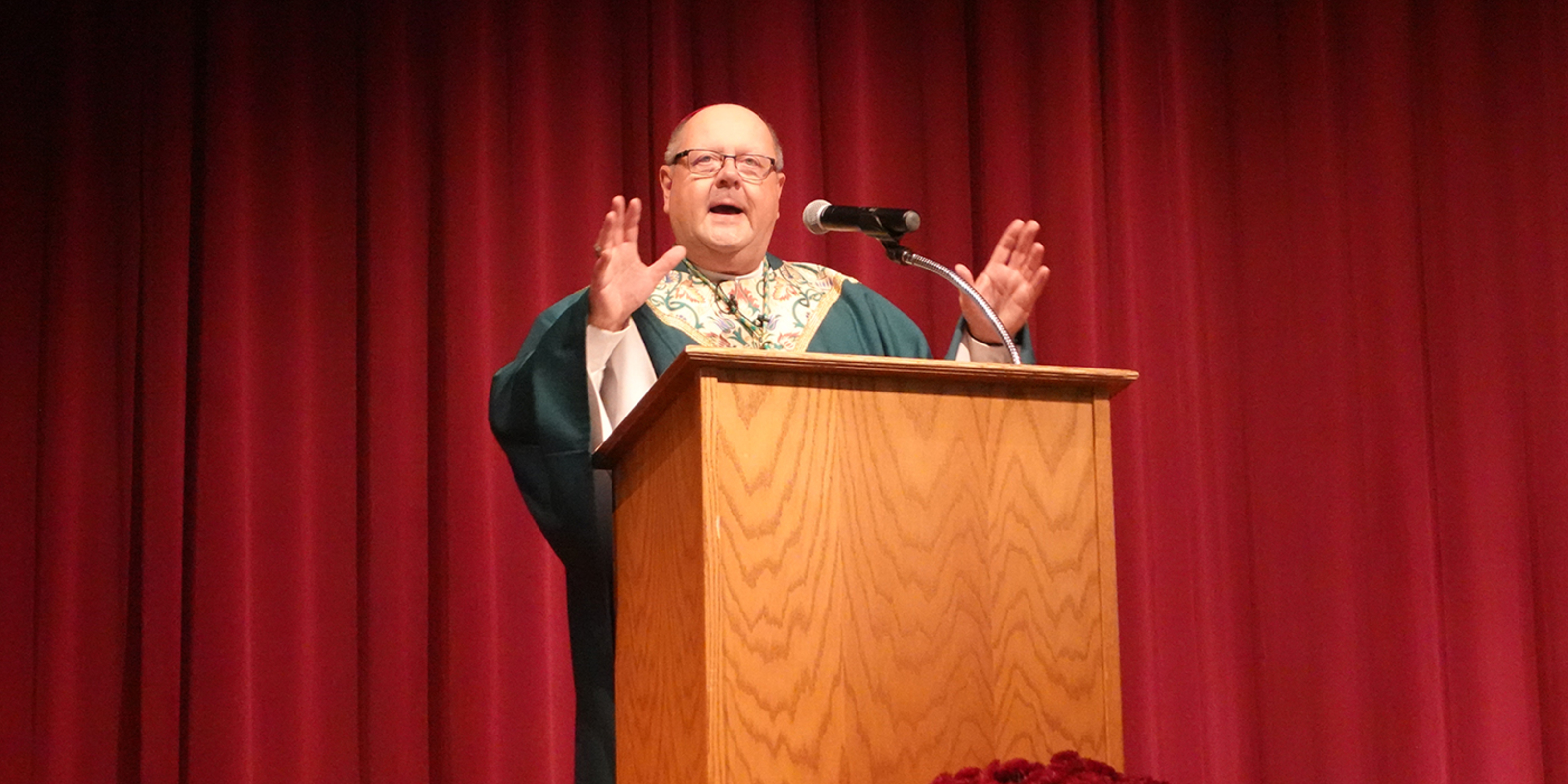 It takes faith to see Jesus in the Eucharist and in their classmates, he told the school’s nearly 500 students, adding, “Don’t make it hard for your classmates to see Jesus in you.”