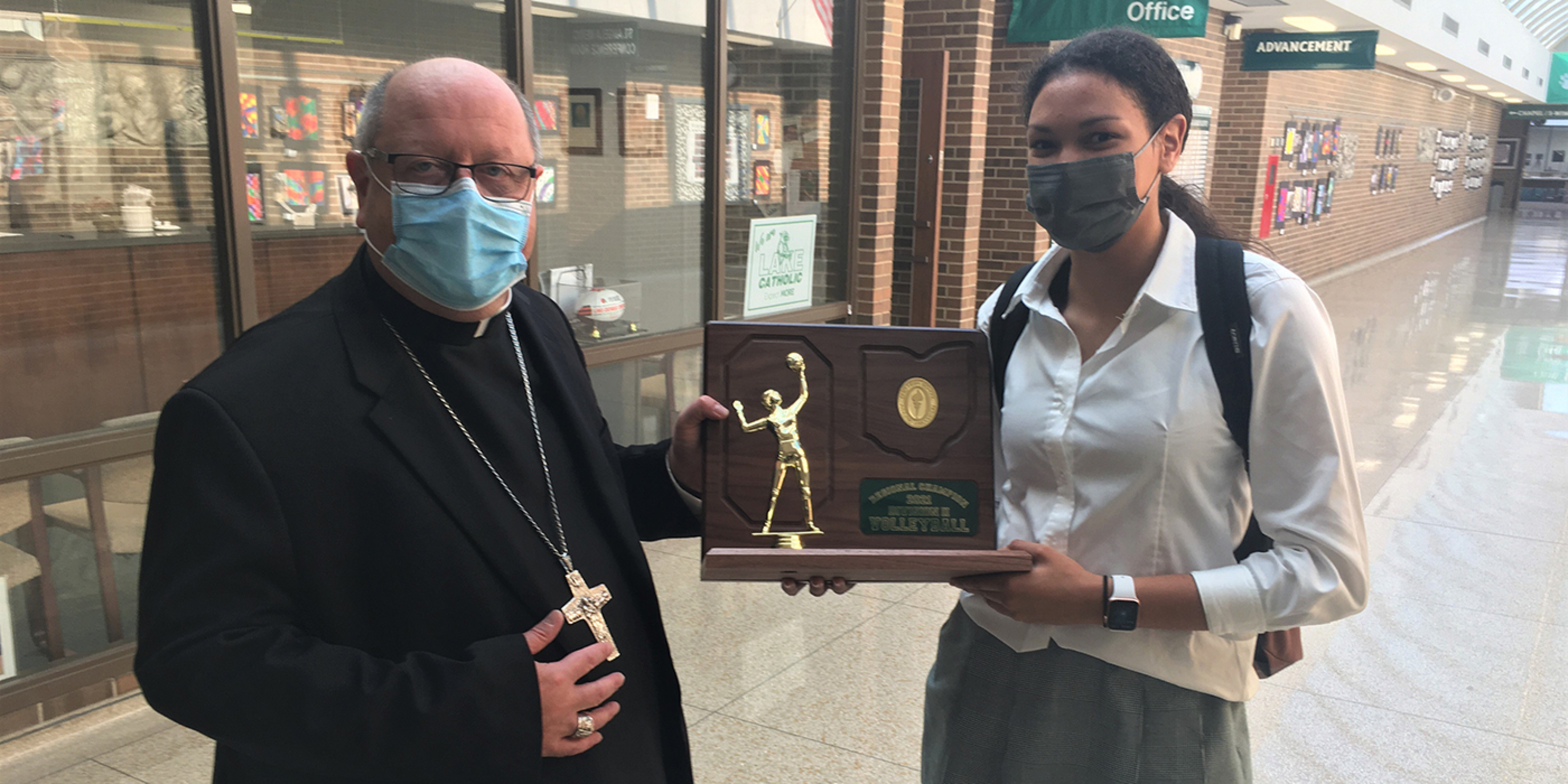 “I am so proud of you. Try to be your best. Try for that excellence of spirit. You can do all things with faith,” the bishop said, reminding the Lake Catholic community they are in his prayers. “You are the young Church,” he told the students. “Don’t be afraid to share your faith with others. Talk about the Lord, what he does for you, and about Lake Catholic.”